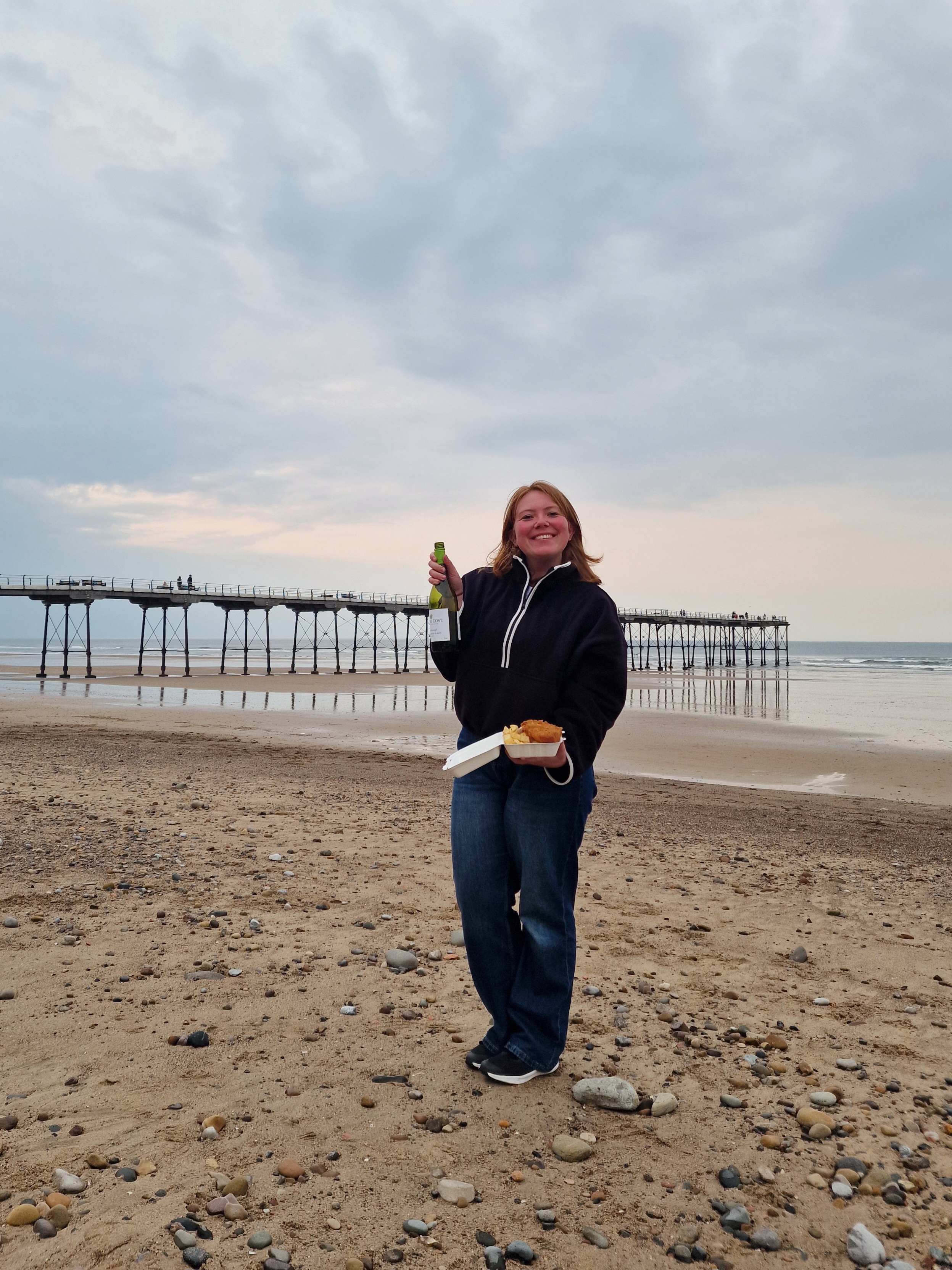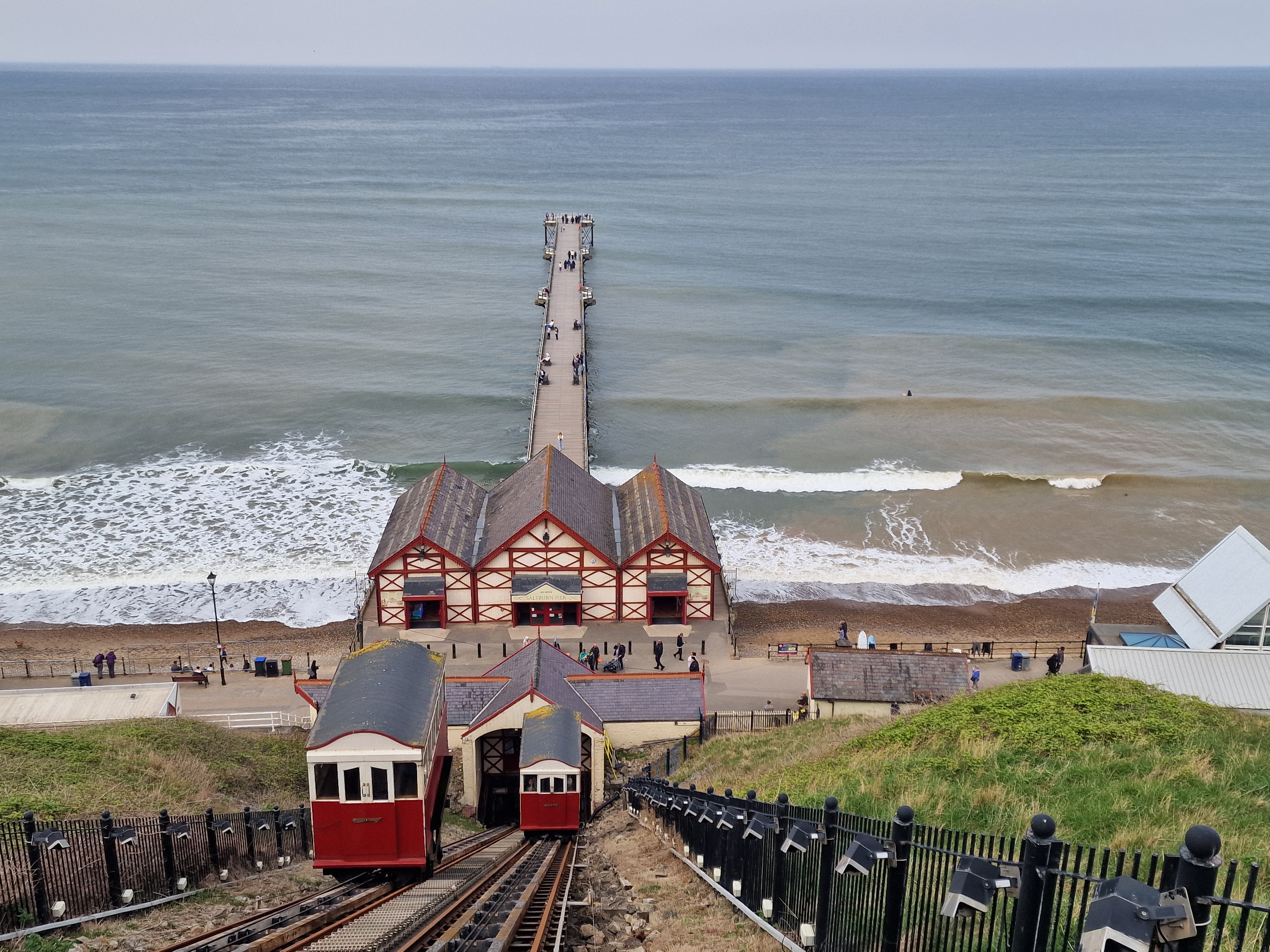 Saltburn-by-the-sea This is where we chose to base ourselves for the next three nights, in an Airbnb just a stone’s throw away from the beach to the left, and the shops to the right. It perfectly captures the essence of a British seaside town, featuring colorful chalets, fish and chip shops, and a pier, but without the overwhelming number of arcades (although I do enjoy a slotties sesh) and other typical tourist tat. One of the main events in Saltburn is the cliff lift – it uses water to move the two carriages up and down, and is the oldest cliff lift of this type operating in the UK. The other is its pier – its Grade 2 listed and is the last remaining pier in Yorkshire!