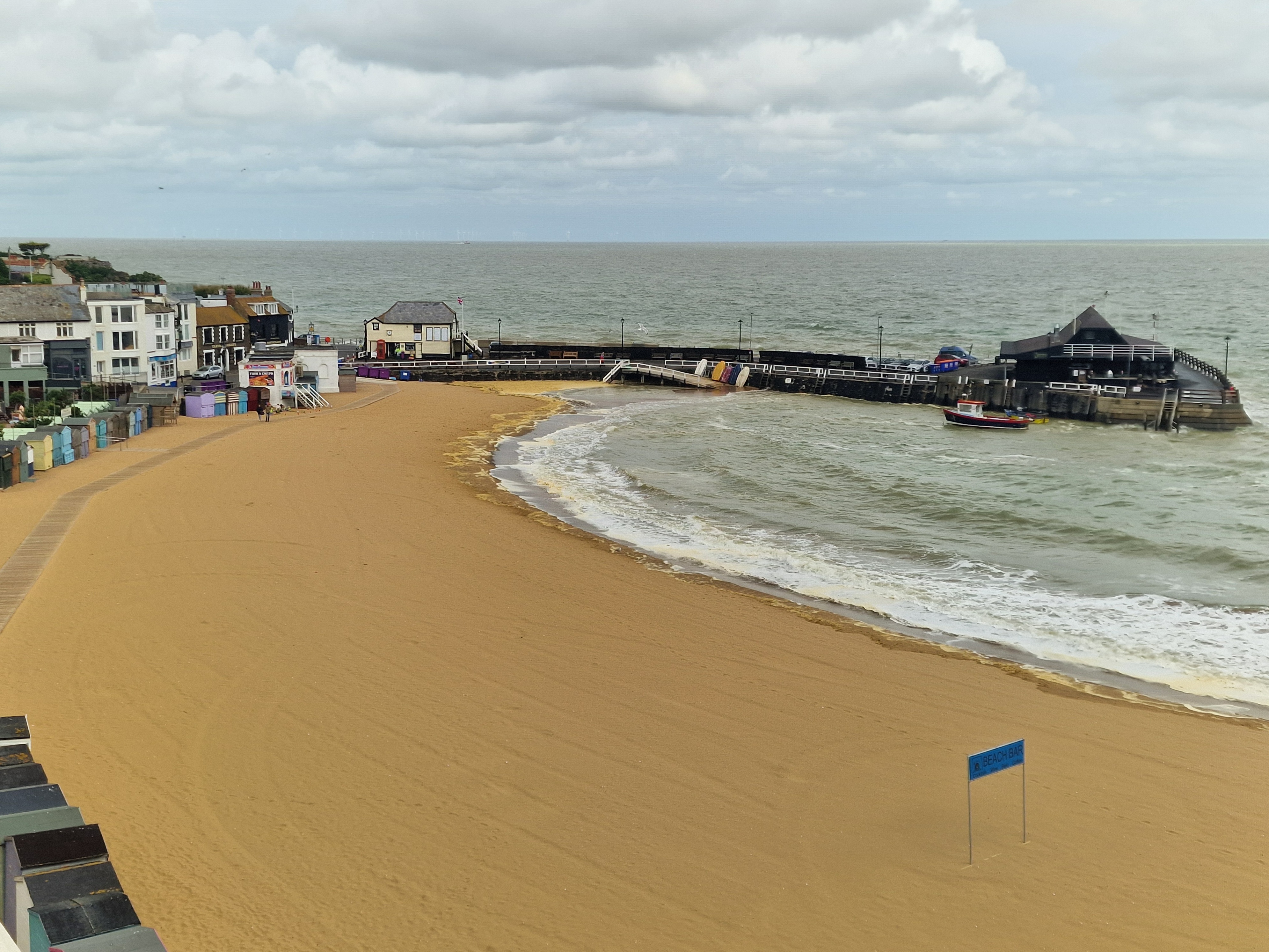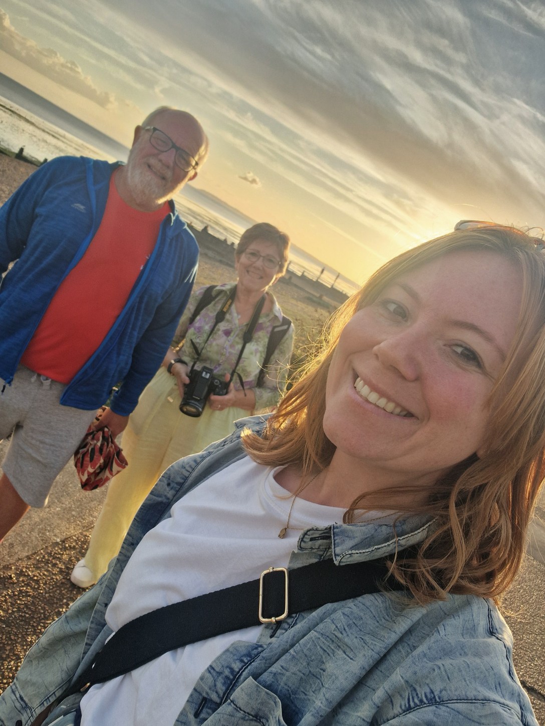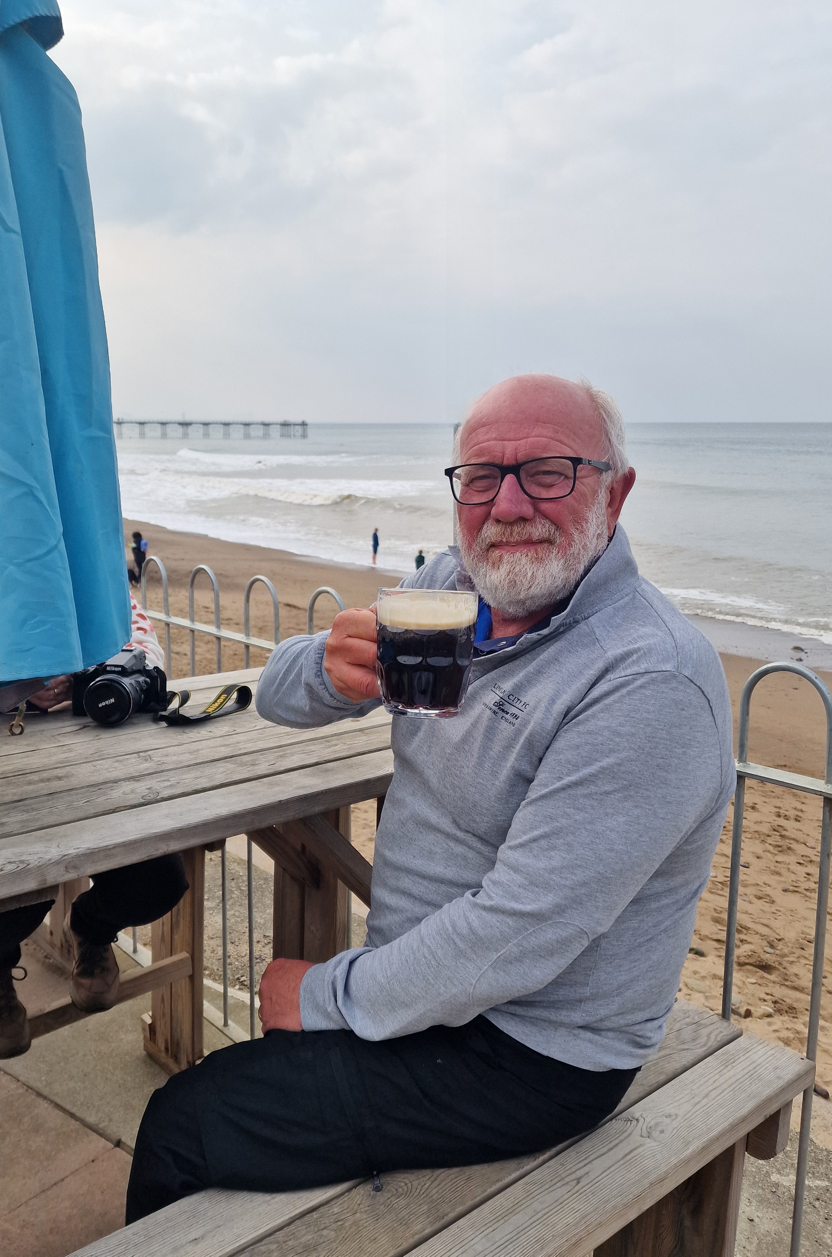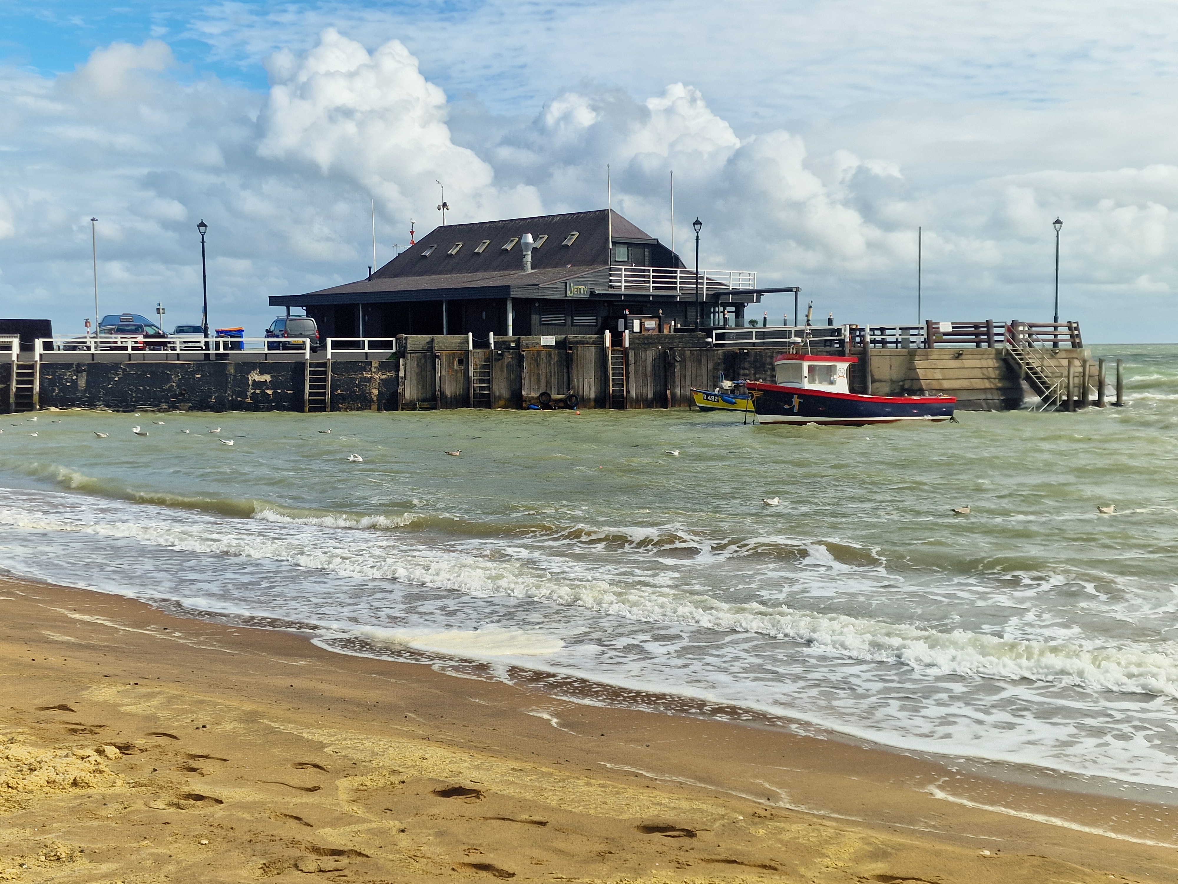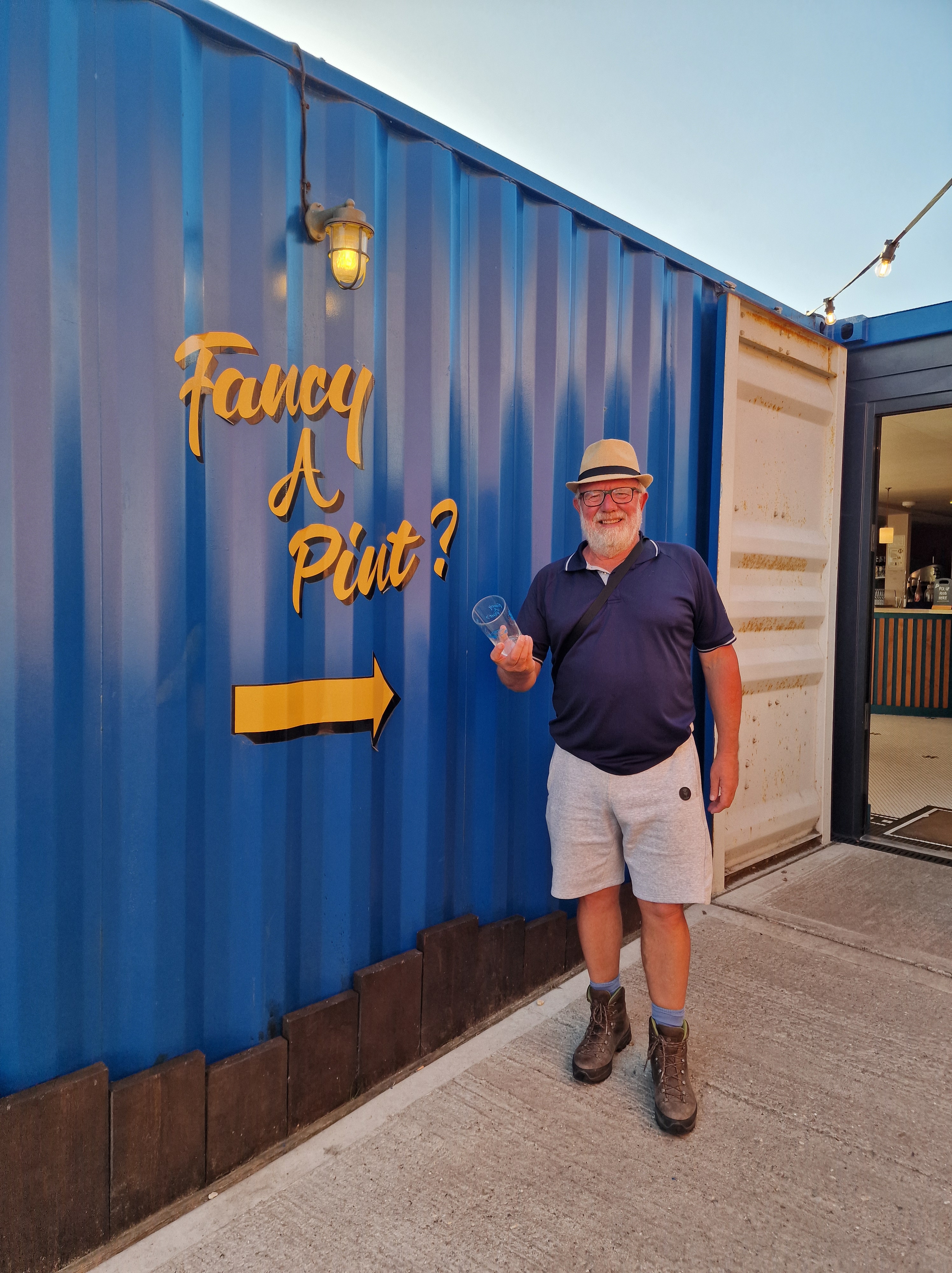 We then headed to The Ship for a much-needed drink, and Santa was thrilled to discover that they had Old Peculiar on tap! The pub boasts a large beer garden, which served as the perfect vantage point to watch the surfers while Momma snapped away with her camera. Next, we took a walk along the pier, had a quick go at the 2p machine (where we sadly won absolutely nothing 😩), and admired the colorful chalets. Finally, we returned to the beach for some fish and chips and a bottle of wine.