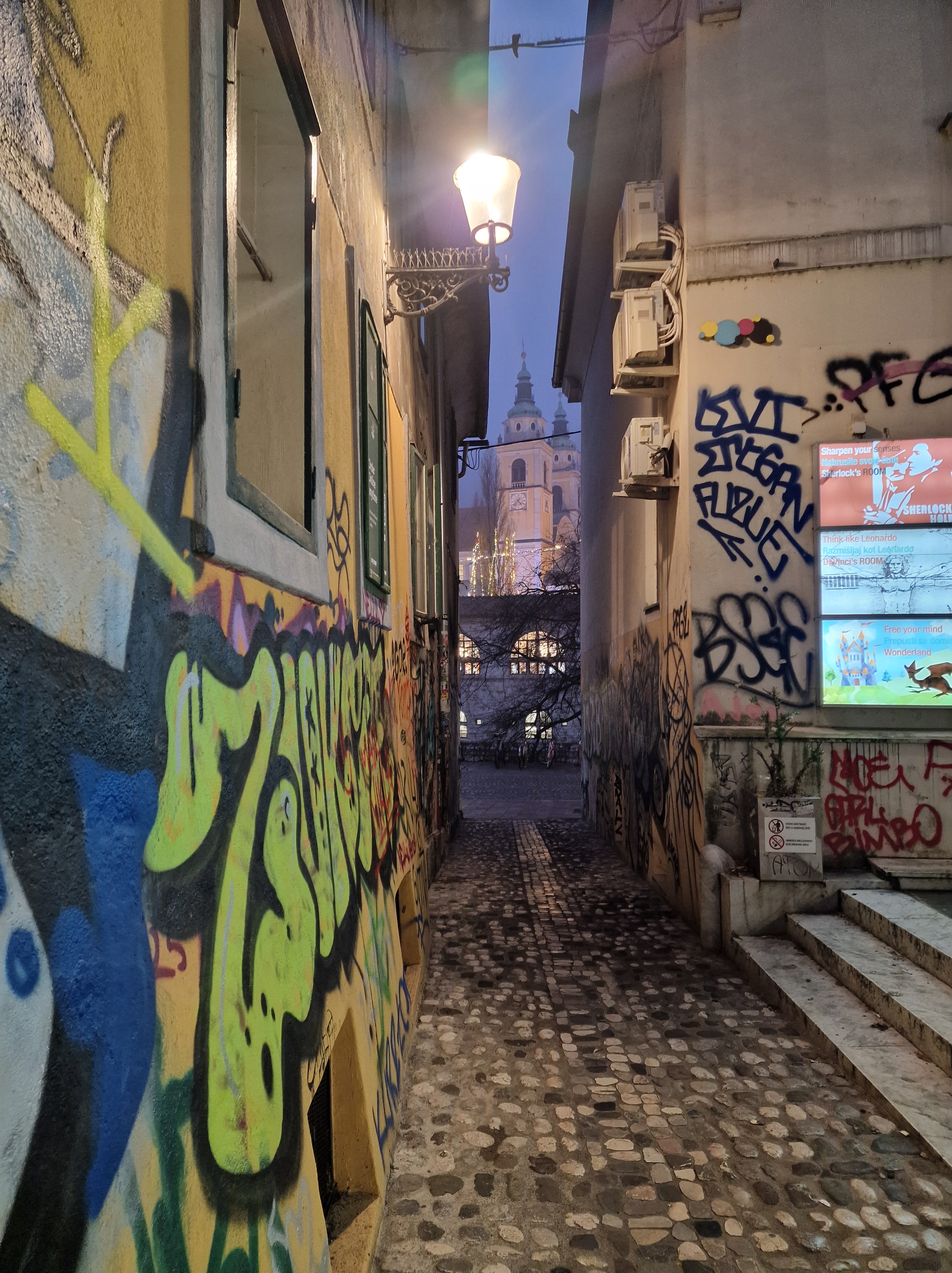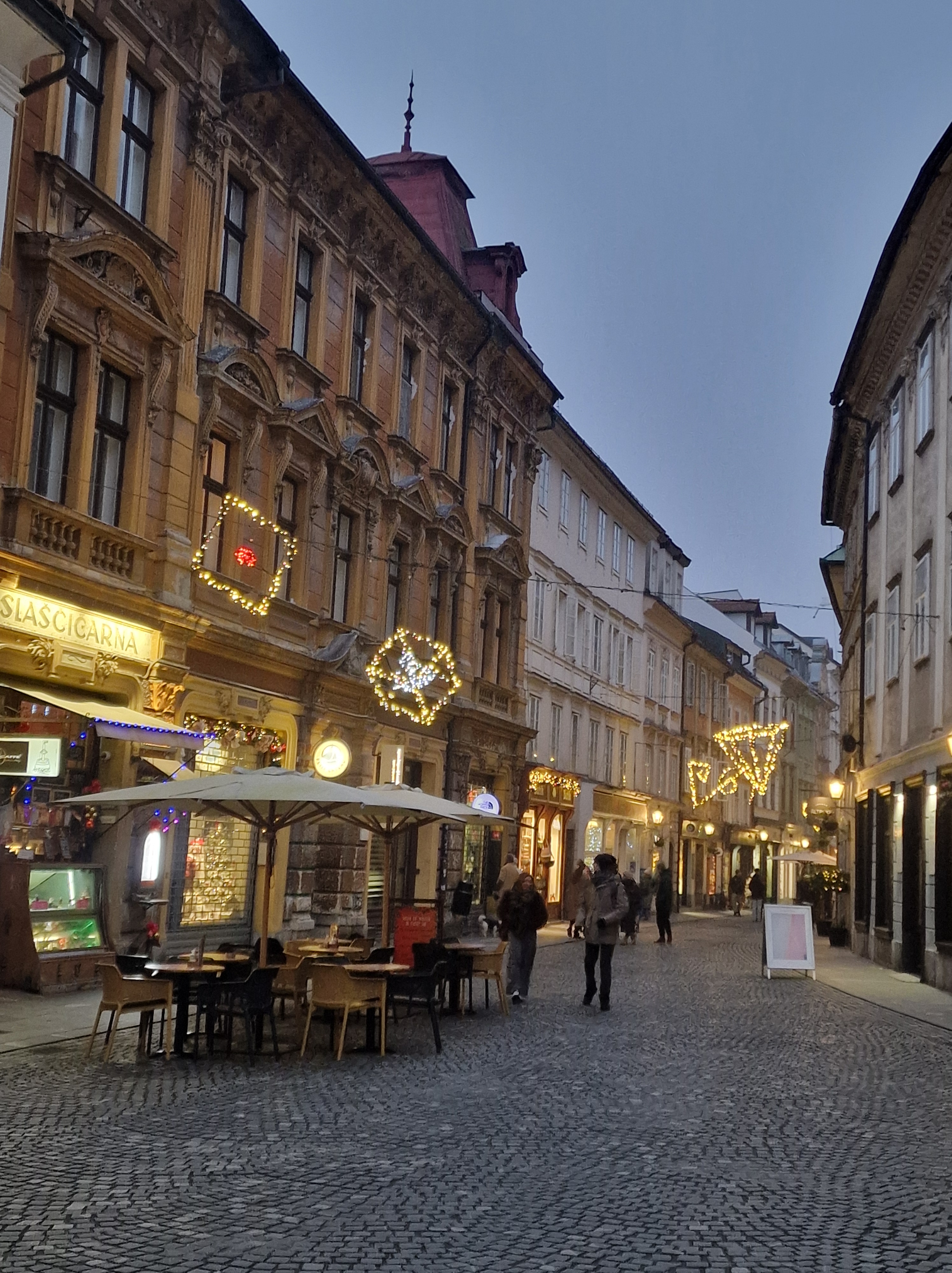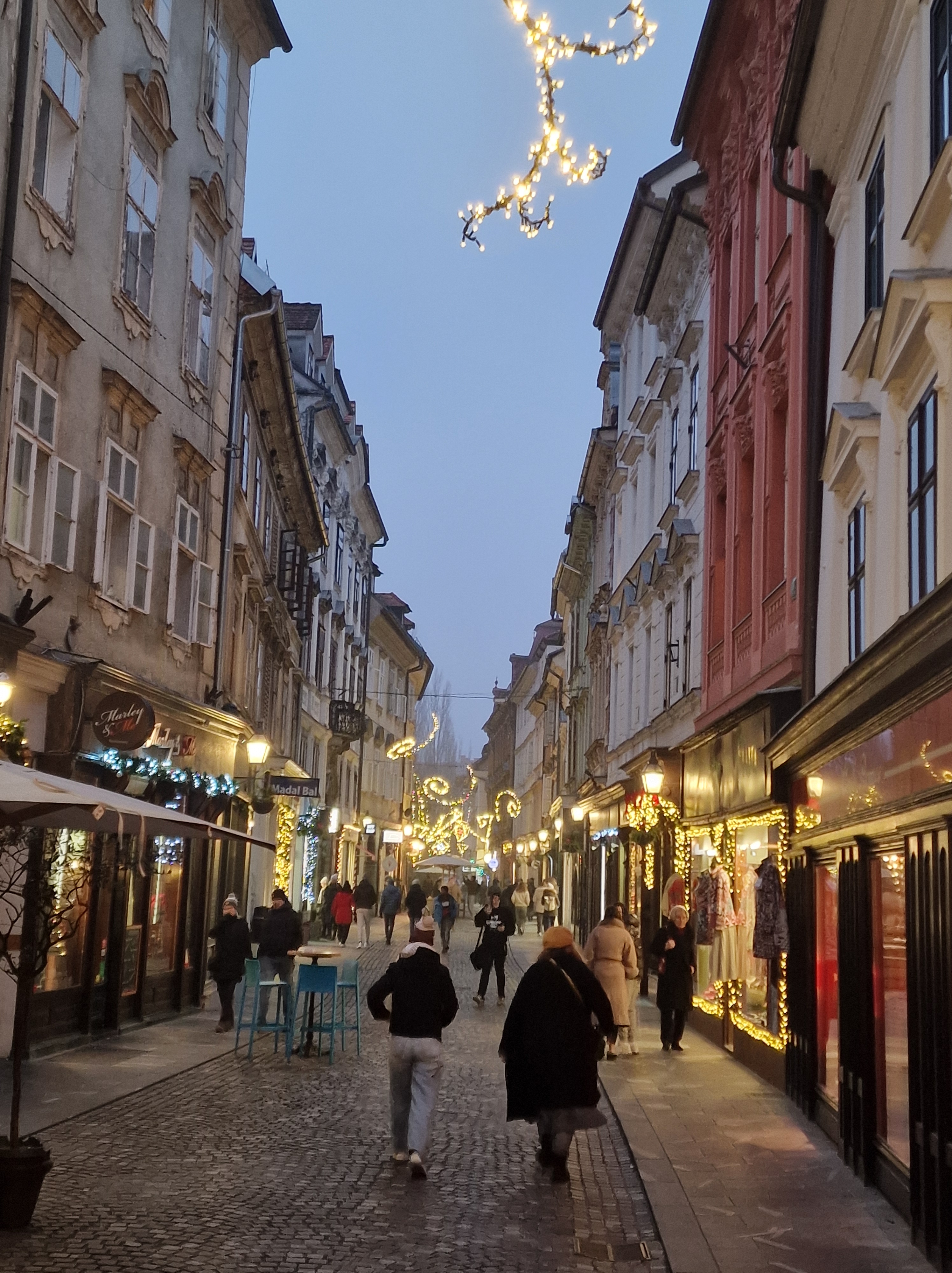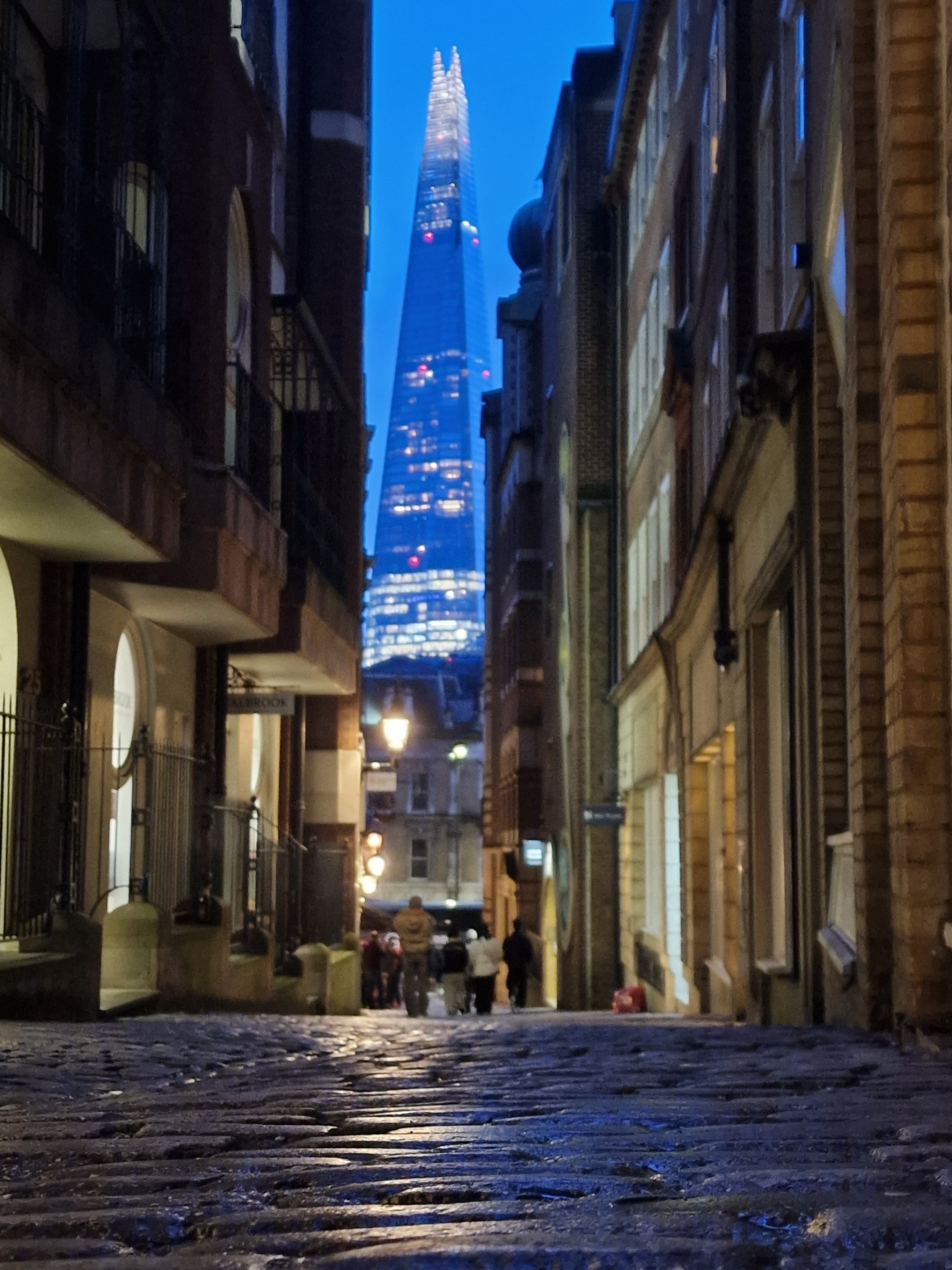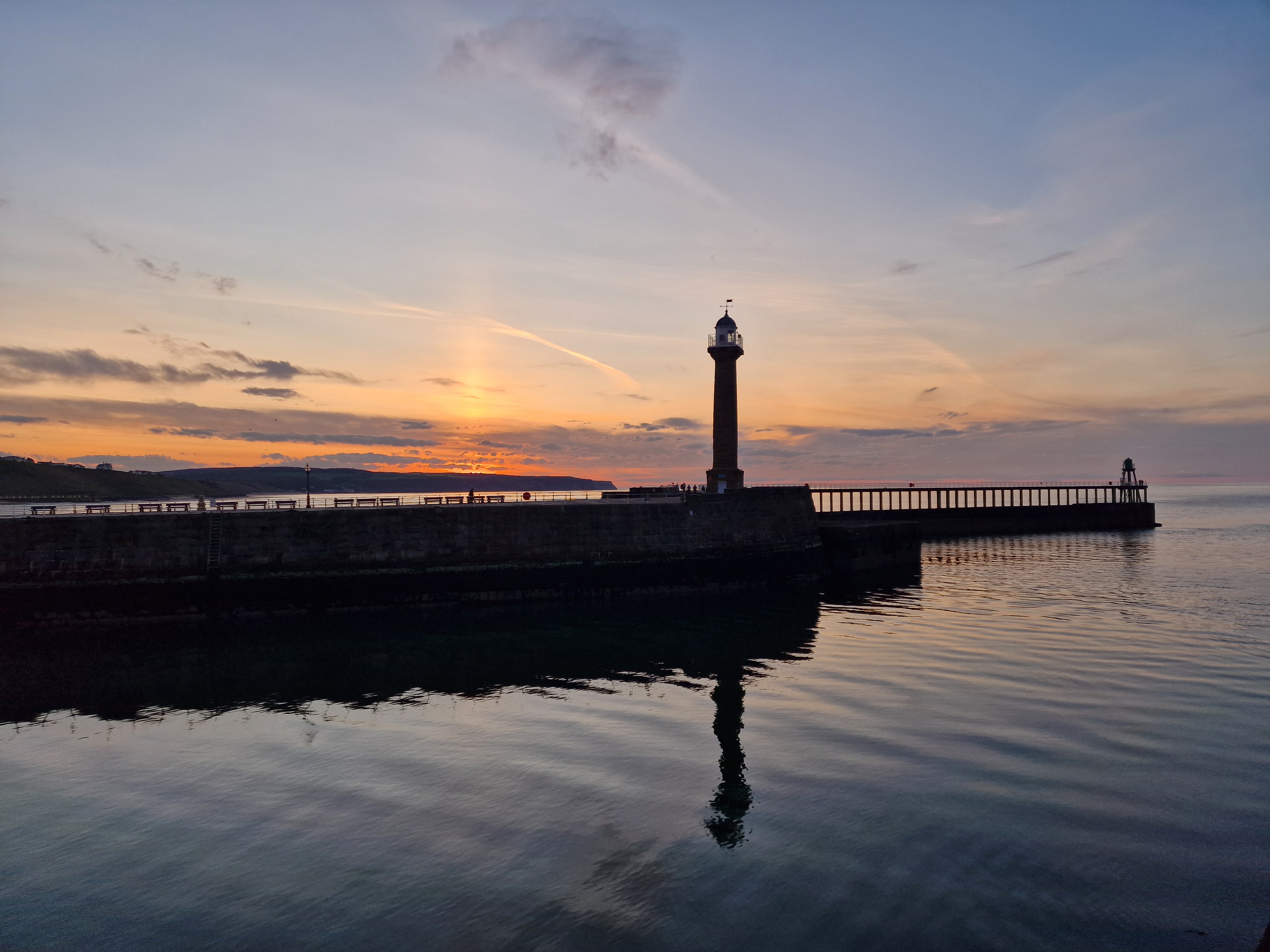 After exploring the Abbey, we visited Whitby Brewery, located in the shadow of the Abbey. Santa enjoyed a Black Death stout, and we all indulged in some delicious pizza. Afterward, we strolled over to the Whalebone Arch, erected in 1853, which frames a stunning view of the town below as well as the Abbey. To finish off the day, we headed to the East Pier to catch the sunset. The streets were now empty, allowing us to admire the old cobblestones and shopfronts on our walk back to the car.