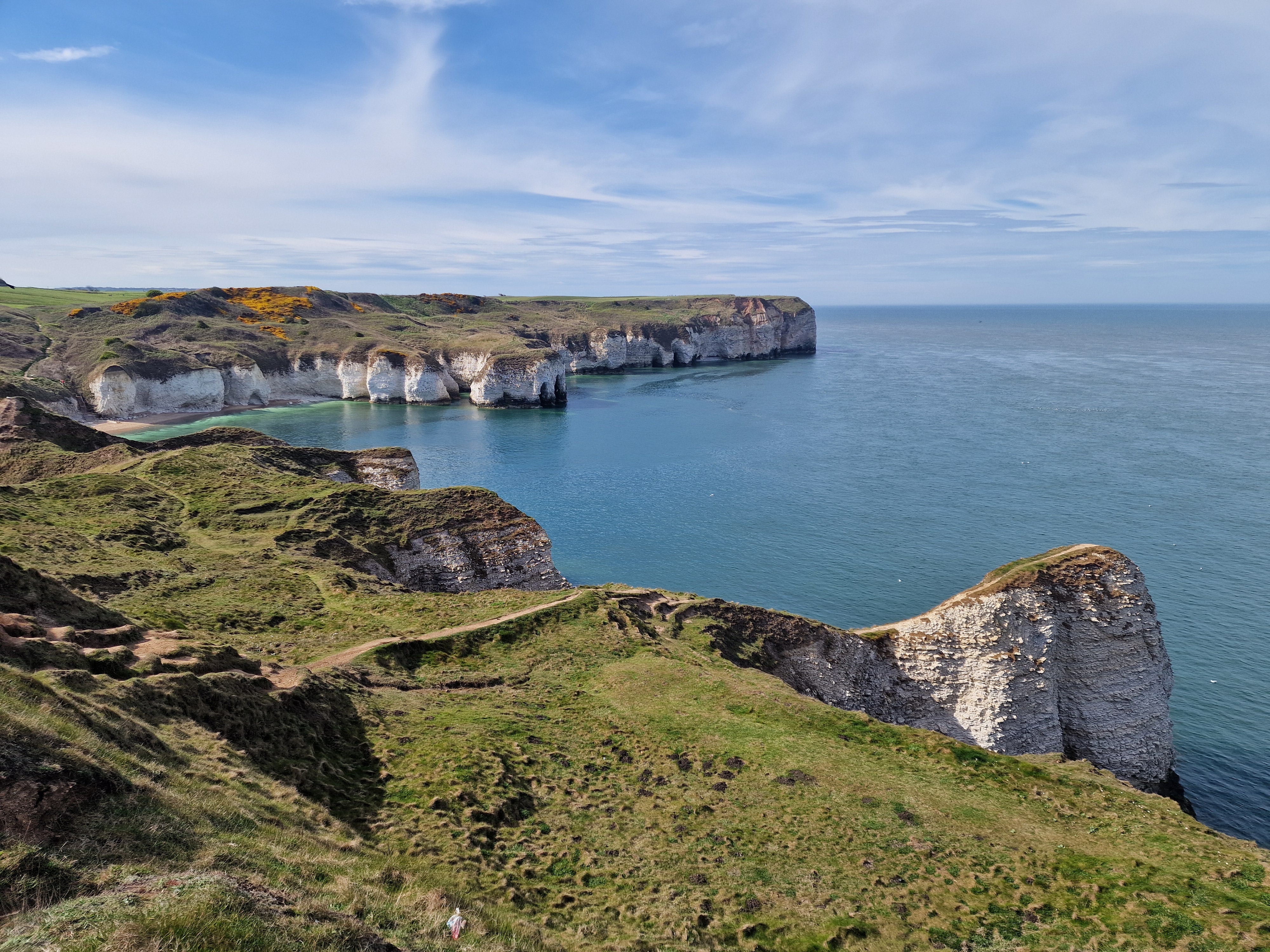 Flamborough Head The last place we visited before heading home was Flamborough Head, a chalk headland known for its sheer white cliffs. It features two lighthouses: one built in 1669 and the other in 1806. The color of the water here was incredible—something you would expect from a tropical island, not the windy coast of Yorkshire. The photos truly don’t do it justice.