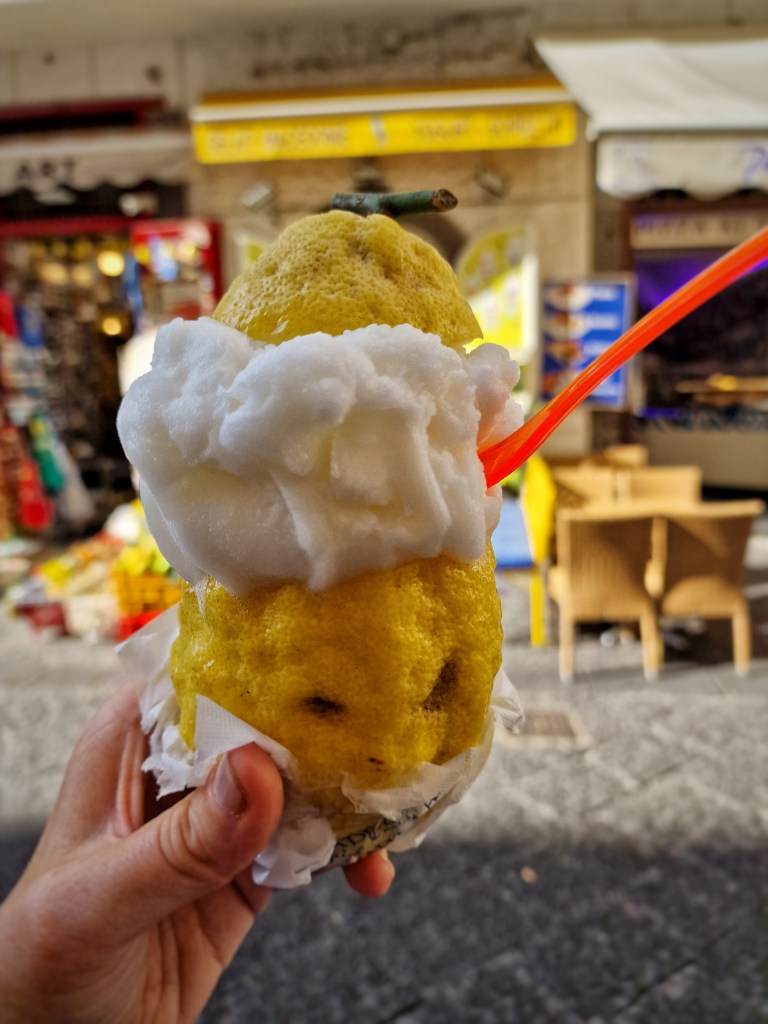We had already got 10k steps in by midday! As we had a few hours to kill before the boat we decided do the last mooch of Sorrento. The city walls close at 1pm so we’ve always missed our chance to go, but today we managed to explore them. Although it’s only a very small section of the wall you actually get to walk on, it’s still worth it even to get a better perspective of the local life going on below. We also found a little garden full of fruit trees that we seem to have missed, even though we’ve walked by 100s of times.