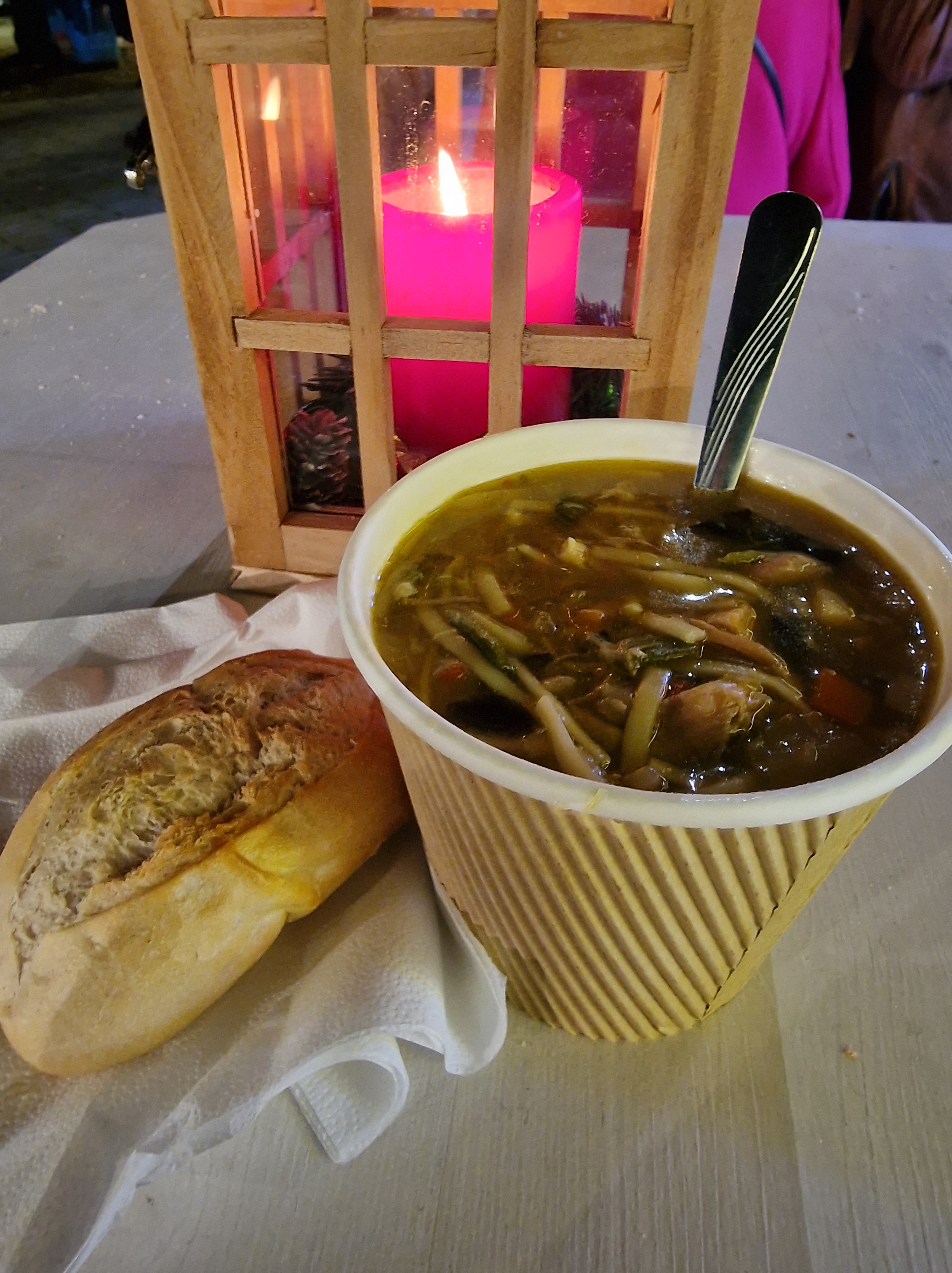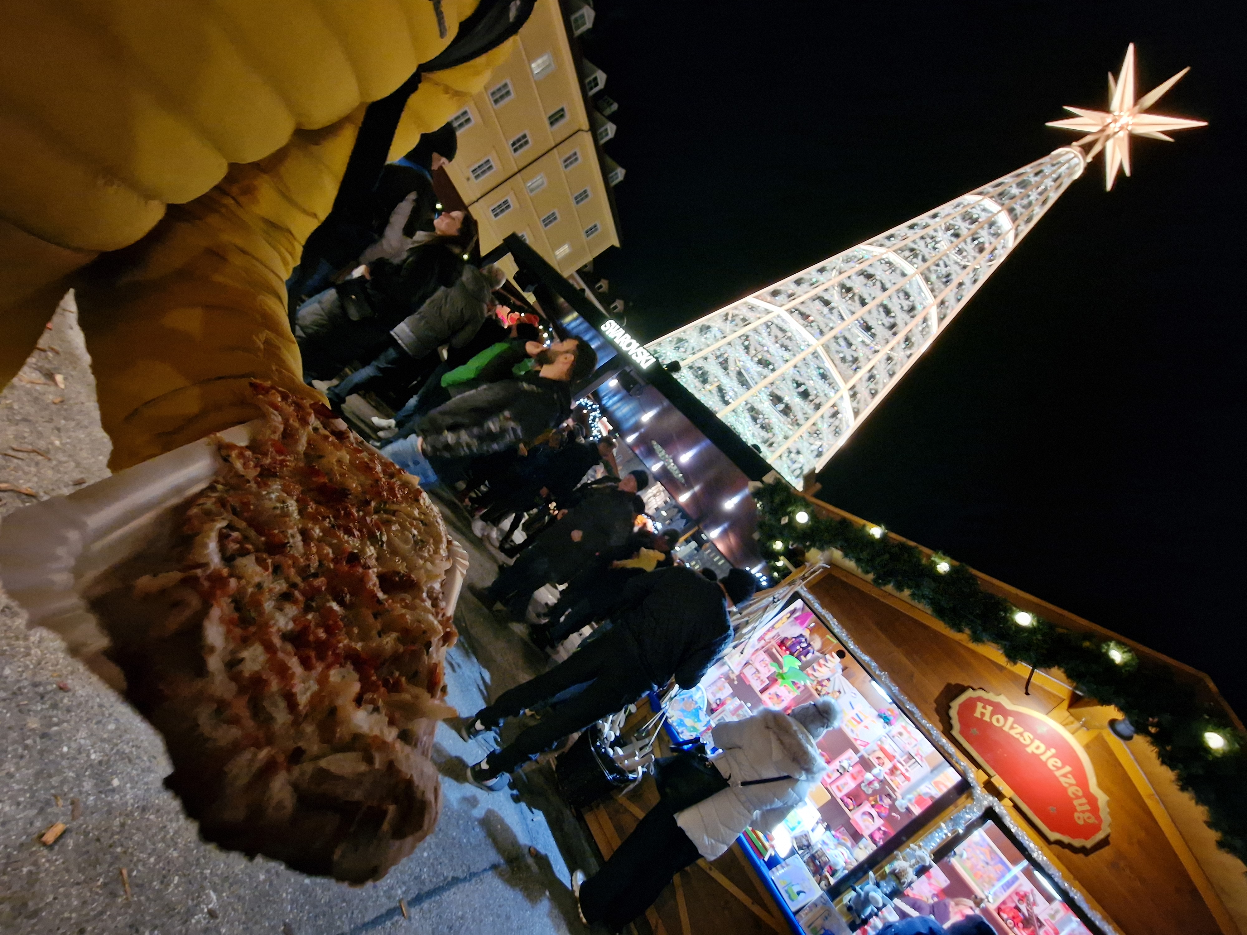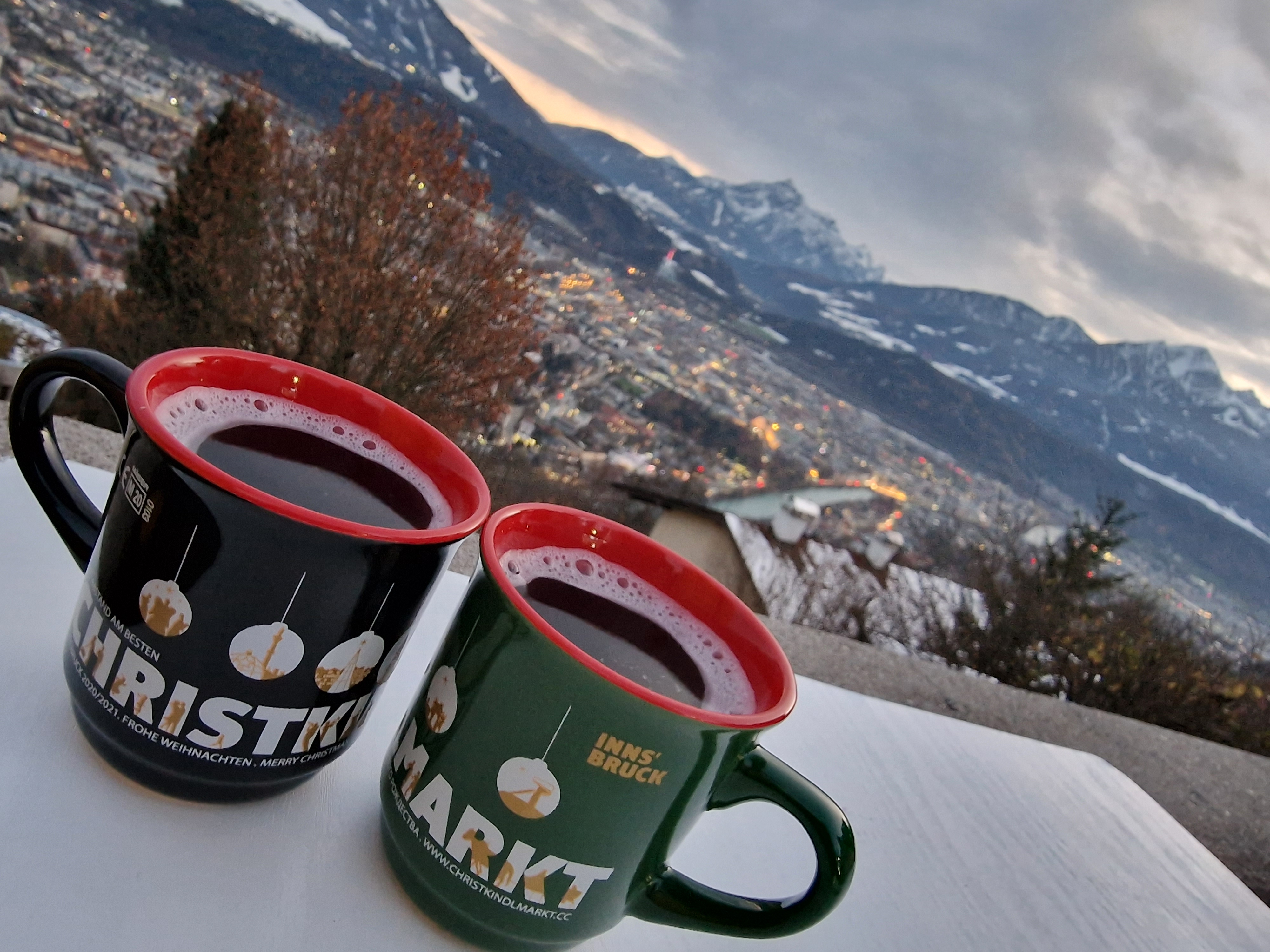 It then dawned on us that we hadn’t eaten for about 3 hours! Luckily, there was a cafe near the Hungerburg Christmas Market we had visited the day before, and we ordered a massive plate of meat and cheese and a basket of warm fresh bread. This and a glass of white wine was the treat we needed. We got the funicular back down and decided to head back into the markets to see what we had missed; however, it was absolutely heaving and by far the busiest market we have been to so far. It was very difficult trying to get anywhere with people dawdling and just stopping in front of you to take photos. As we know, I’m all for photos! But have some photo etiquette and step to the side where people aren’t walking at you with hot mugs of Glühwein. Punch seems to be the thing in Austria so we sampled one apricot and one apple, with all sorts of alcohol shoved in for added flavour. I’m glad we tried them, but it’s certainly not something we would rush back to have.