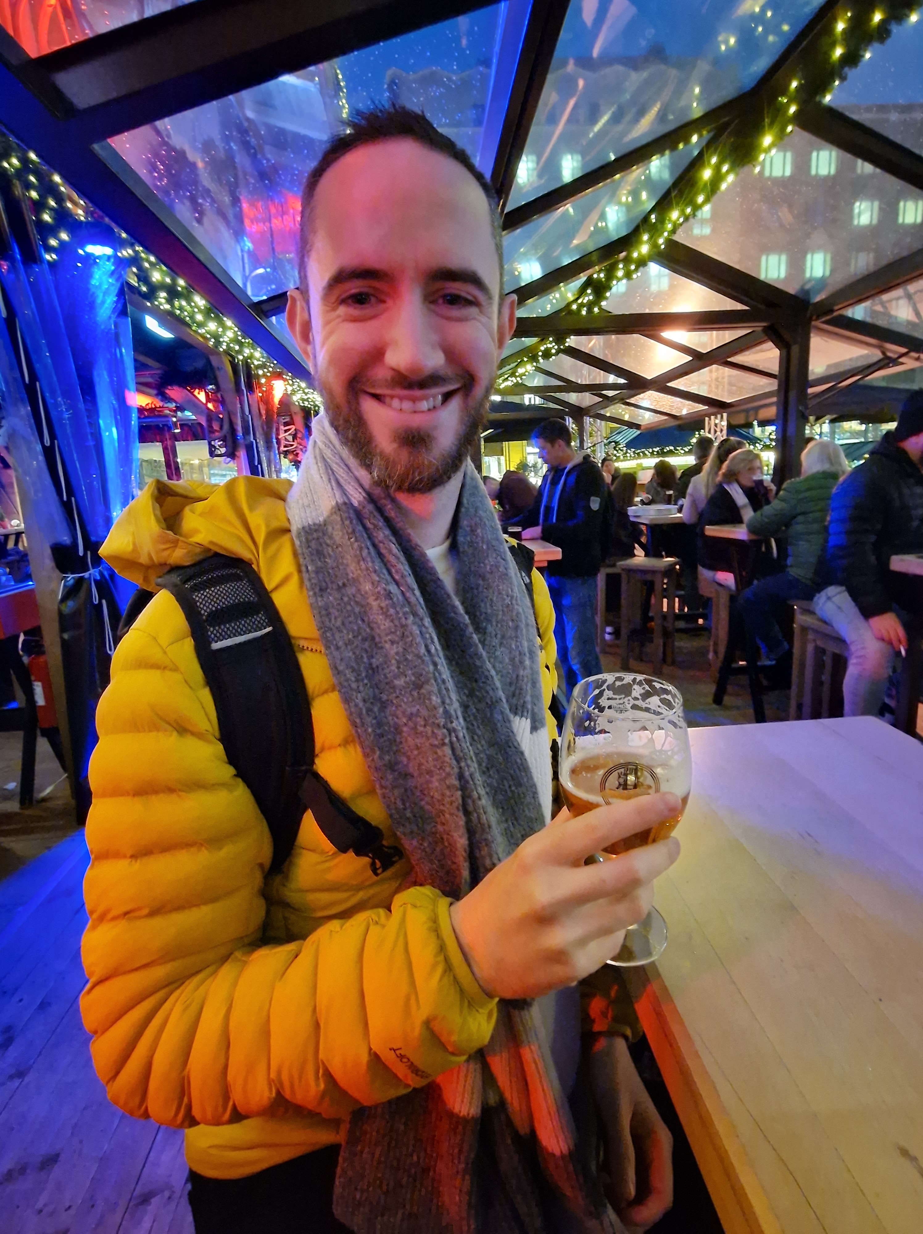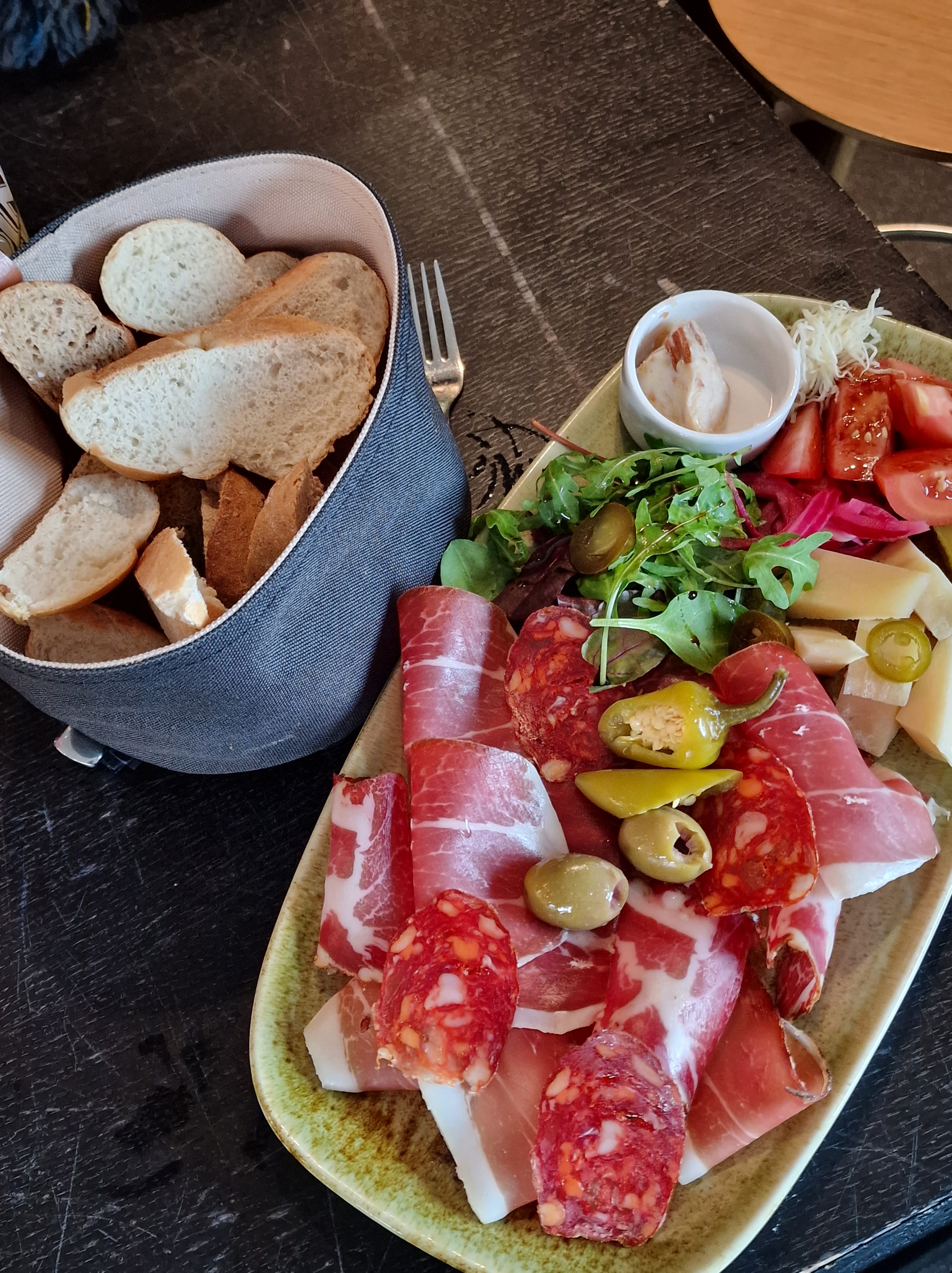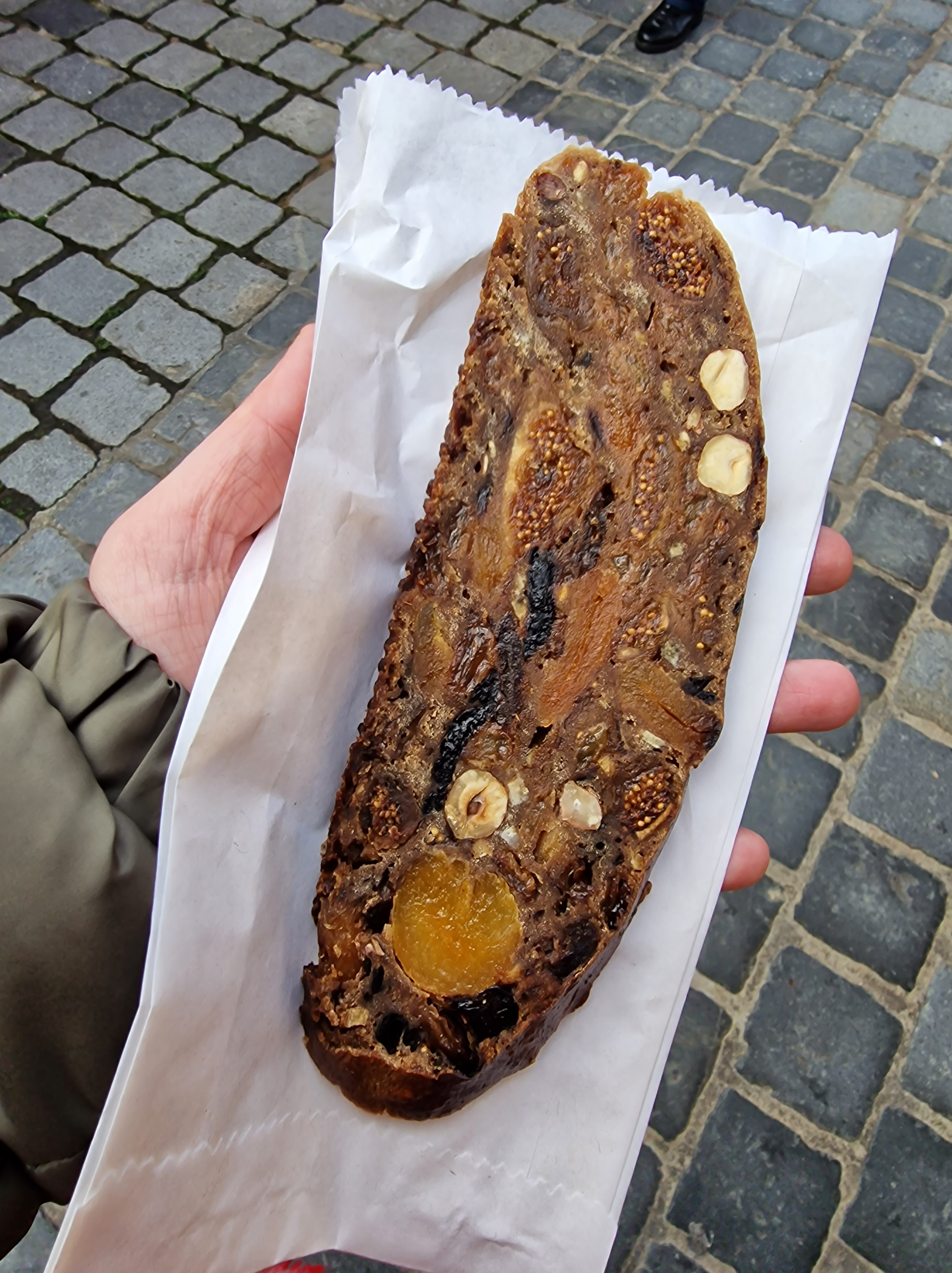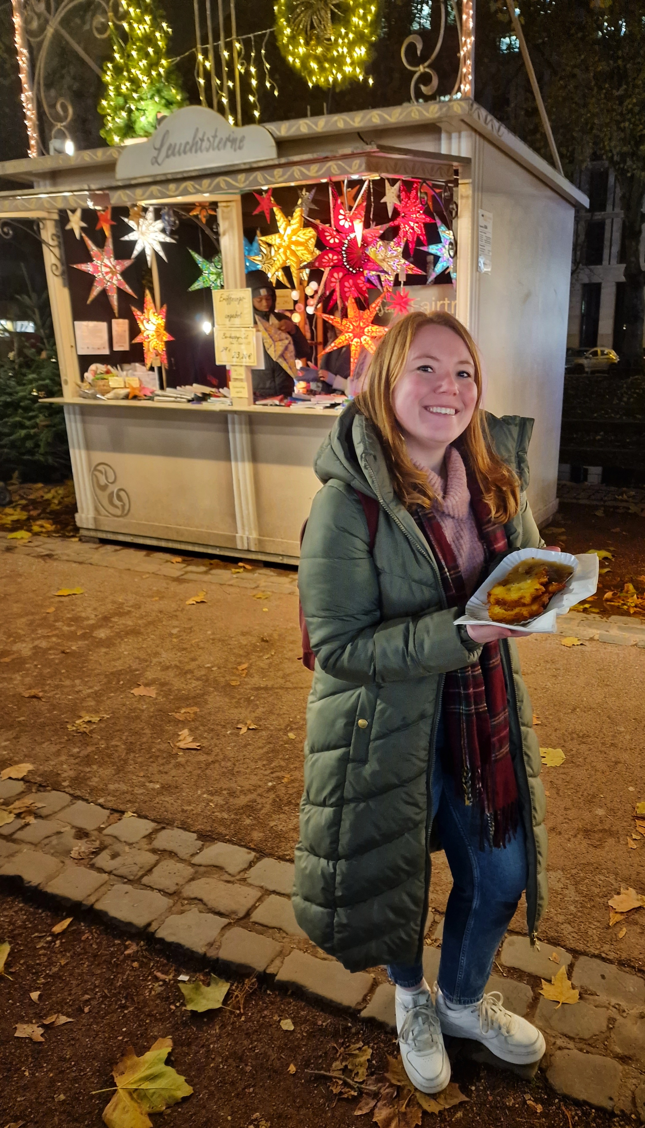 It then dawned on us that we hadn’t eaten for about 3 hours! Luckily, there was a cafe near the Hungerburg Christmas Market we had visited the day before, and we ordered a massive plate of meat and cheese and a basket of warm fresh bread. This and a glass of white wine was the treat we needed. We got the funicular back down and decided to head back into the markets to see what we had missed; however, it was absolutely heaving and by far the busiest market we have been to so far. It was very difficult trying to get anywhere with people dawdling and just stopping in front of you to take photos. As we know, I’m all for photos! But have some photo etiquette and step to the side where people aren’t walking at you with hot mugs of Glühwein. Punch seems to be the thing in Austria so we sampled one apricot and one apple, with all sorts of alcohol shoved in for added flavour. I’m glad we tried them, but it’s certainly not something we would rush back to have.