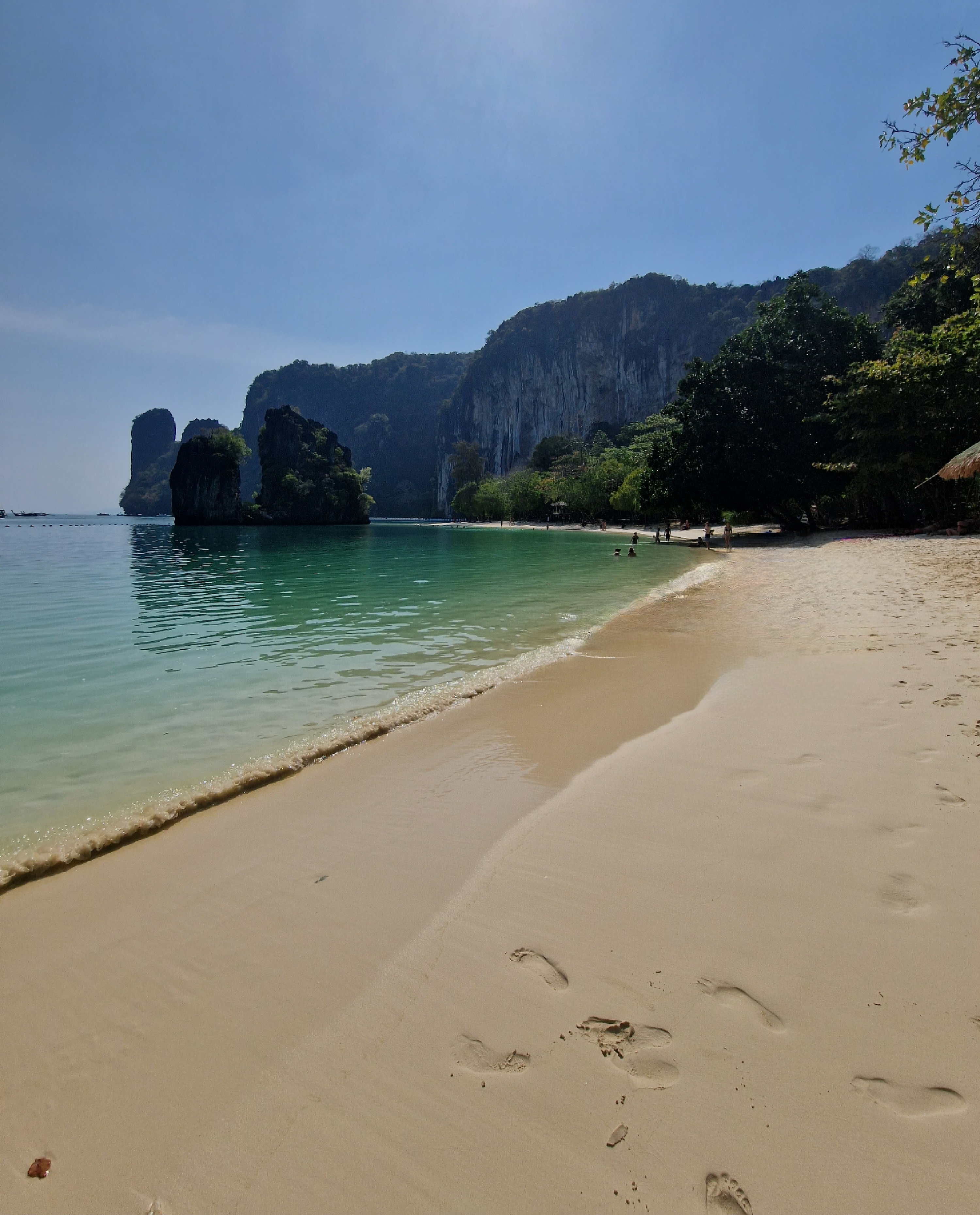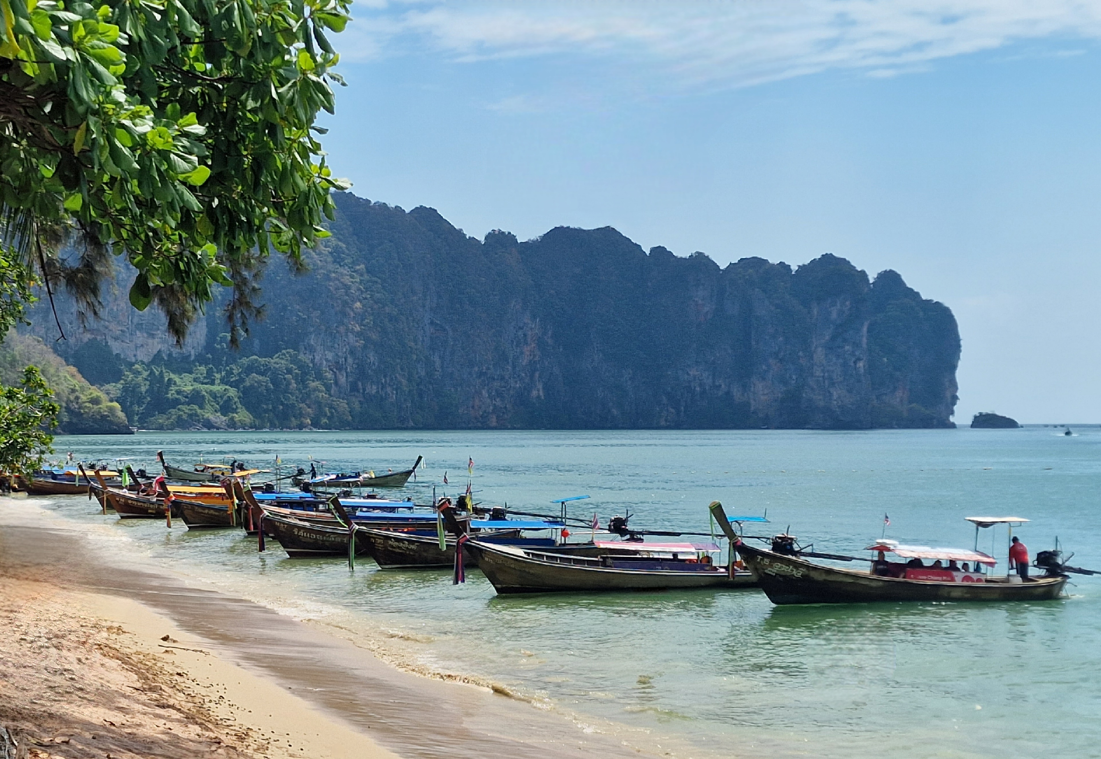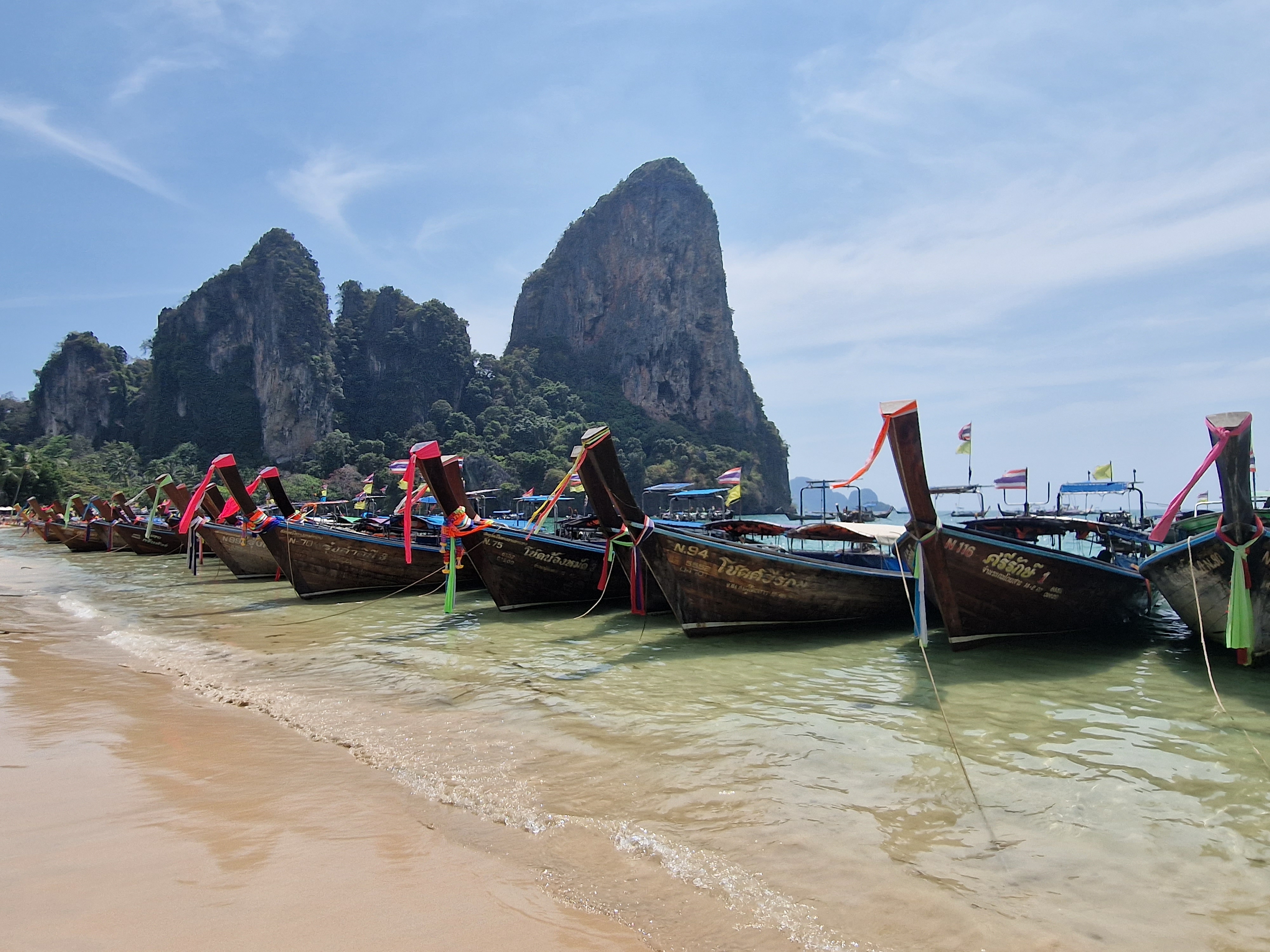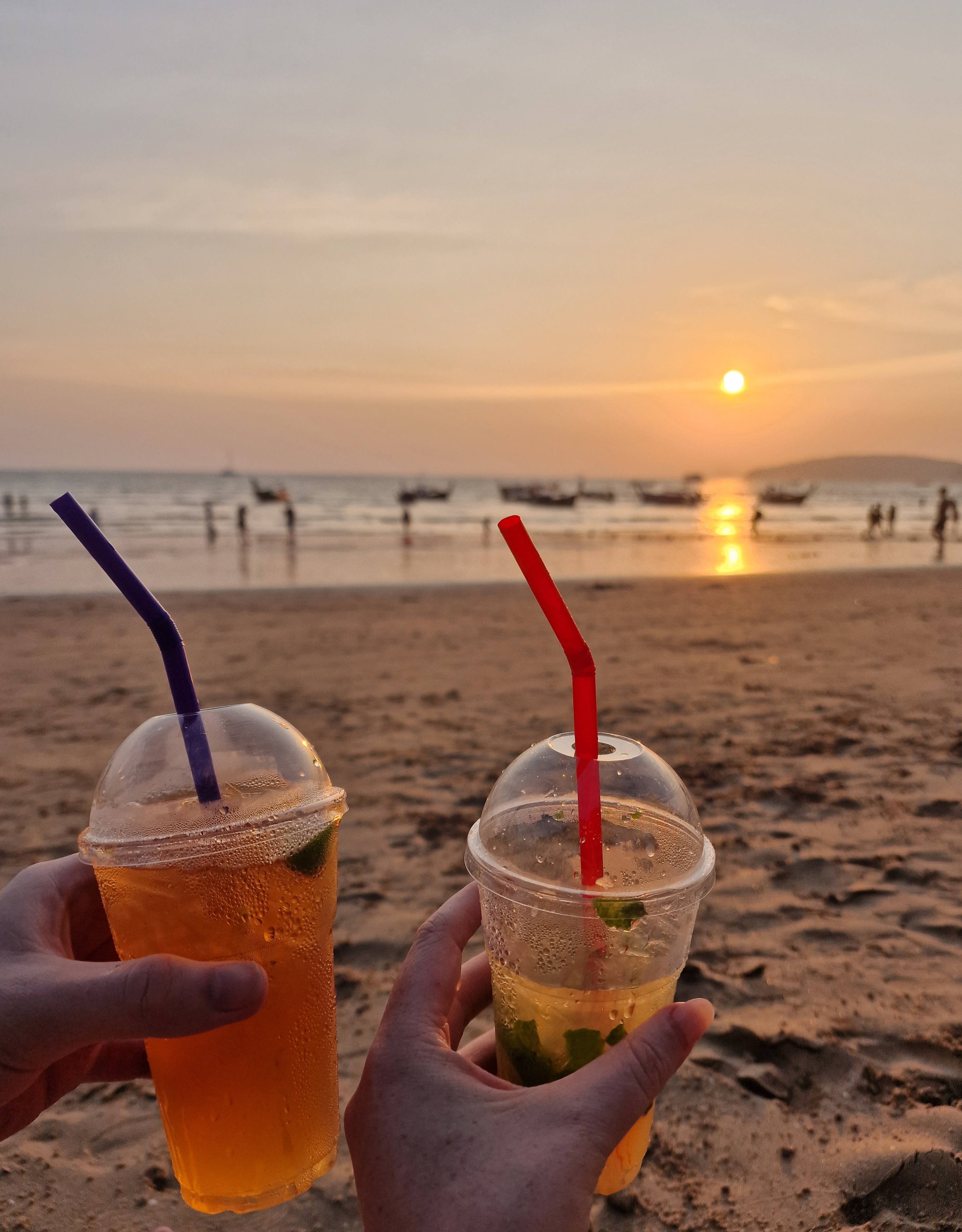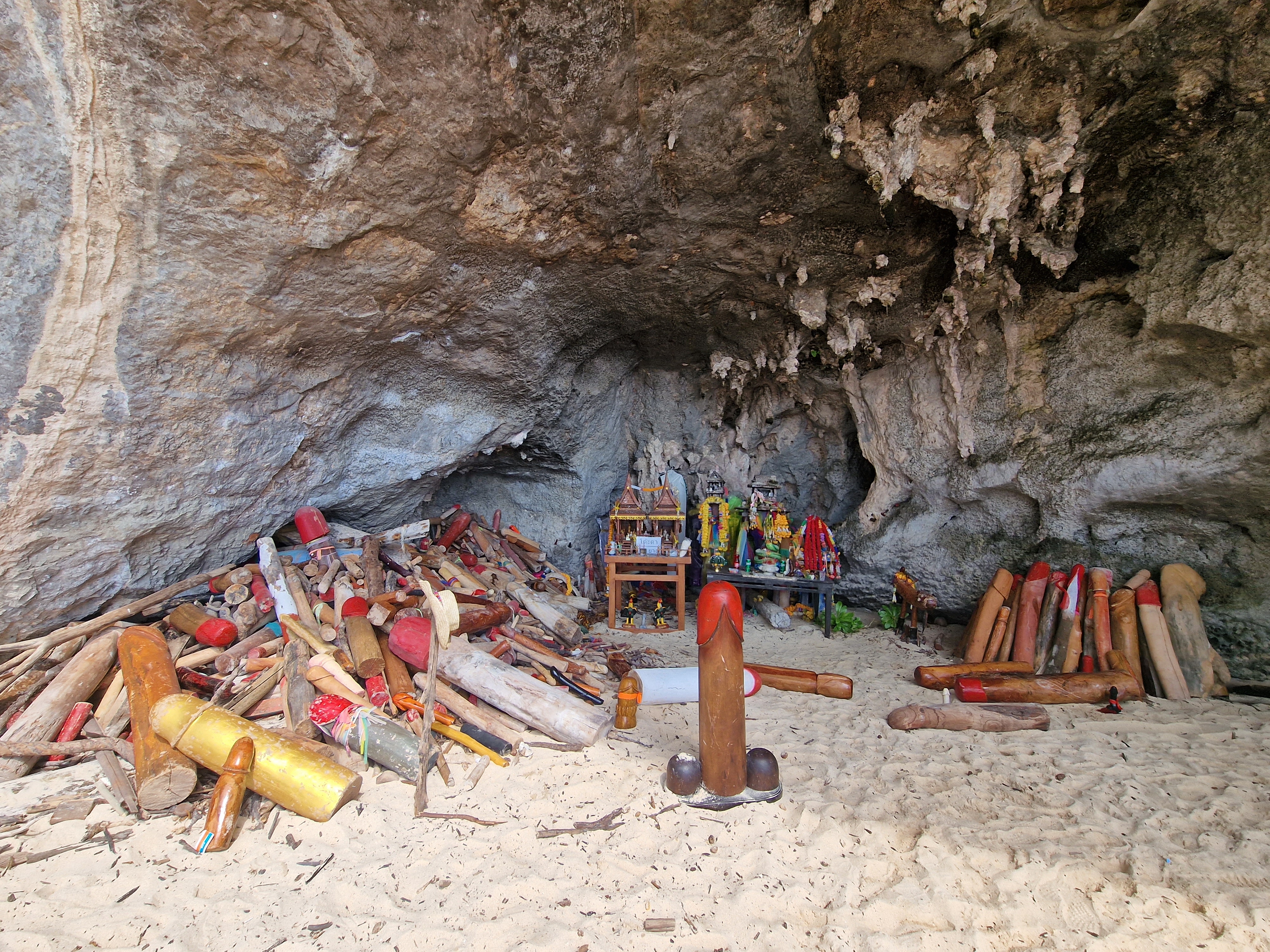 This trip has been so full on, so we decided to actually have a day doing not a fat lot, and took a long-tail to nearby Railay beach, famous for it’s long stretches of white sand surrounded by limestone cliffs. We found a spot to set up camp, and for the first time since our trip began, we lay down and did absolutely nothing. Obviously, I’m terrible for sitting still, and I’d heard about a cave full of penis’s, so after I’d allowed Mark a few hours rest 🤣 we were off to find the cave. It’s about 15 mins walk to the other side of Railay, and sure enough is not one, but two caves full of wooden phalluses! Locals come here with offerings in the hope to boost their fertility. After another chill on the beach, we got the long-tail back to Aonang in time to watch the sunset. We grabbed cocktails and joined the 100s of people to watch, and it was stunning.
