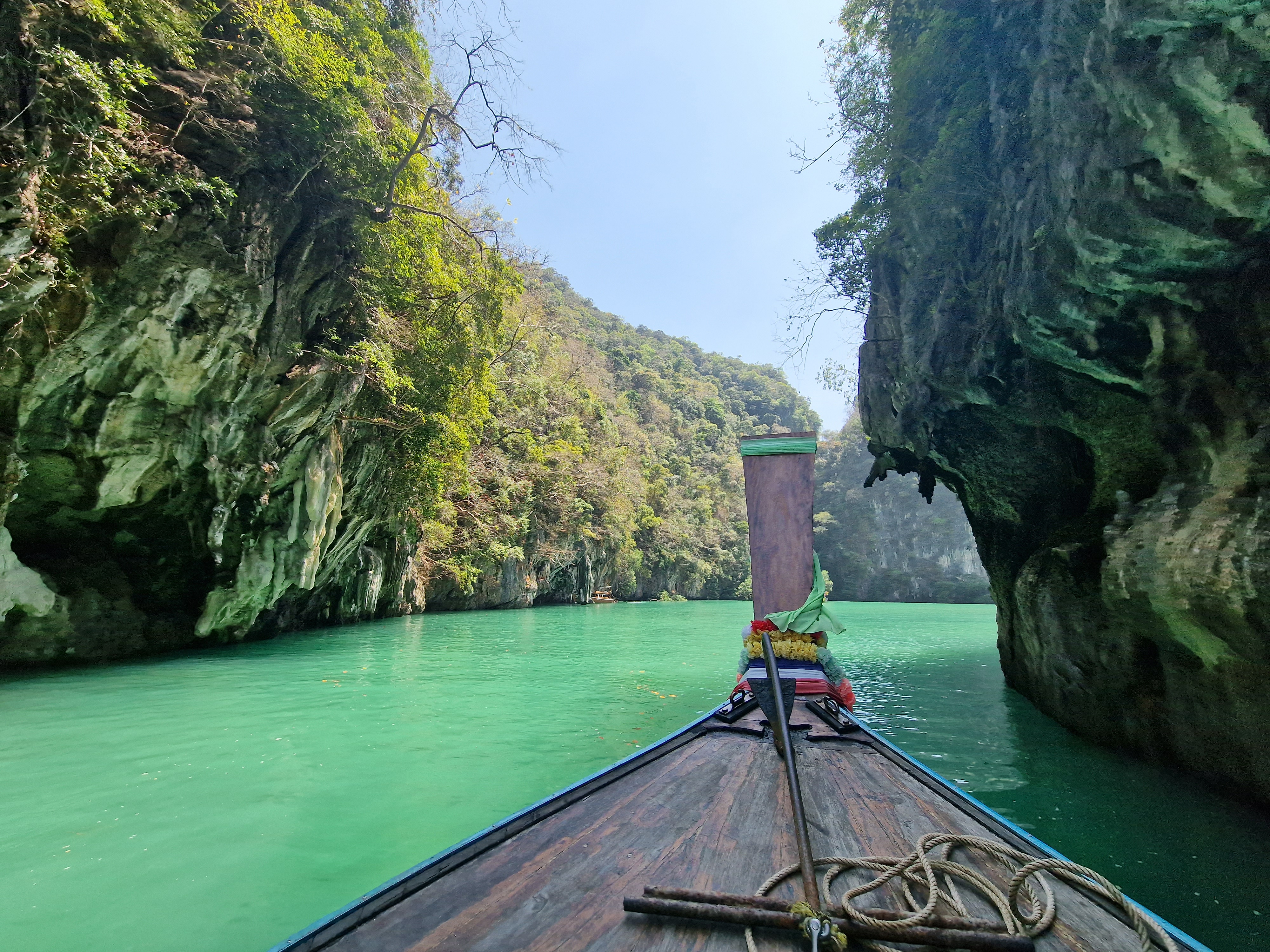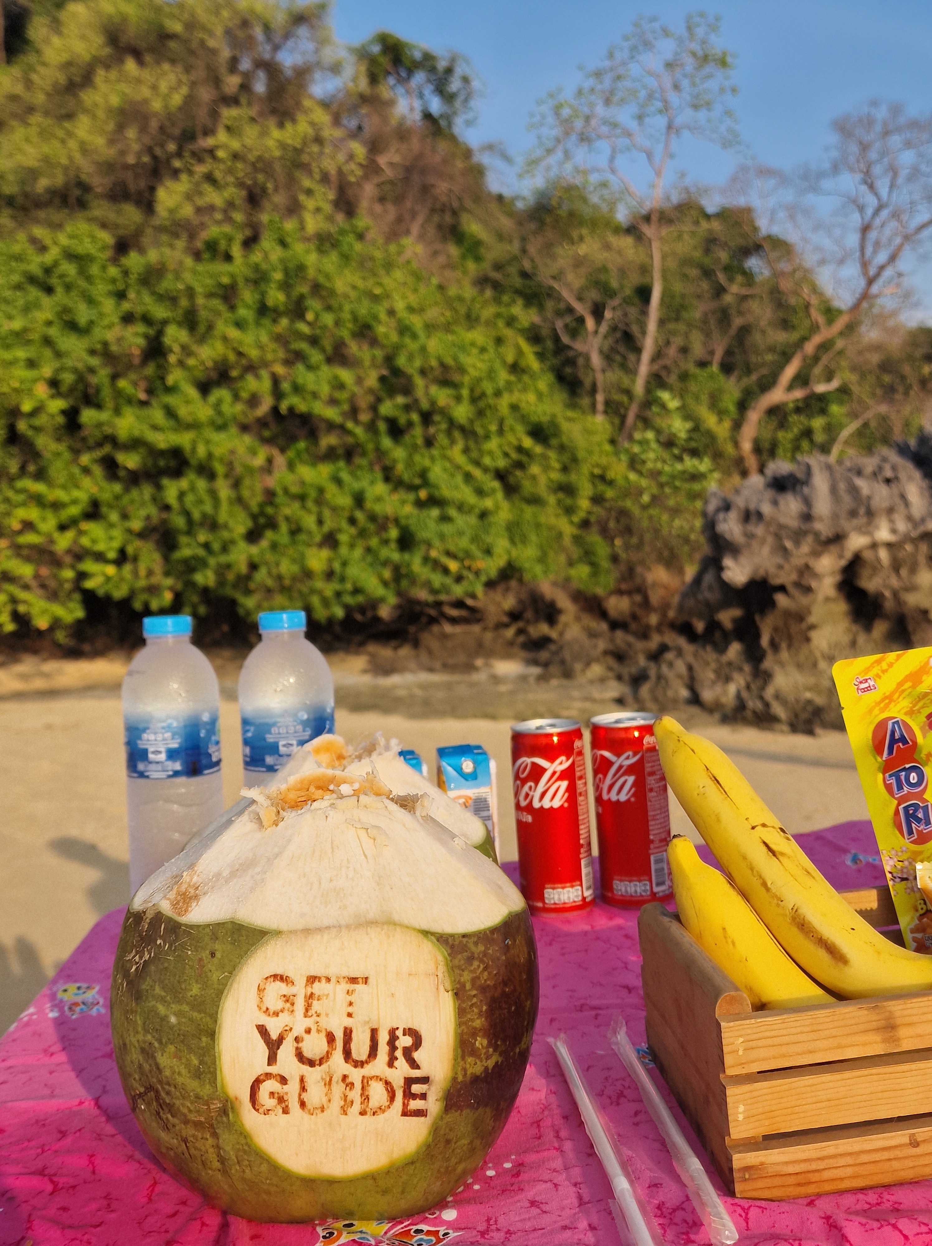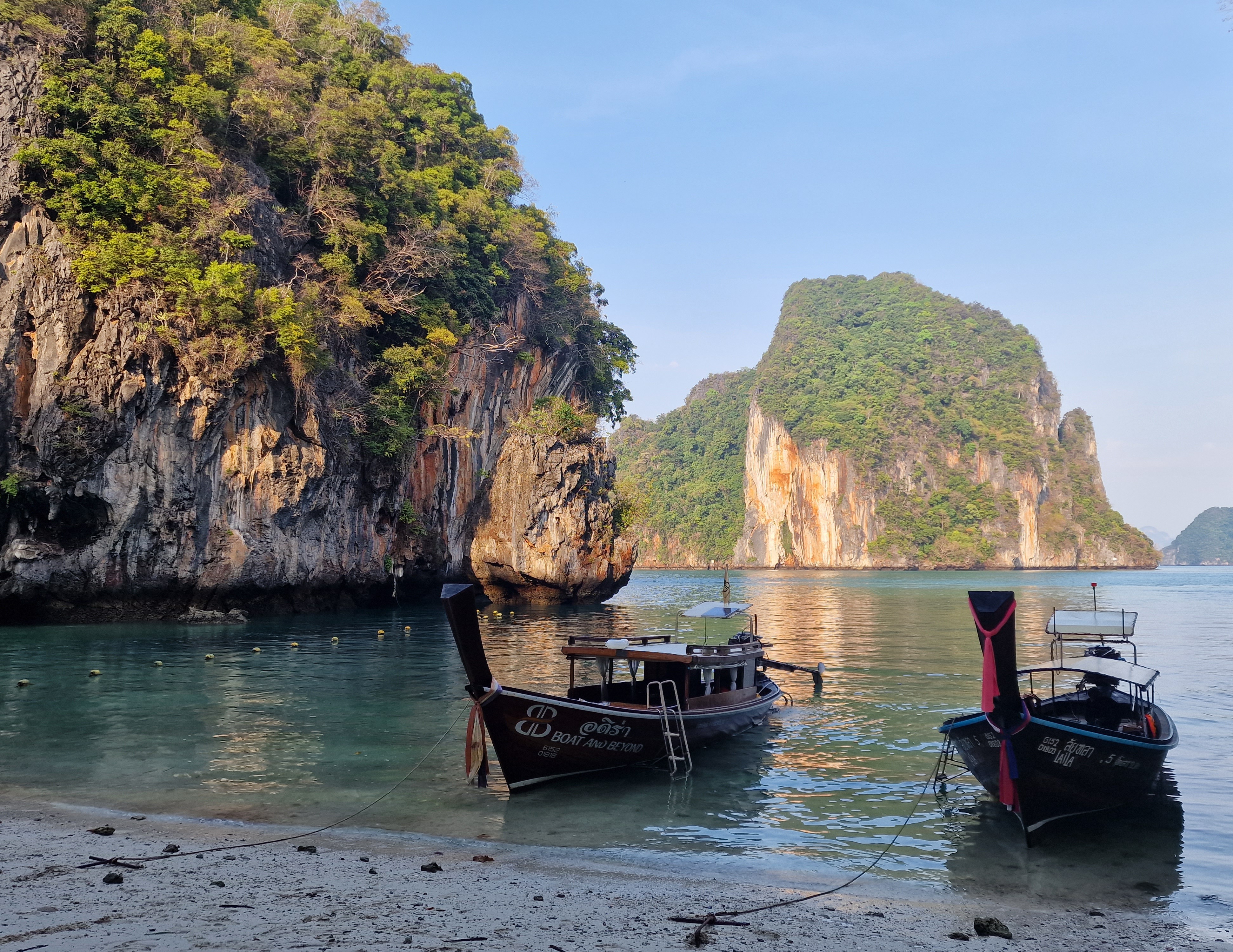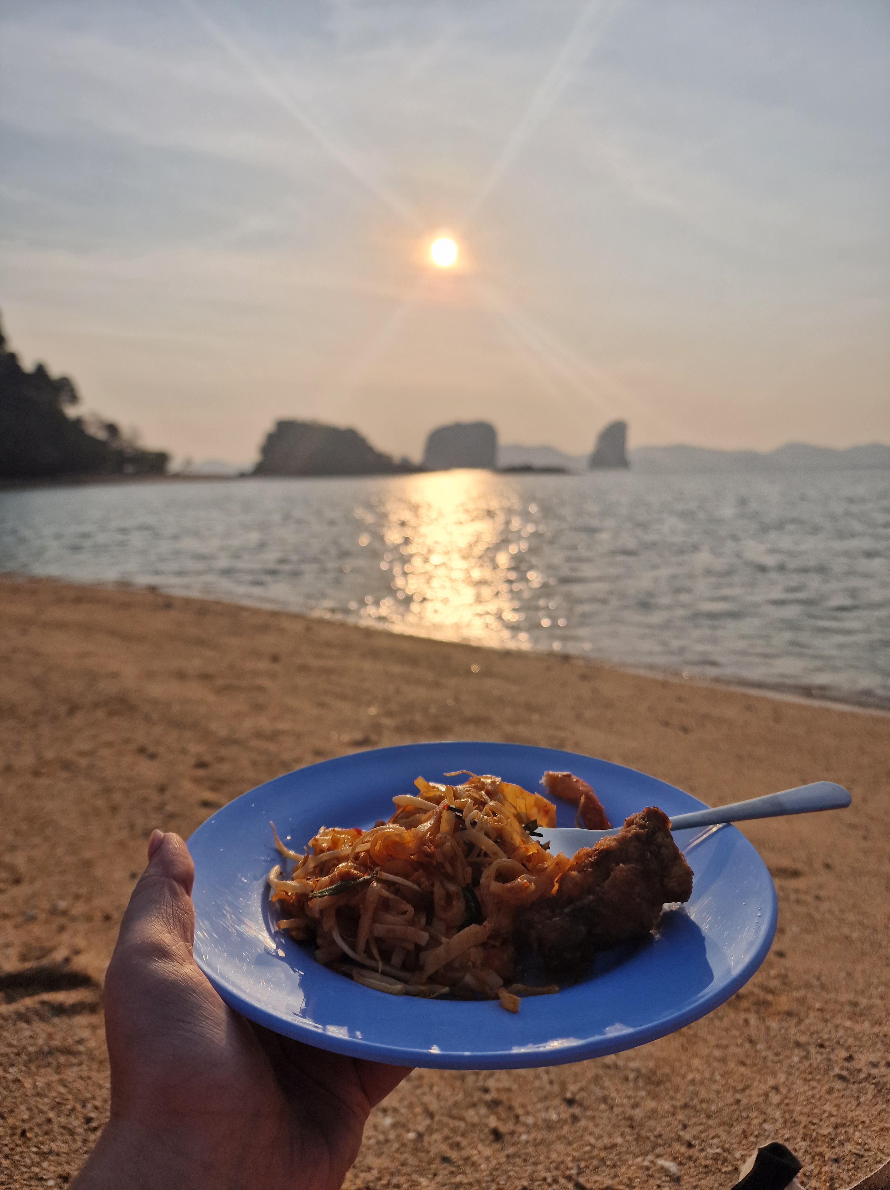 We had always said that we would go to Phi Phi, however after much thought over the last few days and listening to feedback from others, we decided that it had probably become too busy and too touristy for a one day visit. So we decided to do Hong Islands instead! We hired a private long-tail (much more expensive option but again it gives you freedom to do what you want) and set out on our journey. We were picked up at the hotel (20 mins early!! They phoned our room to see where we were 🤣) and headed to the pier to get our boat. We arrived at the National Park and got a much needed iced drink (elbows out again to avoid the queue jumpers) and tackled the climb to the viewpoint. It was a challenge in the heat but the views were so worth it to see all the limestone cliffs emerging from the sea. We got back down and cooled off with a bit of snorkeling. Unfortunately the snorkel they had provided for me was full of holes, but the water was so clear I was able to see enough without going under anyway. Next we visited Koh Lao Lading, a small pretty cove with a little shop and pitch black toilets! There isn’t much here so this was a quick stop, before heading to our final place for sunset. Our guide prepared us some Pad Thai and a huge tray of fruit and we settled in for the next hour. It was such a beautifully peaceful place and was the perfect end to the day.