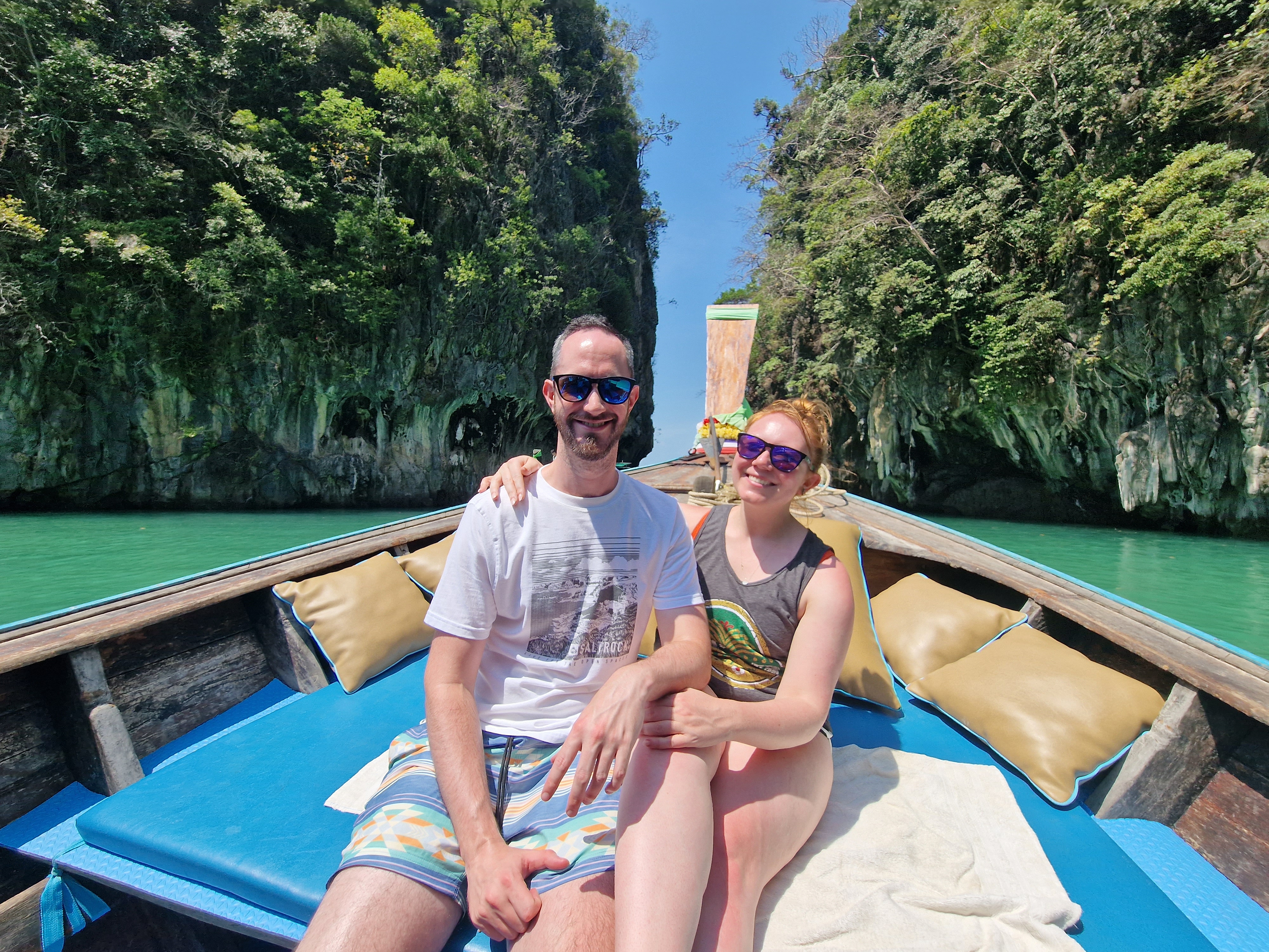 We knew we wanted to finish our trip off at the beach, and for weeks we couldn’t decide between Krabi or Koh Samui. As we know more people who’ve done Krabi who could therefore give recommendations, we chose there. Specifically Ao Nang beach. We enjoyed a McDonald’s breakfast at the airport (no change in the menu) and it was only when we boarded the plane, I realised I’d forgotten to request seats together. So poor Mark ended up next to a gentleman who had his shoes and socks off, and rested his actual bare foot on Mark’s leg. We got off the plane and onto the bus for the shortest journey from the plane to the terminal I’ve ever had in my life. After we got our bags, we hopped in a taxi and drove to our hotel for the next 4 nights. As it was still really early, our room wasn’t quite ready yet, so we set up camp next to the pool. A man came over to have a chat (who turned out to be a Newcastle fan) and offer some advice of the area. It was all going so well, until he started boasting about a trip he went on where he was told to wear a life jacket, to which he told the guide, I don’t need to wear a life jacket because I can swim better than you all put together. I totally lost interest at this point..