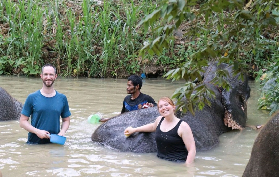 That evening we got back quite late and both us were feeling a bit unwell. We hadn’t actually eaten that much all day so thought maybe it was that, but unfortunately for Mark, a fever and vomiting set in.. We hoped after a good night’s sleep we would be feeling better, but the nausea was still there and we couldn’t face any breakfast either. This morning we had planned a Thai massage, but that was very quickly sacked off in case we vommed on the poor masseuse. The one thing that couldn’t be sacked off was the Elephants. We were keen to pick a sanctuary that cared for elephants well and luckily there was one very close to where we were staying. We arrived and met the Mahouts who care for them, we had a talk about the Elephants and the work they do, and then it was time to meet them 🥰 we fed them bananas and made them protein balls. We took them to the mud spa which is great for their skin it was incredible to get up so close to them. Despite us both feeling so sick throughout the whole thing, it was a fantastic experience and one we will both remember.