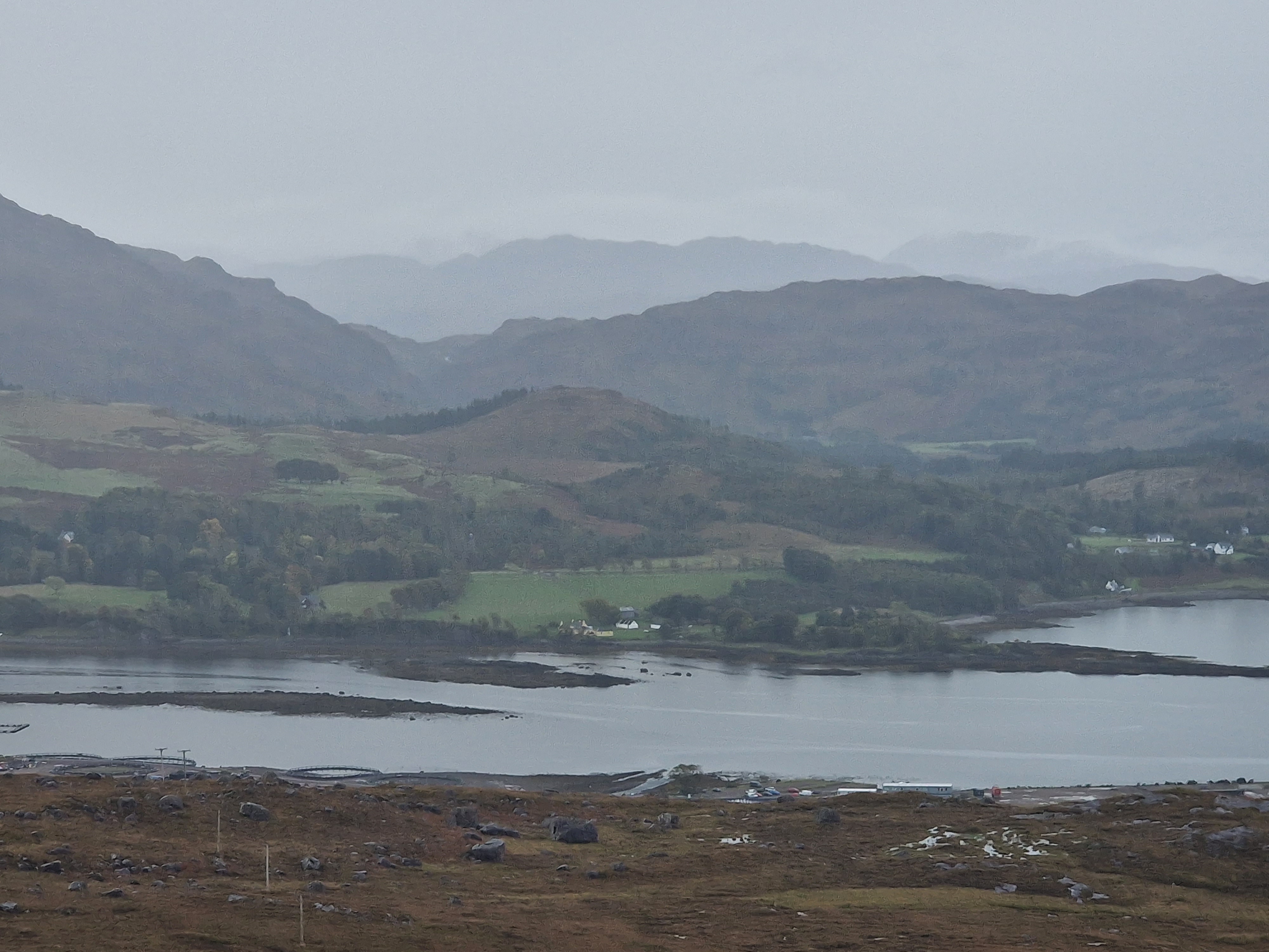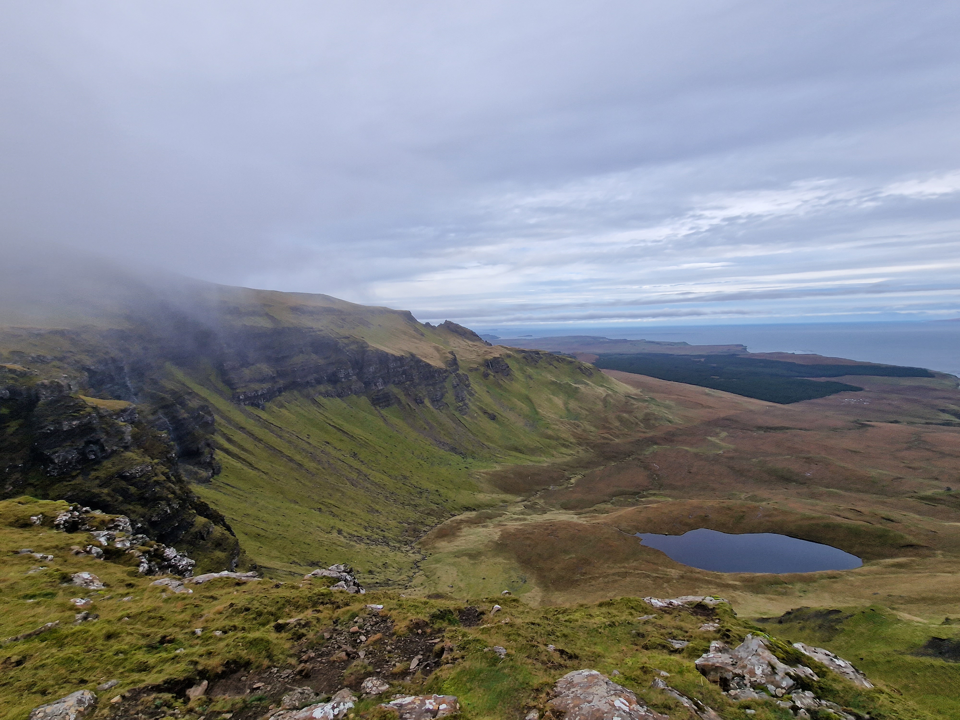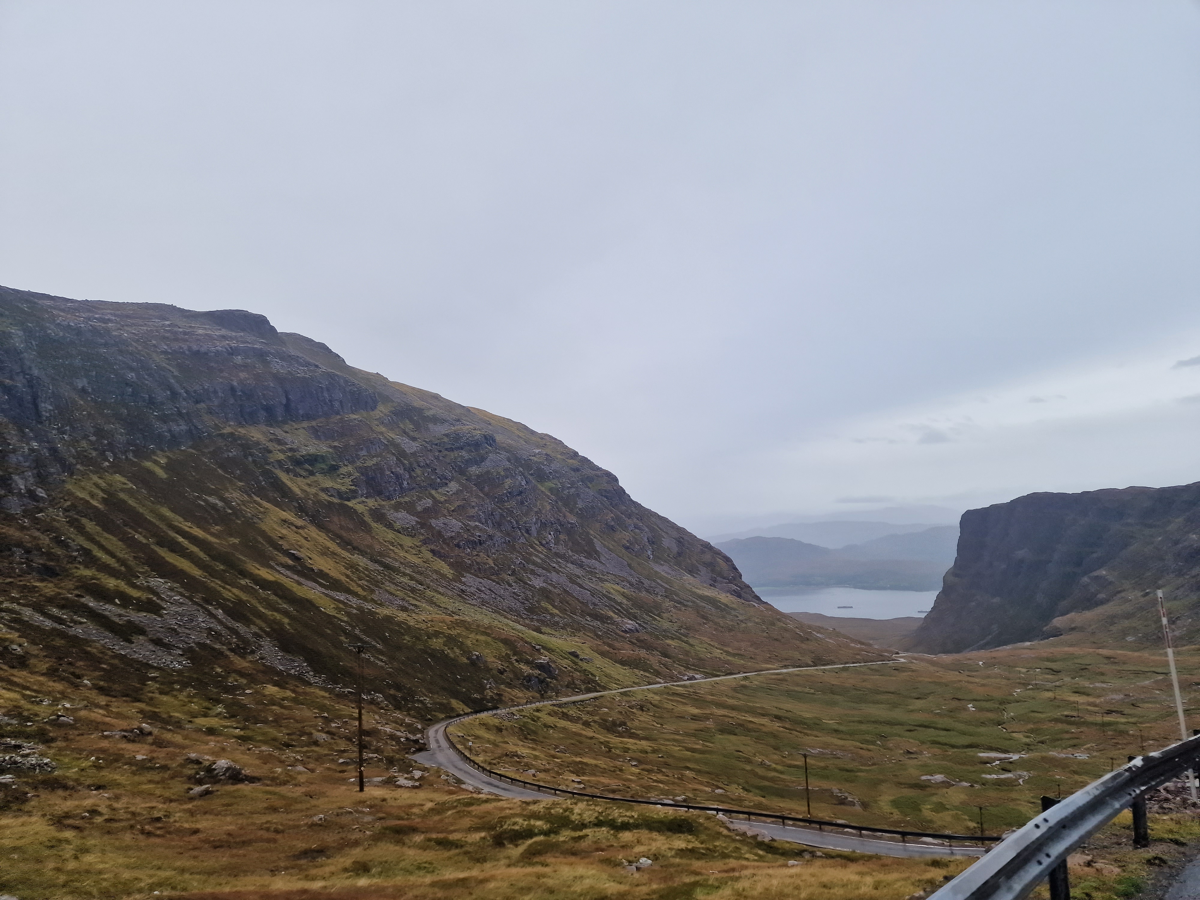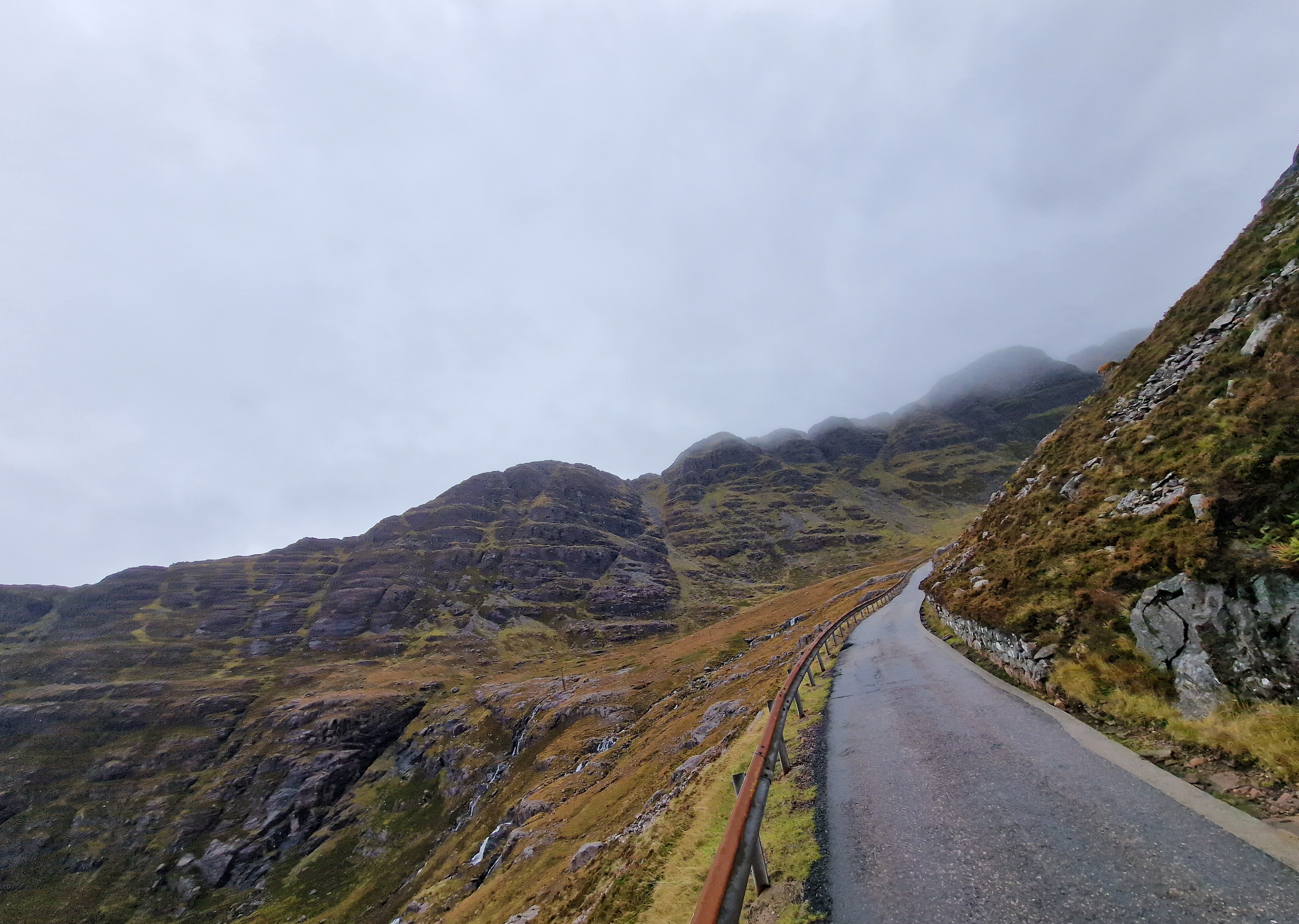 The Quiraing This was meant to be one of the hikes we did, however today the weather was even worse than yesterday. Due to the uneven ground and steep sections, a lot of reviews on AllTrails (and other websites) suggested that you don’t attempt this in adverse weather unless an experienced hiker. So… as we are absolutely not that, we thought we would try the viewpoint instead. This is one of the most photographed places on Skye, but unfortunately we just didn’t have luck on our side, and by this point, a small stream was also forming on the roads. Instead, we got a coffee and a bacon roll from the van at the car park (we were his first customer) whacked the heating on, and gave up on waiting for any of it to pass.