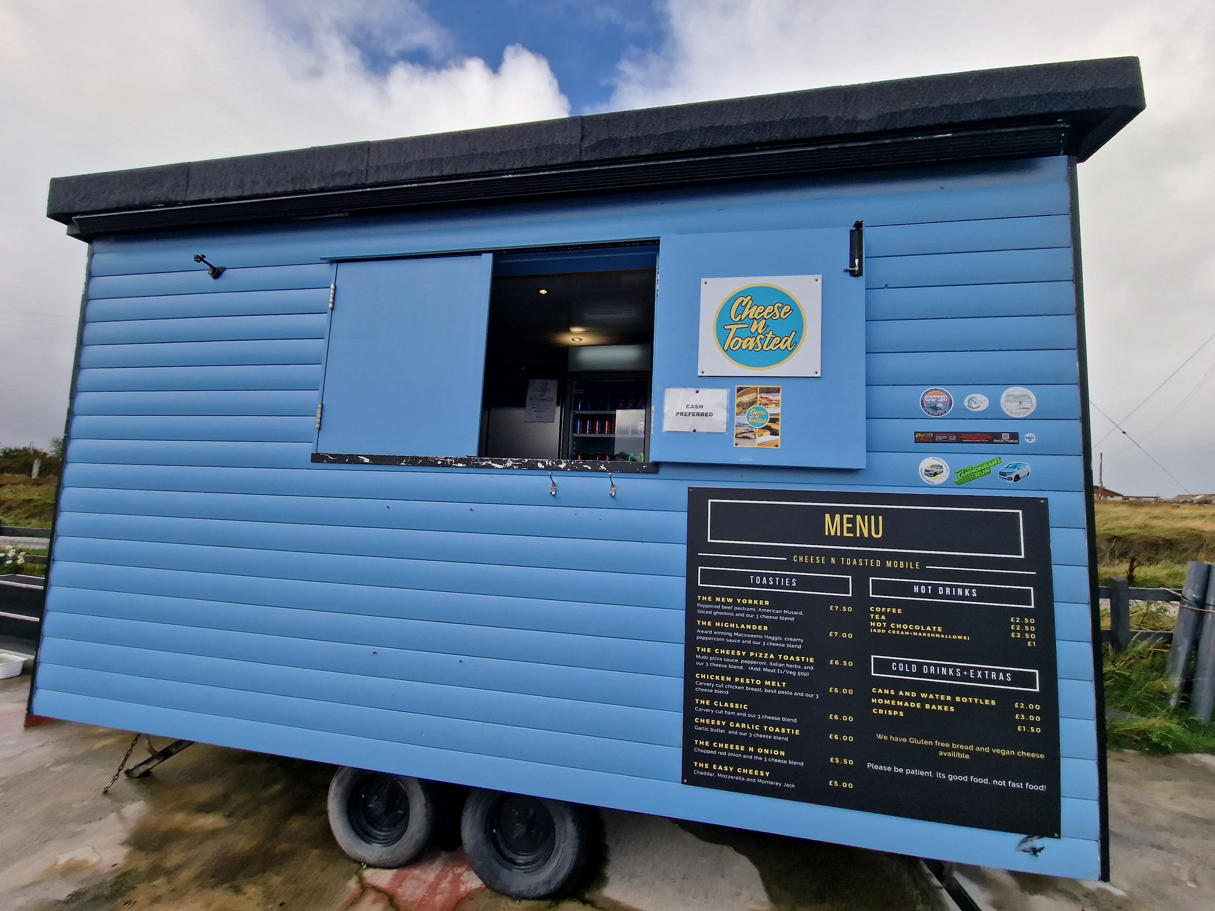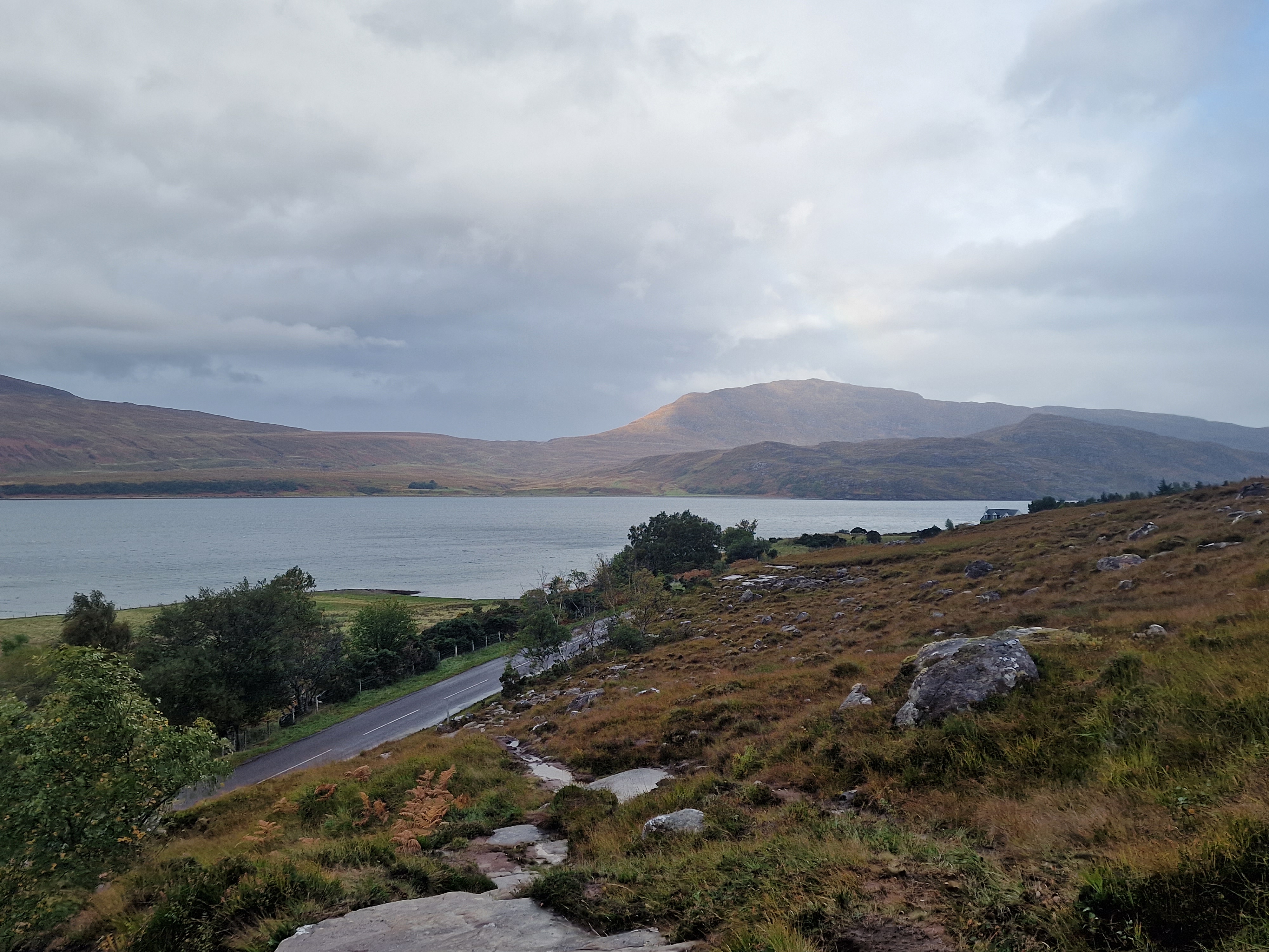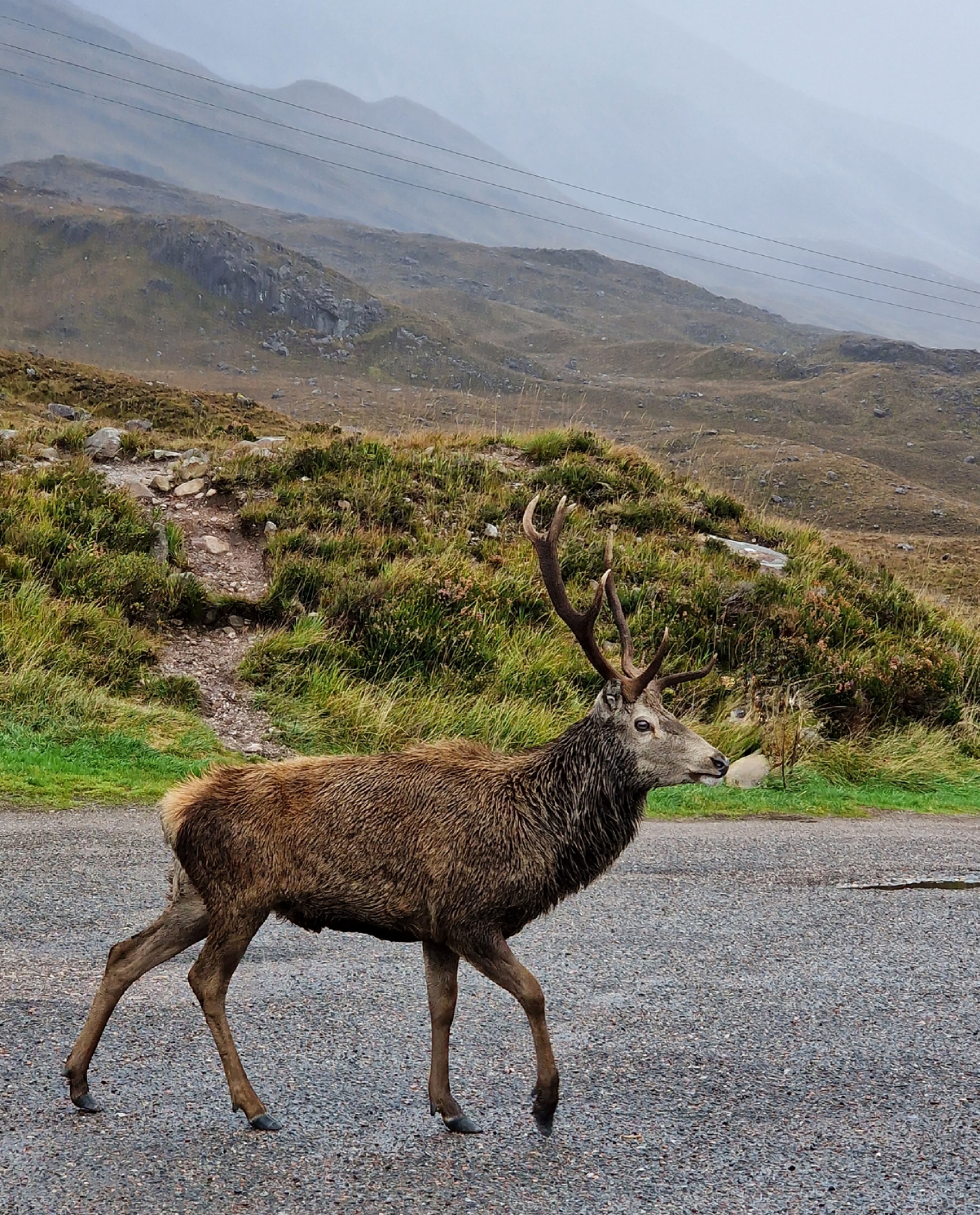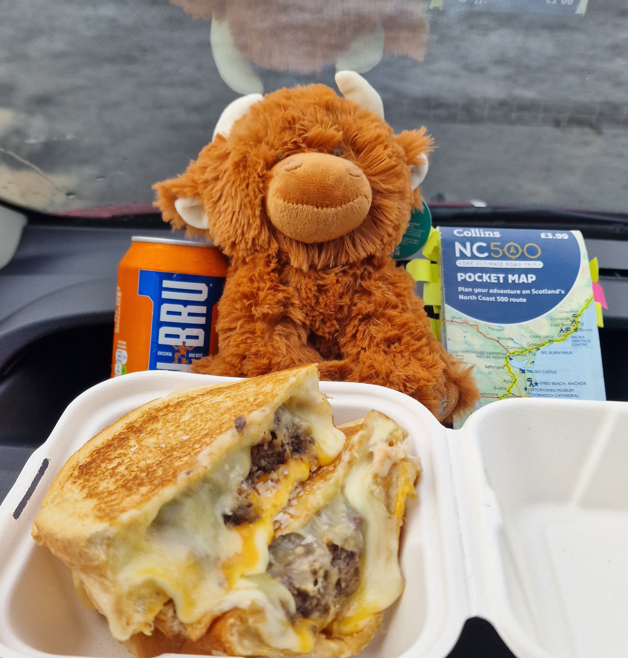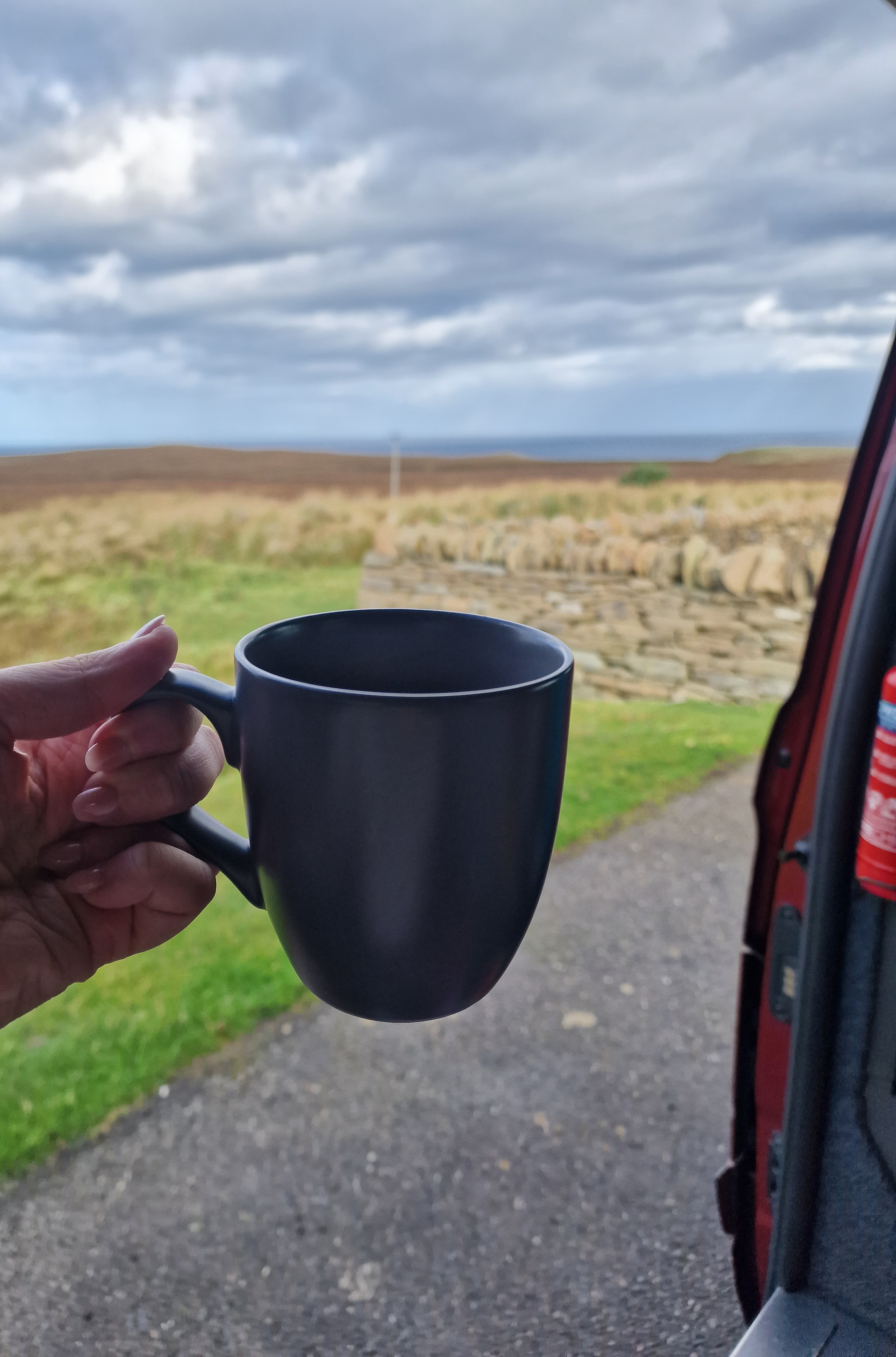 The Quiraing This was meant to be one of the hikes we did, however today the weather was even worse than yesterday. Due to the uneven ground and steep sections, a lot of reviews on AllTrails (and other websites) suggested that you don’t attempt this in adverse weather unless an experienced hiker. So… as we are absolutely not that, we thought we would try the viewpoint instead. This is one of the most photographed places on Skye, but unfortunately we just didn’t have luck on our side, and by this point, a small stream was also forming on the roads. Instead, we got a coffee and a bacon roll from the van at the car park (we were his first customer) whacked the heating on, and gave up on waiting for any of it to pass.