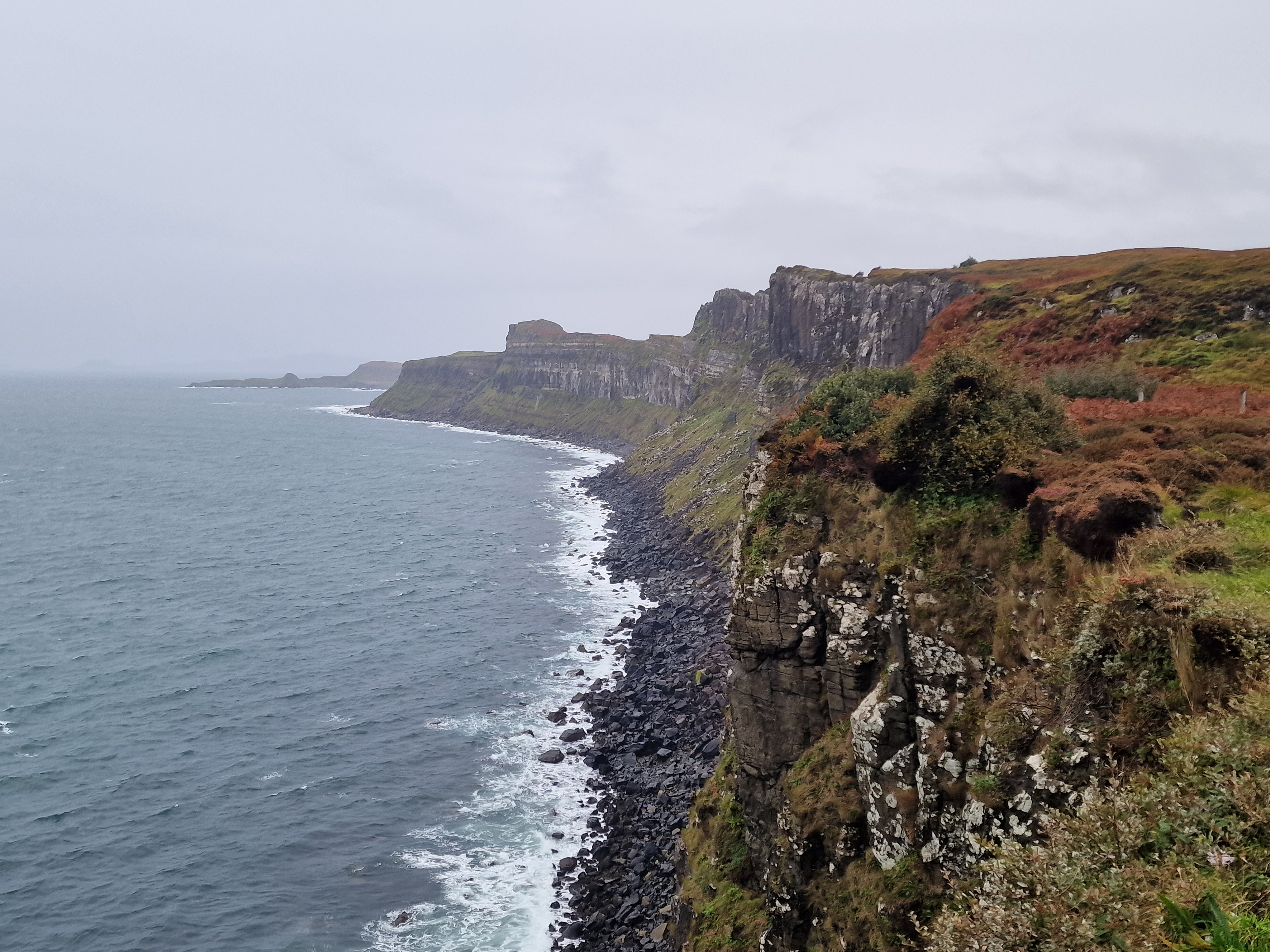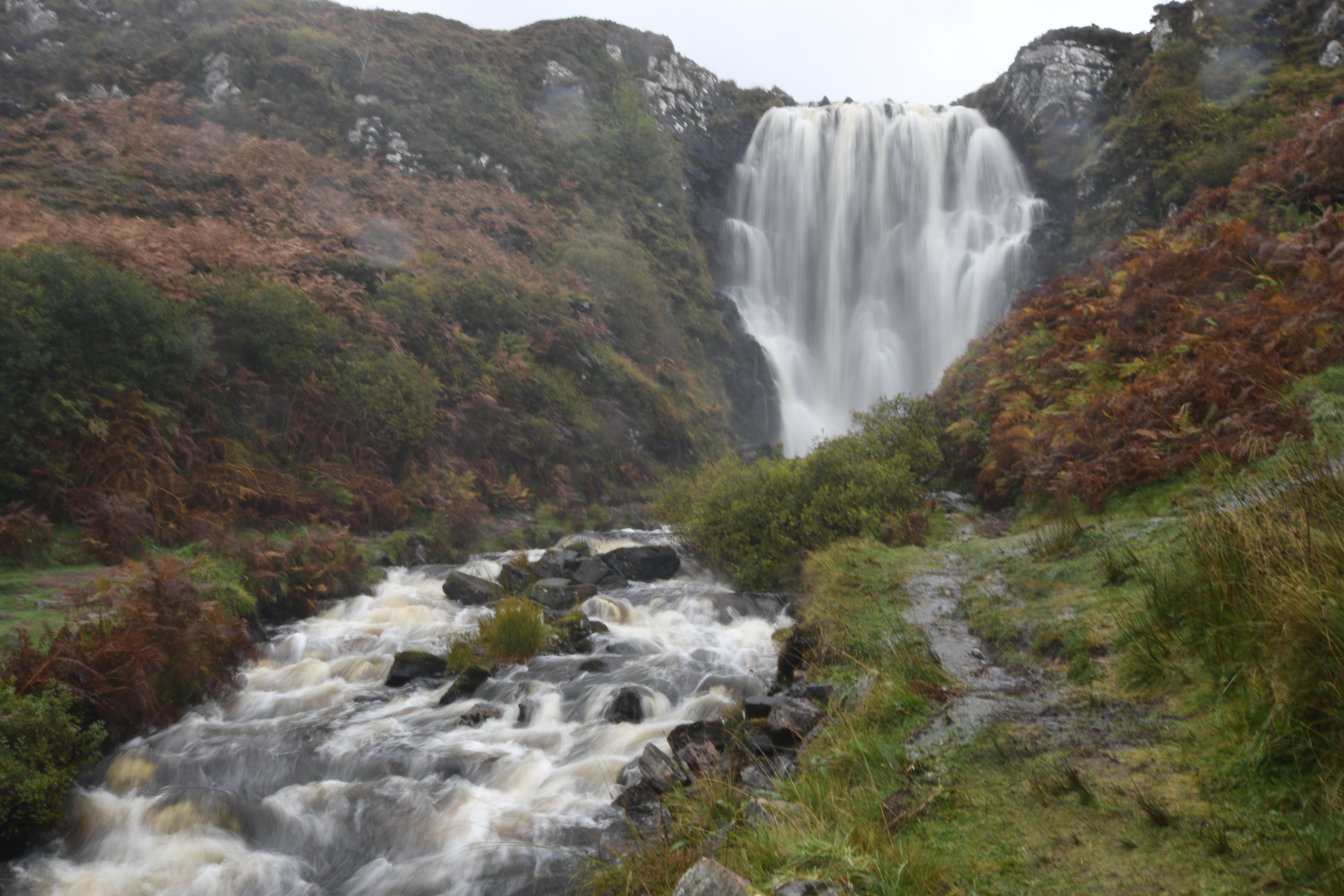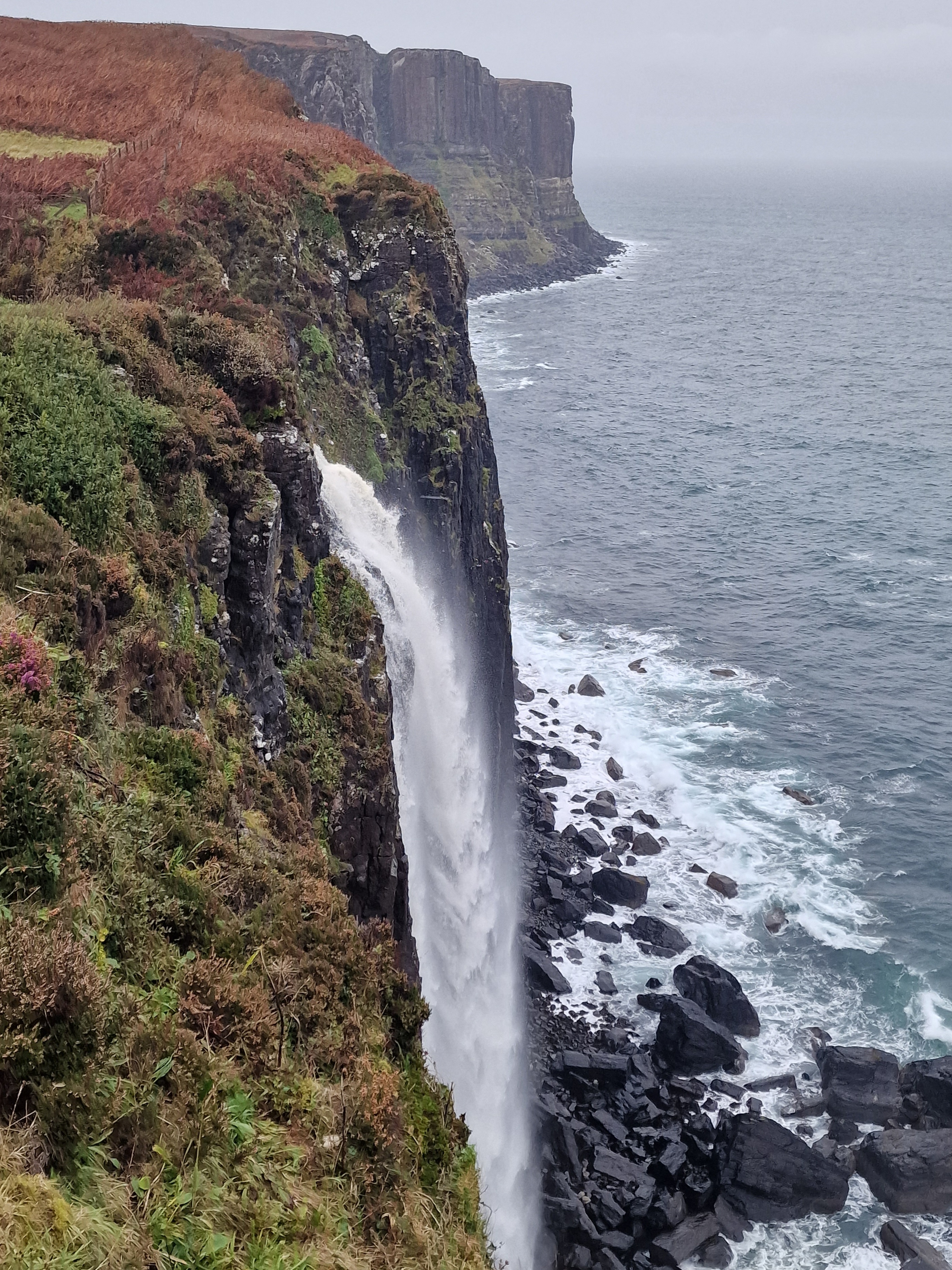 Lealt Falls & Kilt Rock And that was where the good weather ended. It continued to rain for the rest of our time of Skye. One good thing about Skye is a lot of the waterfalls are easily accessible. You park up and walk to a purpose built viewing area. Both of these falls offer just that, and are definitely ‘must swing by’ falls. Lealt waterfall crashes into Lealt gorge and is surrounded by rugged terrain. Kilt rock is an ancient cliff resembling a kilt, with Mealt waterfall plummeting from the top of the cliffs to the rocky coast below.