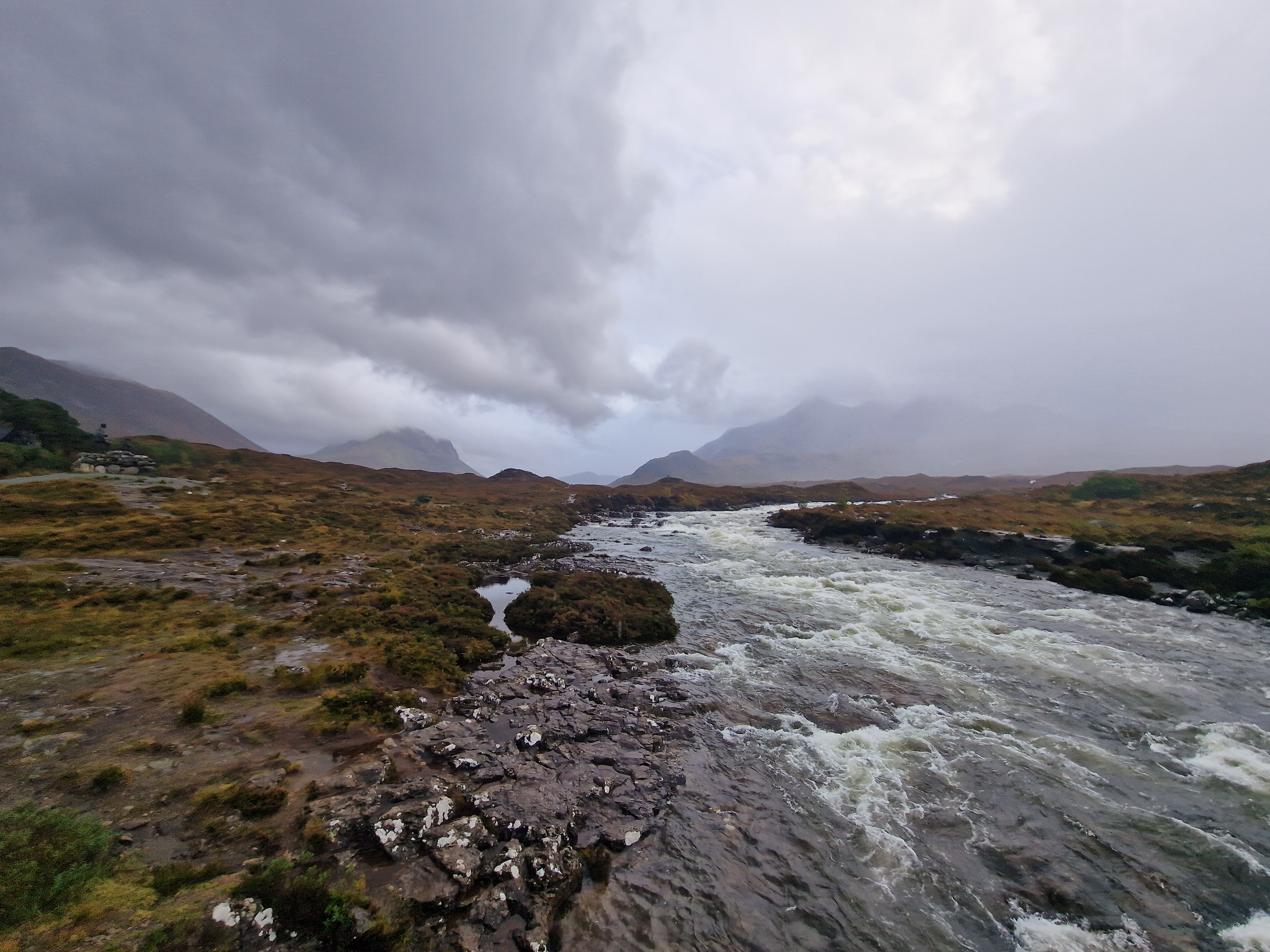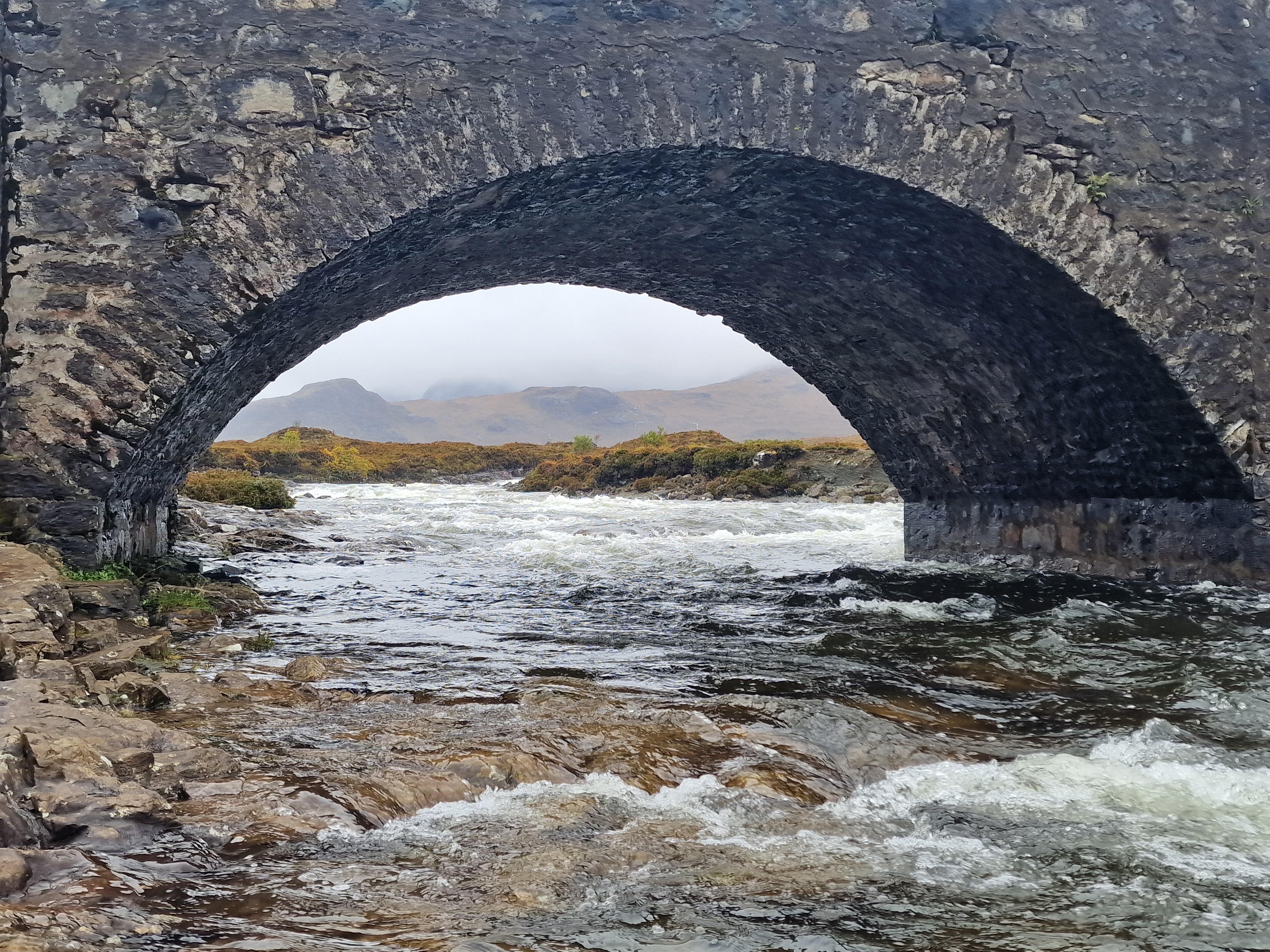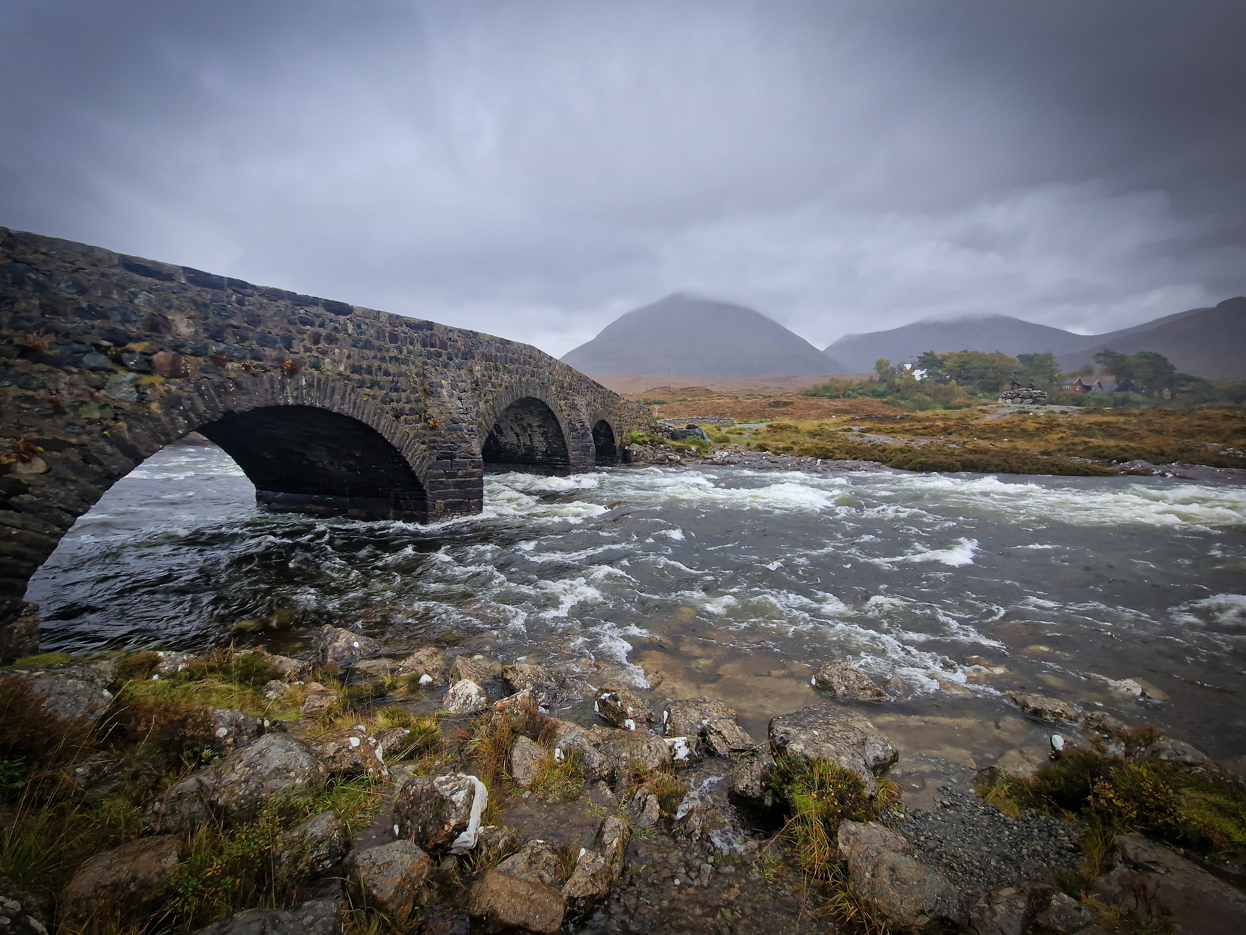 Sligachan Bridge We had stopped here yesterday for a walk around, but it was so so busy. Luckily, the car park and the bridge itself were now empty, so we parked up and had another look. It was now only drizzle rather than torrential rain.. hooray! The legend of Sligachan states that if you dip your face in the river water by the bridge, you will be granted eternal beauty. Knowing my luck, I’d fall in, so as tempting as this sounded, I decided to give the dipping a miss. The bridge is surrounded by mountains in the distance, and the weather makes it more atmospheric. When the water level is low and the sky is clear, you are able to get a really cool framed mountain shot through the arch of the bridge. There is a campsite here, but unfortunately, it closed for the season on Sept 30th. There are so many amazing photography opportunities here, so it’s really worth stopping, whatever the weather!