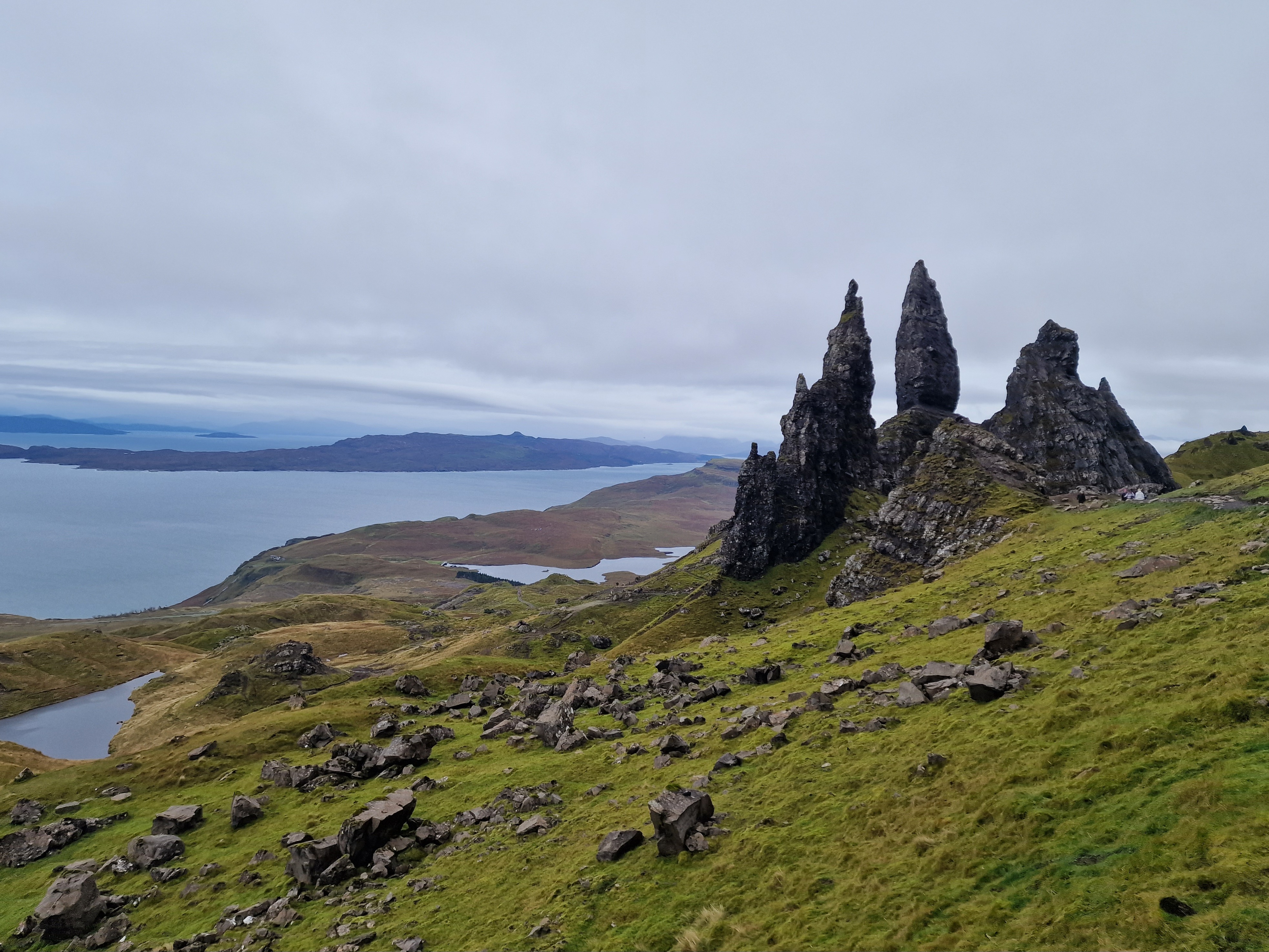 The Old Man of Storr This was one of the walks we were both really looking forward to, and luckily the rain has stopped and the skies were clear. One of my favourite things to do on a hike is to look at what other people are wearing. My favourites from here were hotpants with knee high boots, ankle boots with a heal (she had to have people either side to help her down) and pyjamas 🤷🏼♀ The Old Man of Storr is an iconic landmark on the Isle of Skye, with a towering pinnacle of rock perfectly set among the landscapes of the Trotternish Peninsula. The hike is a steady slog straight up the side of a hill, and due to the amount of food I’ve been consuming this past week (I’ve definitely put on a stone) I had to have regular stops just to catch my breath! There are so many photography opportunities here, and each turn just gets better and better. The rock formations are enormous and impressive, and the views out to the lochs, mountains, and surrounding islands were incredible. We really were so lucky with the weather!