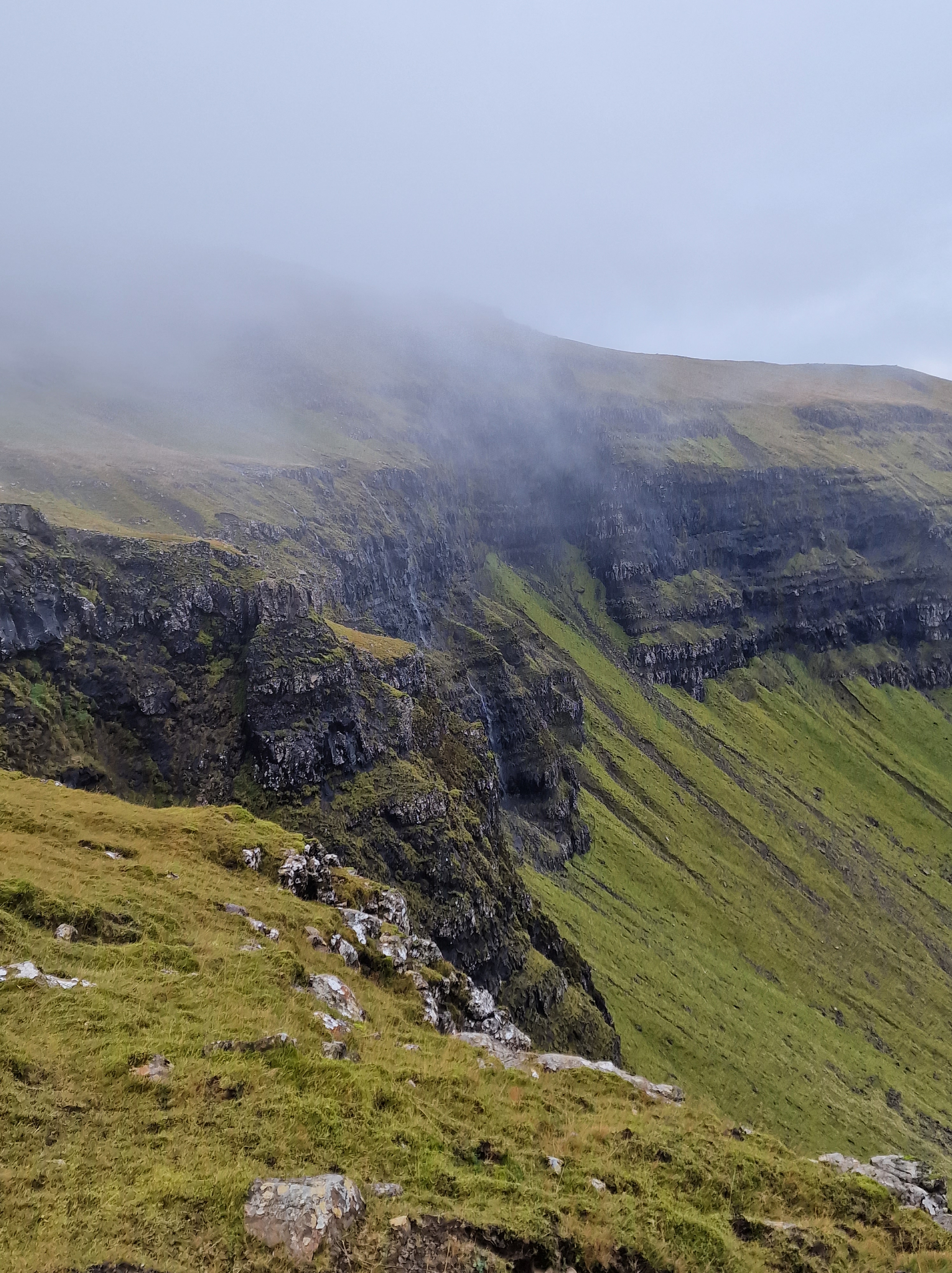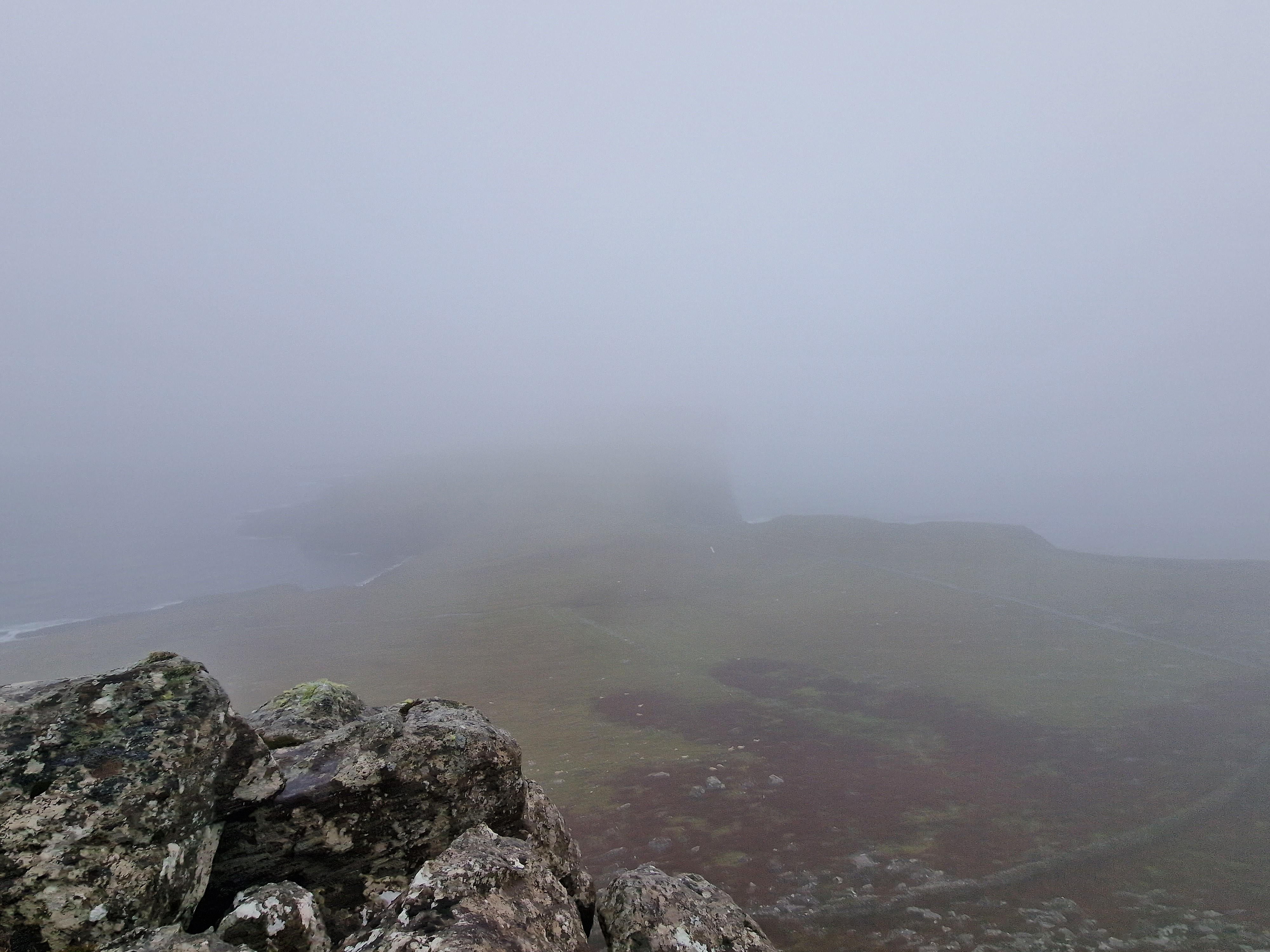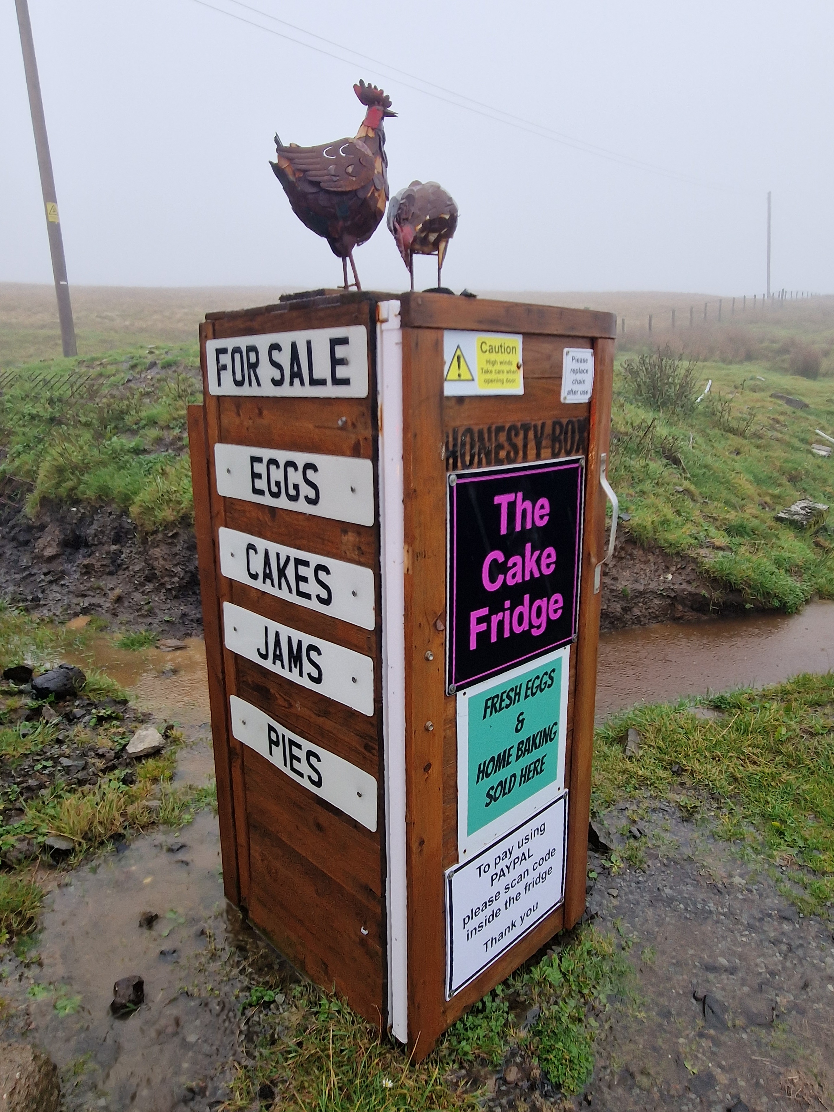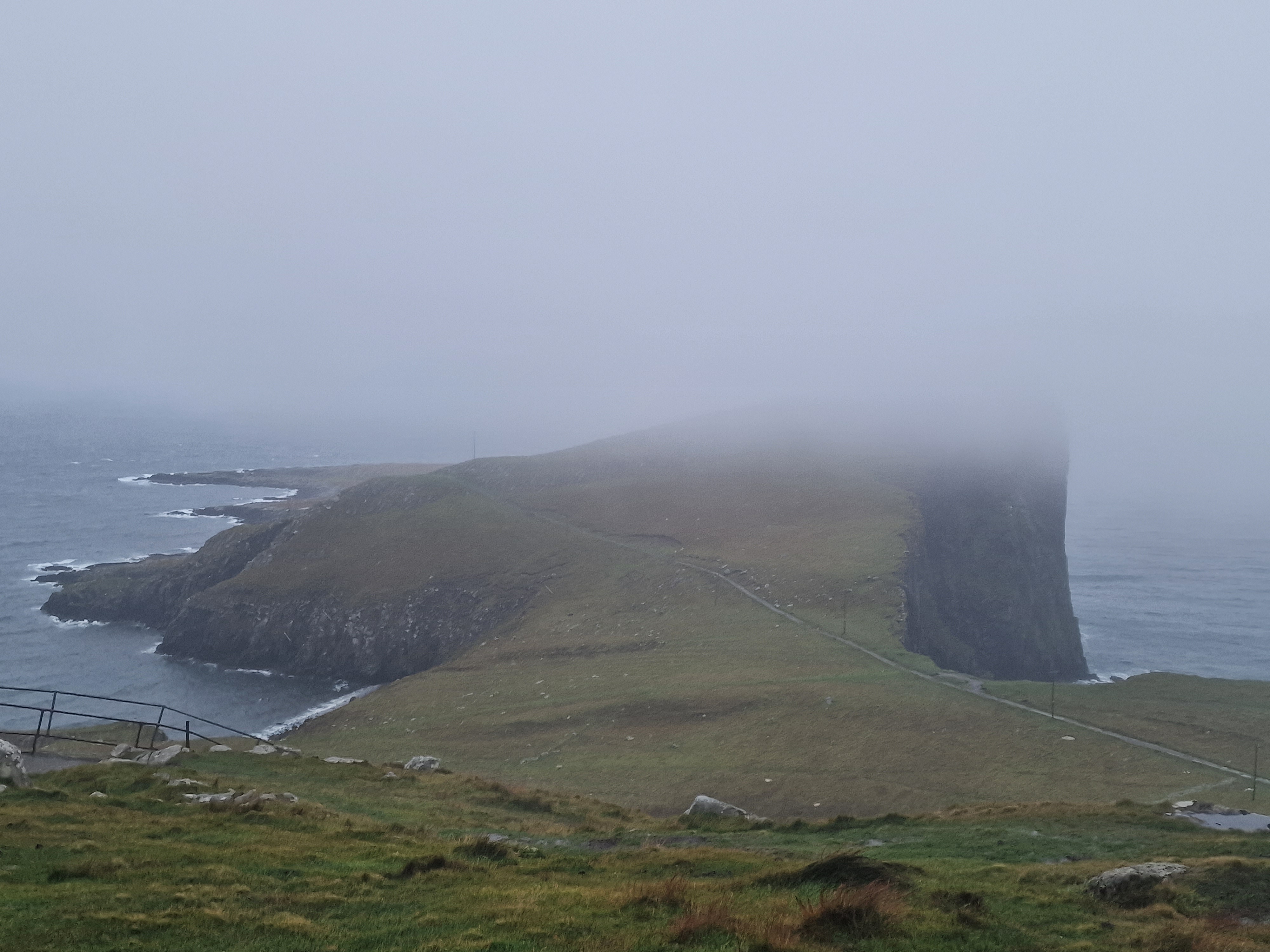 Neist Point The road here towards the end was absolutely terrible and full of pot holes, and the car park was rammed with badly parked cars. When we arrived we were greeted with heavy rain and thick, thick fog.. I left Mark in the car whilst I popped out for a look, with everything crossed that the fog at least would lift. However.. that wasn’t to be the case. The round trip walk down to the lighthouse was around 2 miles, and I was really conscious that we were booked in for a tasting at Talisker later that afternoon. There was, however, a cake fridge at a house by the car park! So to try and cheer us up, I got a lemon and a coffee and walnut slice.