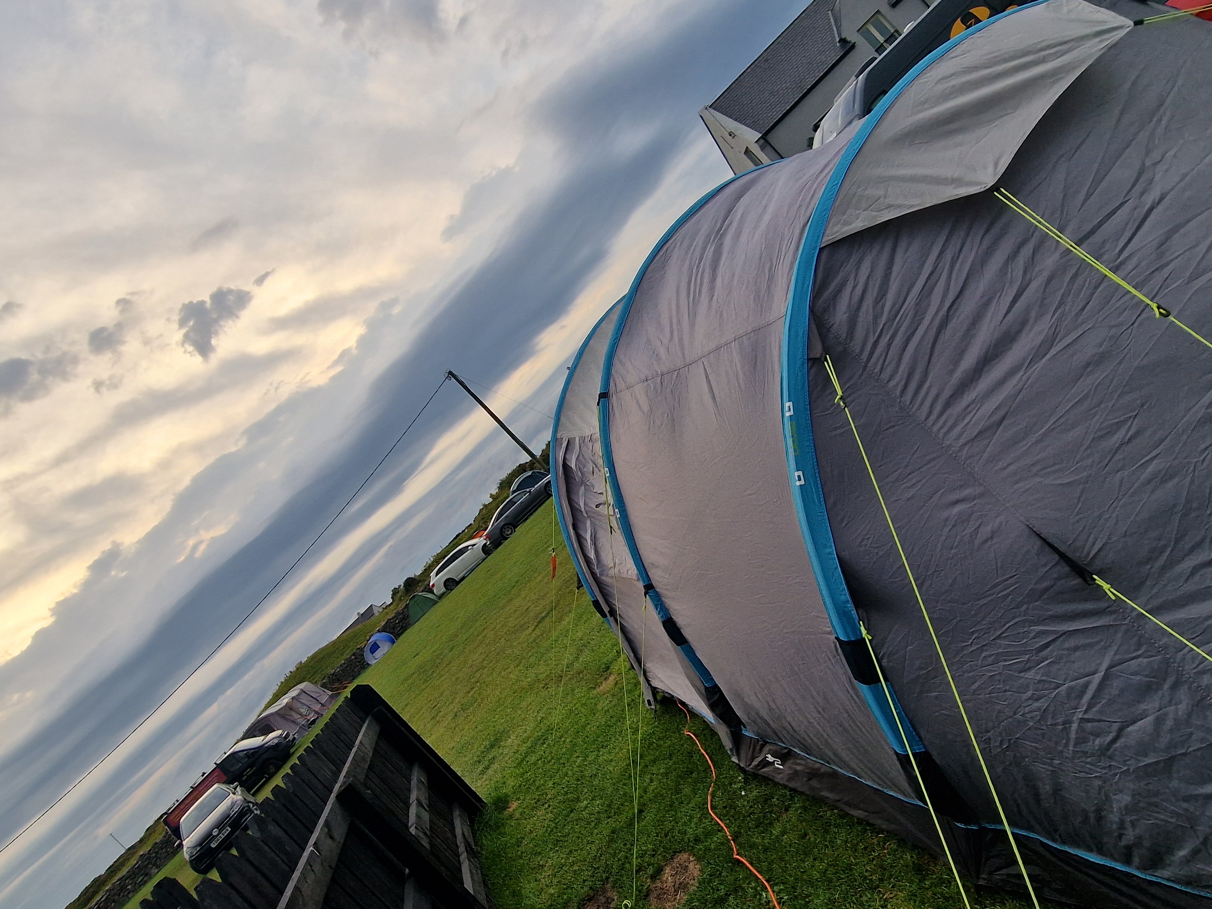 After leaving Galway, we headed to Rosses Point, where we would be staying for the next two nights. The campsite was much larger than the one we had just left, and since we booked late, we ended up with a pitch that had no shelter from the wind. Fortunately, it was a beautiful evening, and we erected the tent quickly. This left us with plenty of time to take a leisurely stroll to the beach with a drink and watch the sunset, as well as observe some brave souls taking a swim at Deadman’s Point (the name alone was enough to keep us on the shore!). Just as we were preparing for bed, I received an alert on my phone informing me that the Aurora was going to be visible that night. I’ve been fortunate enough to see it a few times before, but I figured one more time wouldn’t hurt. So, we grabbed the camera and tripod and made our way through the grass to find a good spot to set up. It turned out that others had also received the same alert, and we all waited with anticipation for something to happen. Unfortunately, hunting for the Aurora doesn’t always lead to success, but the sky was filled with stars, and it was still a lovely evening, with the sound of waves in the distance. We got into bed and I was peacefully sleeping, enjoying the rare calm night with hardly any wind or rain. Just when everything seemed perfect, at 4am I was rudely awakened by the sensation of sinking onto the cold, hard ground. Turns out, our airbed had completely deflated! Ah, the joys of camping!