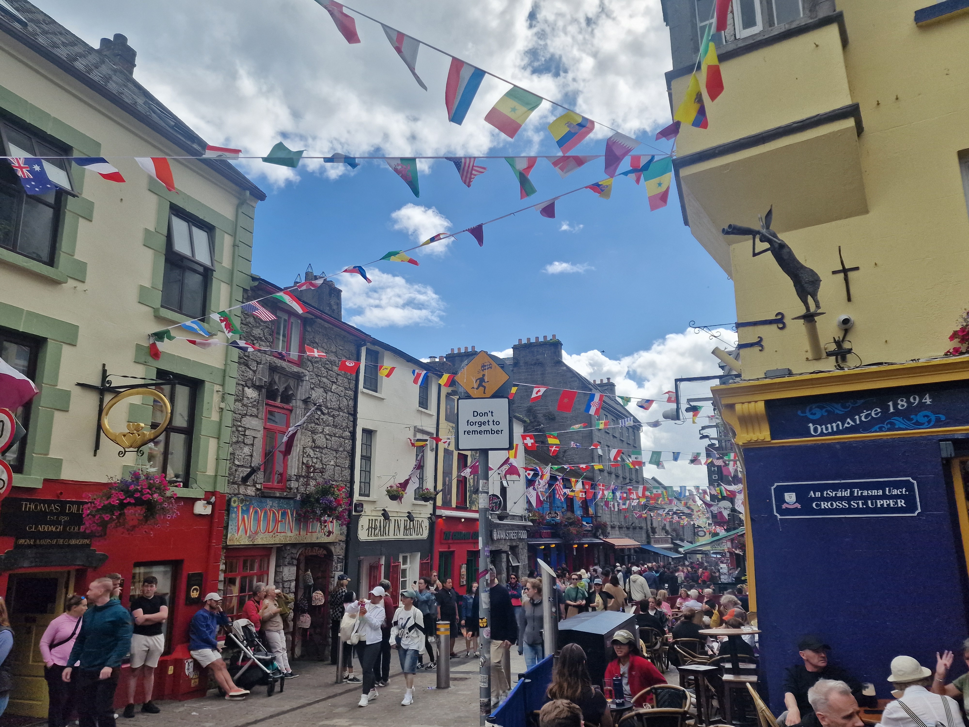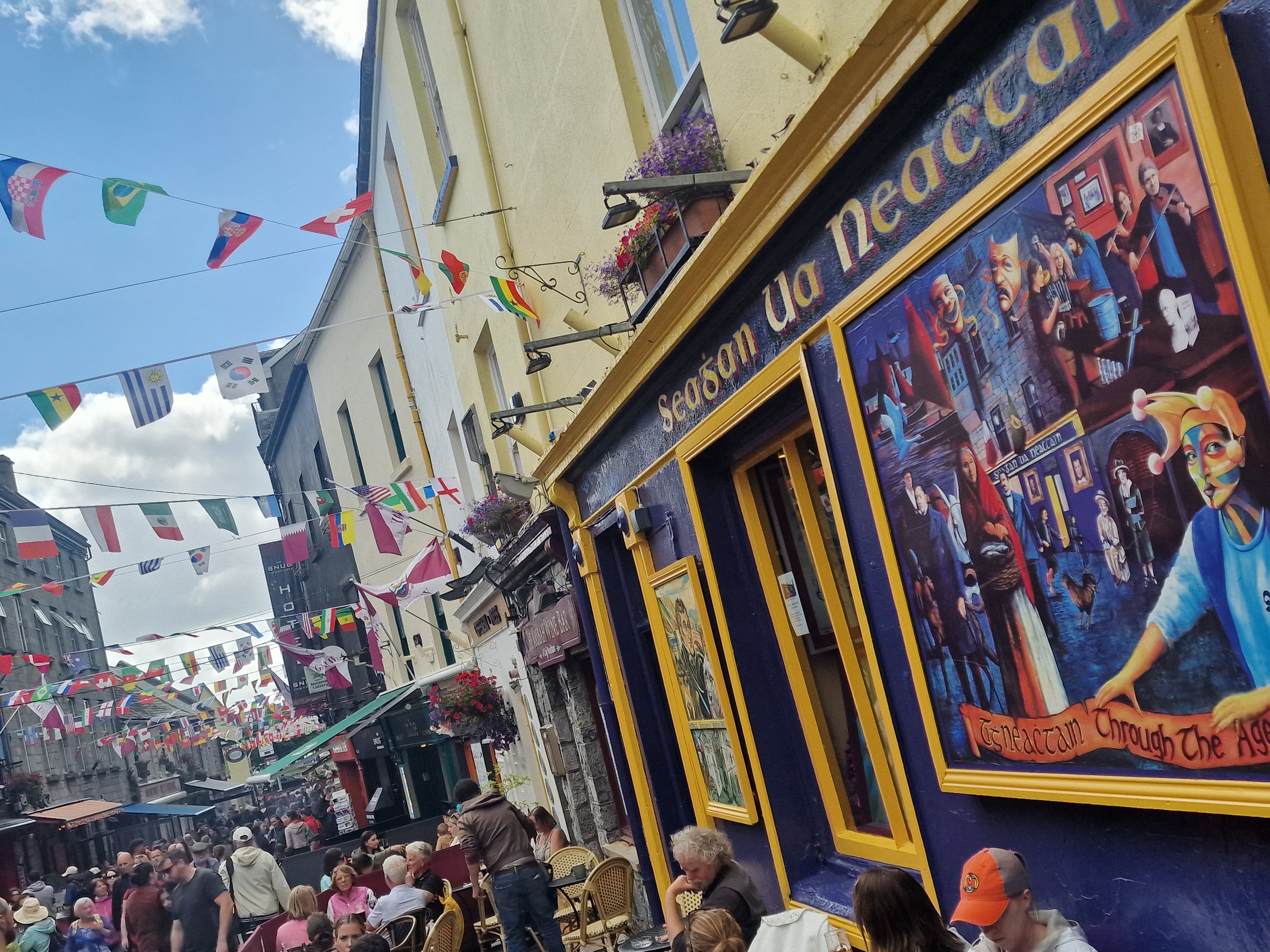 We both really wanted to visit Galway, but the long drive from Doolin, and then the long drive to Rosses Point, meant we had only a few hours to explore. Unfortunately, due to how busy Galway was, we spent a lot of time trying to find somewhere to park. However, we did manage to find a parking space at the tightest car park at Spanish Arch. I was desperate for a wee, and decided to relieve myself in the museum toilets. I never understand why women don’t lock the door, and then have a massive strop at you for opening the door on them when they are mid flow. To make things worse, she was also bent forward, so not only did I disturb her, I also gave her concussion. After getting away from the angry toilet lady, we got straight into the hustle and bustle of the Latin Quarter. Picture vibrant, colourful buildings, cobbled streets, buskers, boutique shops and quirky bars. If we had time, I would have loved to just sit here all day and people watch.