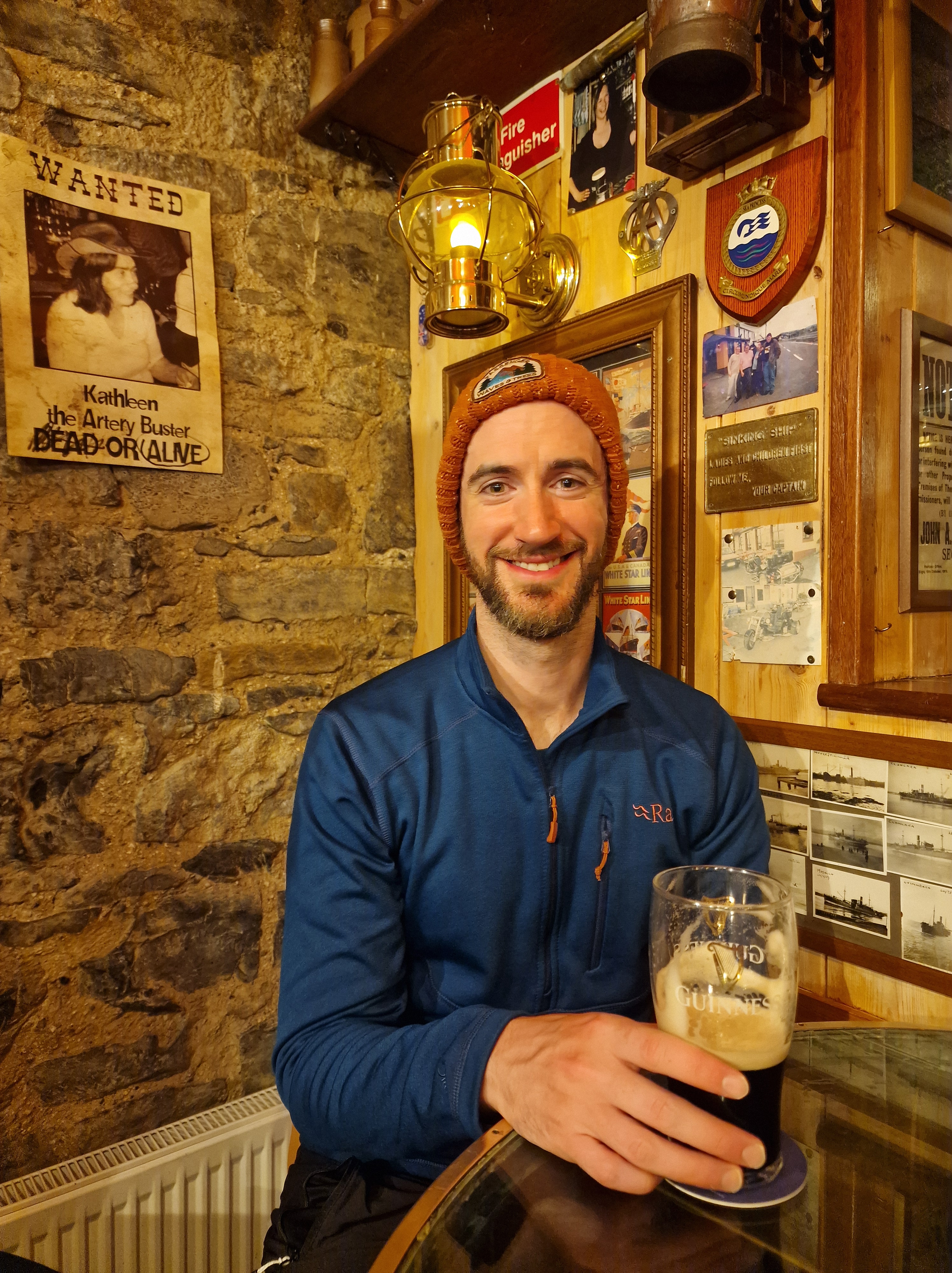 The great weather we enjoyed earlier took a turn for the worse when we returned to our tent. The classic Irish weather was back in full force – howling wind and lashing rain. We had two choices – Sit in the tent and not relax whilst the wind battered it, or head to the pub and forget about it. We took the 2nd option, and walked to Harry’s Bar. There, we had a blast listening to a traditional music session and Mark indulged in plenty of pints of Guinness. The bar was filled with all sorts of fascinating nautical artifacts, from a piece of the Cutty Sark’s rope to a hammerhead shark skull. It even housed several fish tanks scattered throughout the place. Walking back in the rain, we wondered if our tent had been blown off into the Atlantic, but thankfully, it was still standing! Mark had an lovely time cleaning his teeth while the other blokes at the campsite were dealing with the aftermath of their Guinness intake.