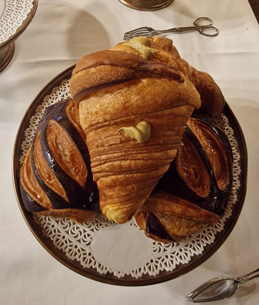 This morning we headed down for our included breakfast, and was delighted by the enormous croissants waiting for us! Santa ordered a coffee, the waiter said “espresso?” which he agreed to (because he has no idea what it is) and I thought I’d keep quiet until the thimble sized cup arrived. Following his initial confusion, he decided that actually, he rather enjoyed his espresso.