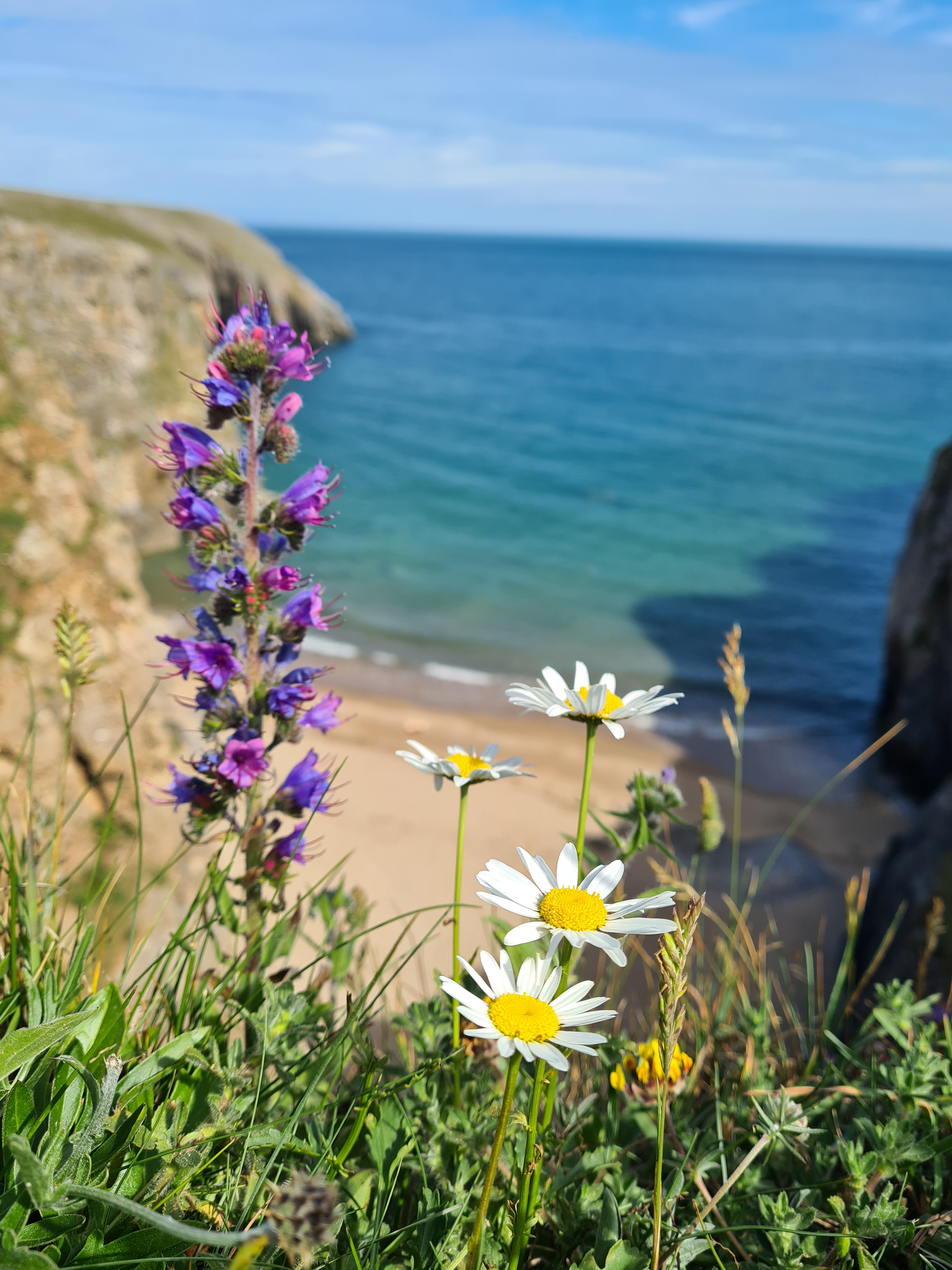 We parked at the Southgate National Trust car park and embarked on a scenic cliff top walk toward Three Cliffs Bay. The natural light was beautiful, and after about 40 minutes walking, the peaks emerged before us. The seclusion of the area, thanks to the relatively lengthy walk, added to its charm, and there were very few people around.