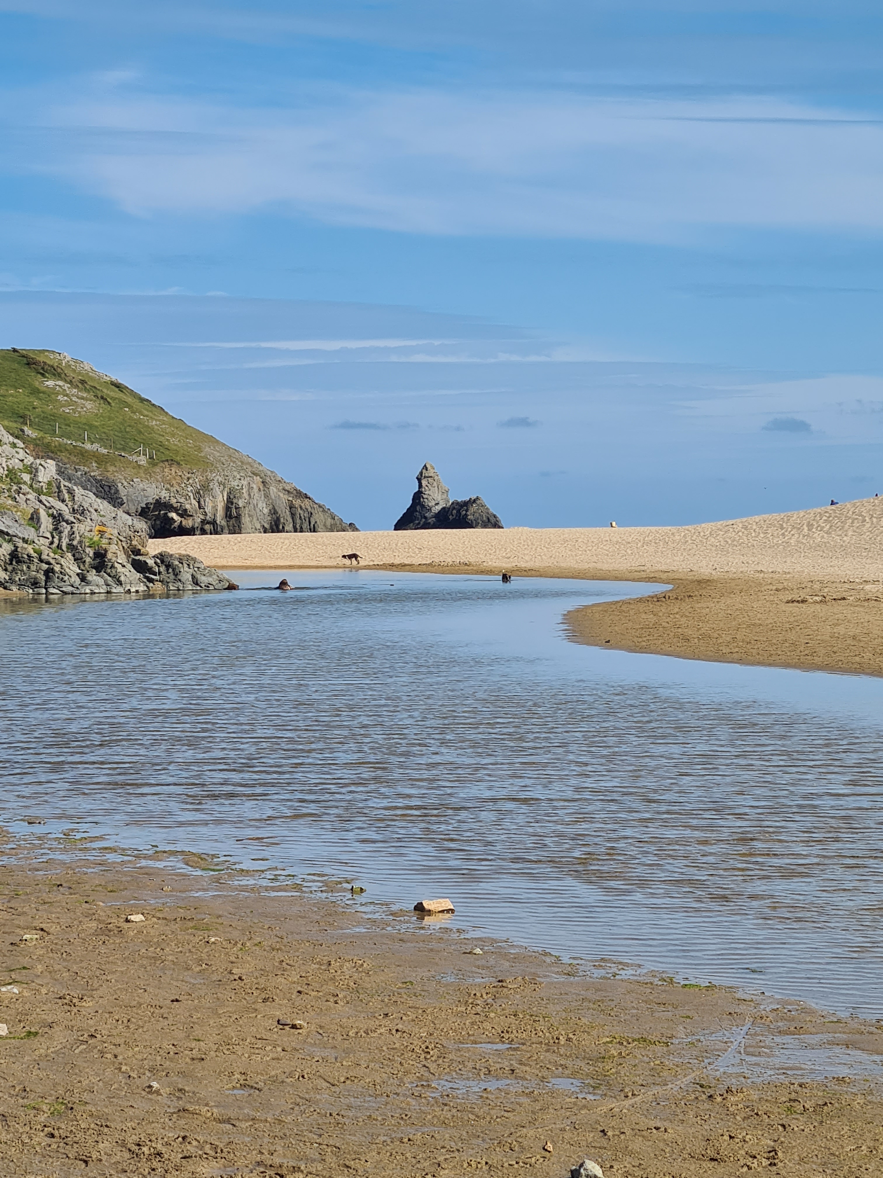 The following morning, after a breakfast at Spoons, we headed back to Three Cliffs Bay, but this time parking at Gower Heritage Centre. Here you can stock up on coffee, cake, ice cream, cider and all sorts of other treats – much needed to fuel a walk to the beach. Starting the walk from this point not only provided a fresh perspective of the beach but also allowed us to take in stunning views of Pennard Castle, and a go on the stepping stones along the way.
