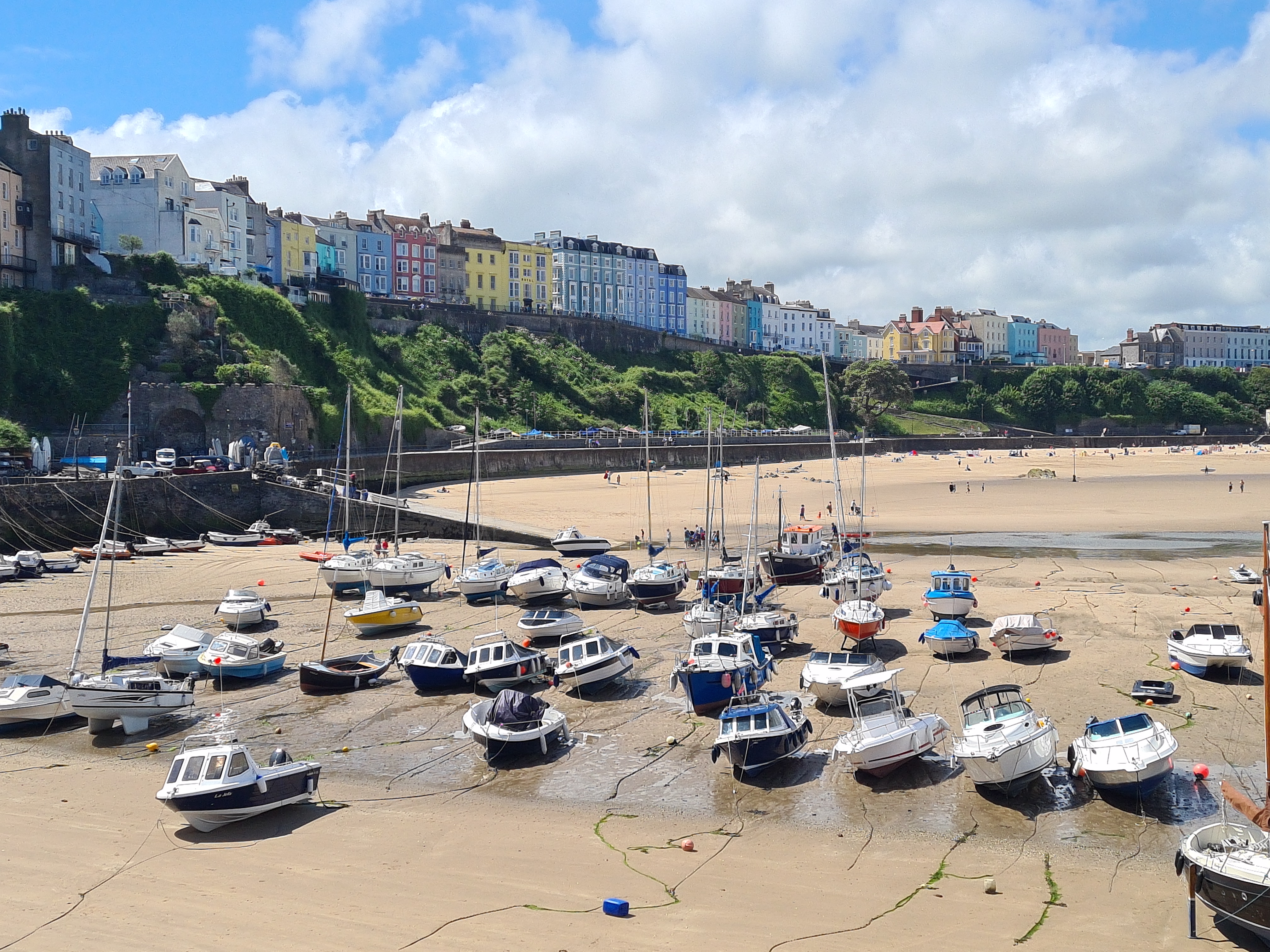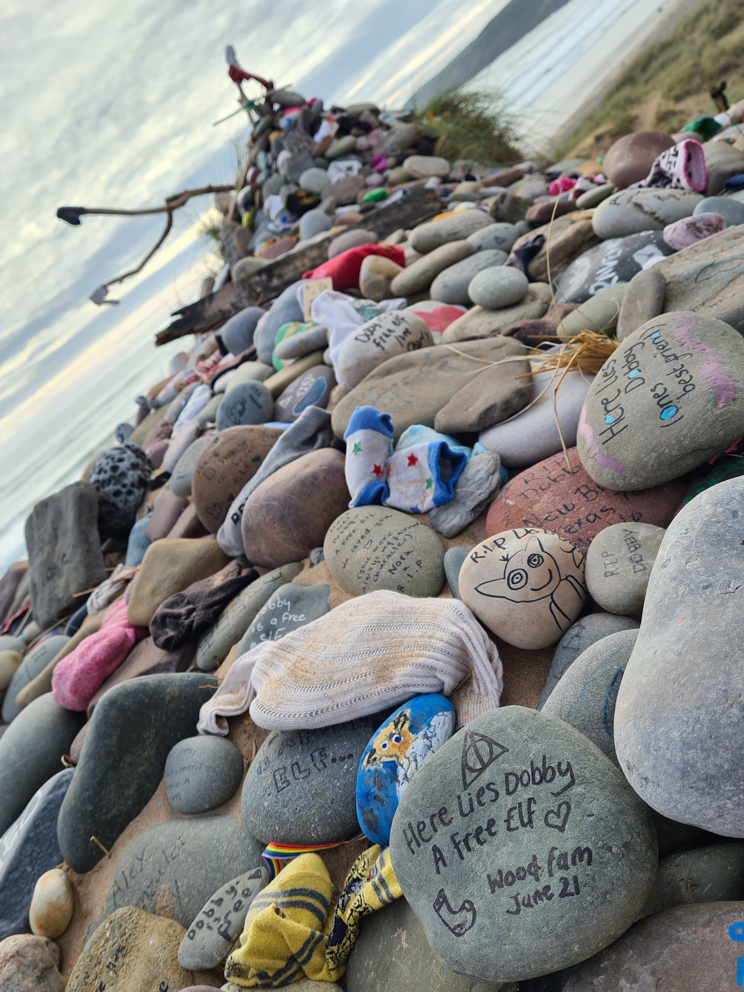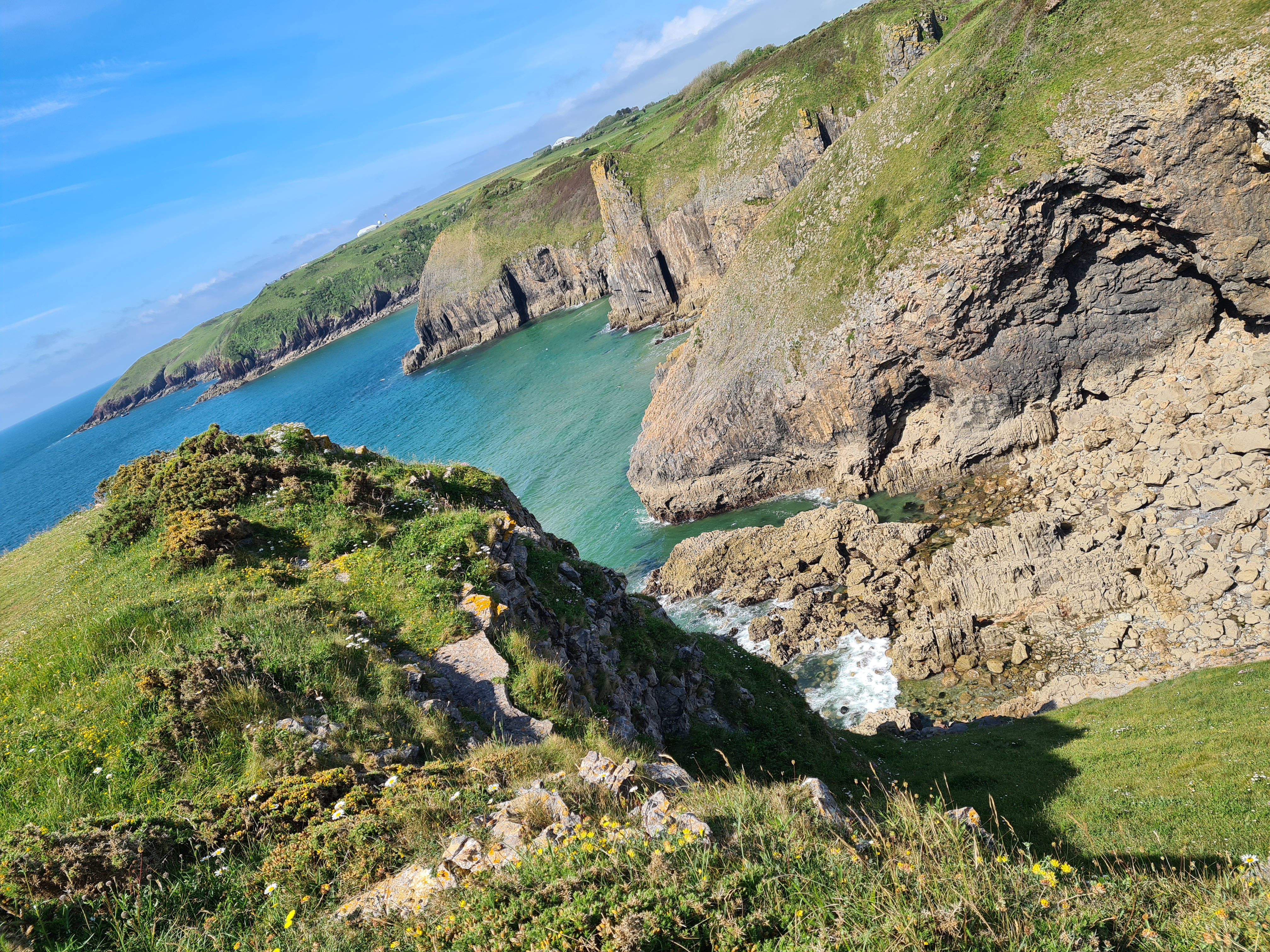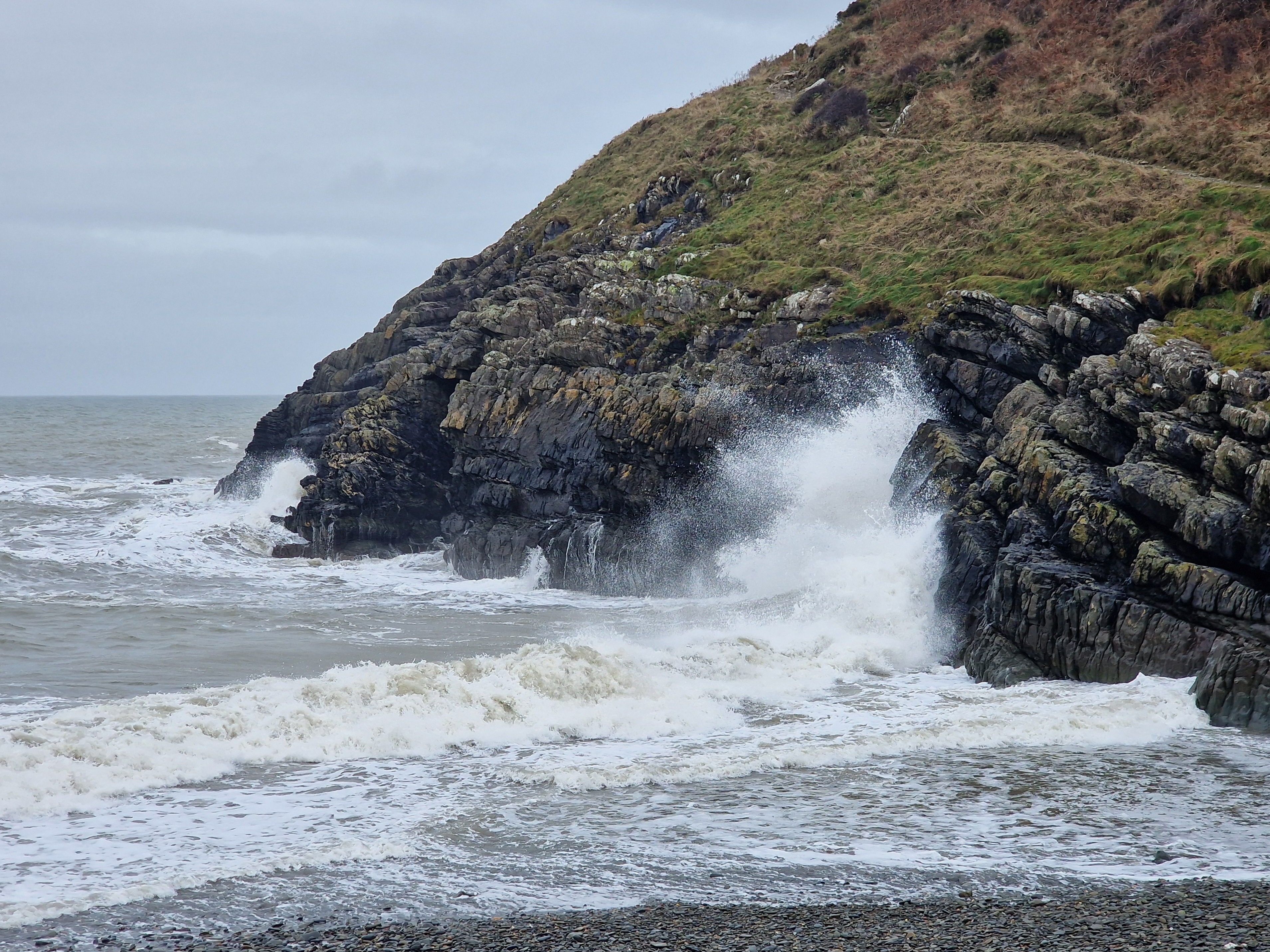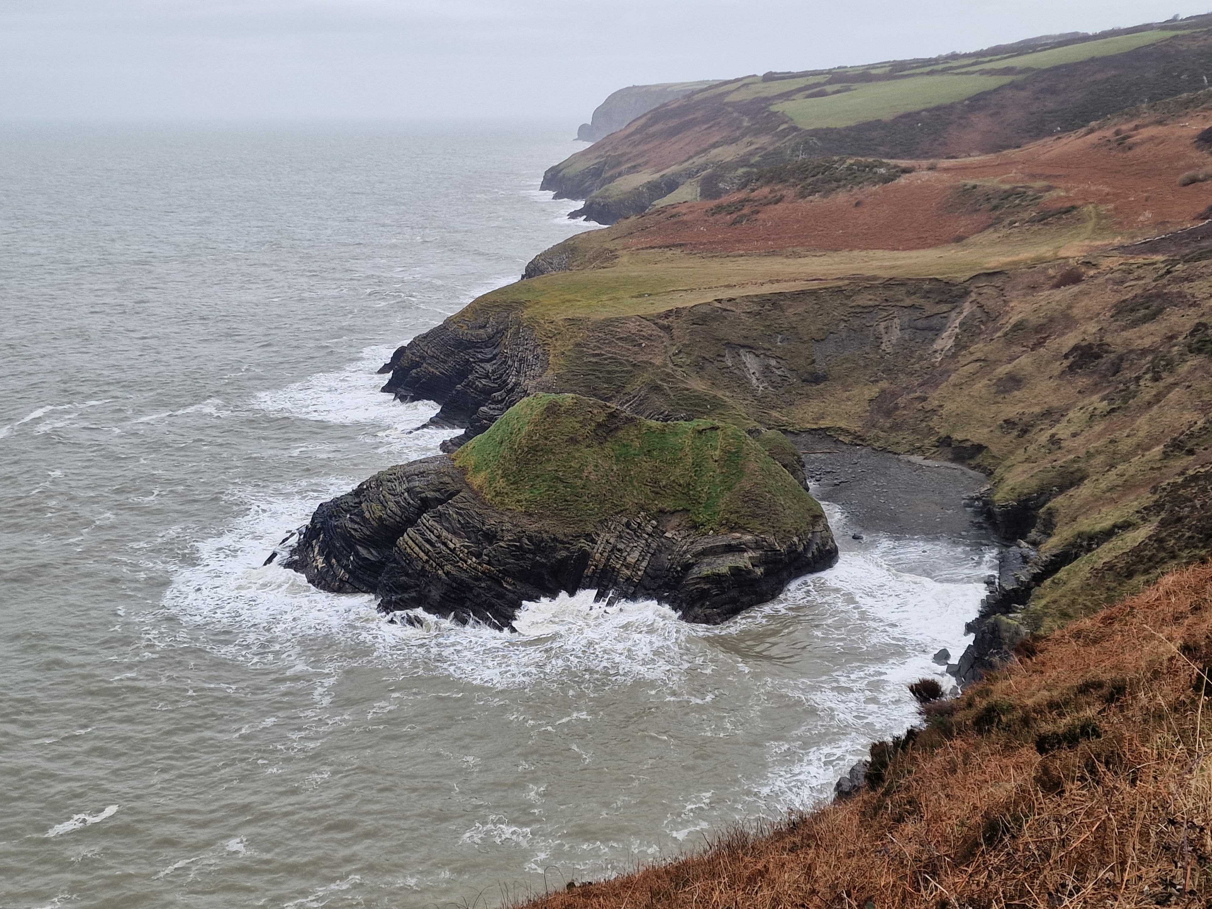 It’s backed by dunes and overlooked by 200-metre-high hills and jagged sea cliffs. There’s a large National Trust car park on the clifftop, which of course is free for NT members. As we strolled along the coastal cliffs towards the old coastguards station and Worms Head, we encountered wild horses and their foals grazing peacefully. For those who can plan their visit carefully, it’s possible to cross the causeway to the Worm, but this requires timing it within the two and a half hours surrounding low tide. Since we weren’t able to time our visit for that crossing, we took the opportunity to relax a bit and enjoy the stunning scenery in the sunshine.