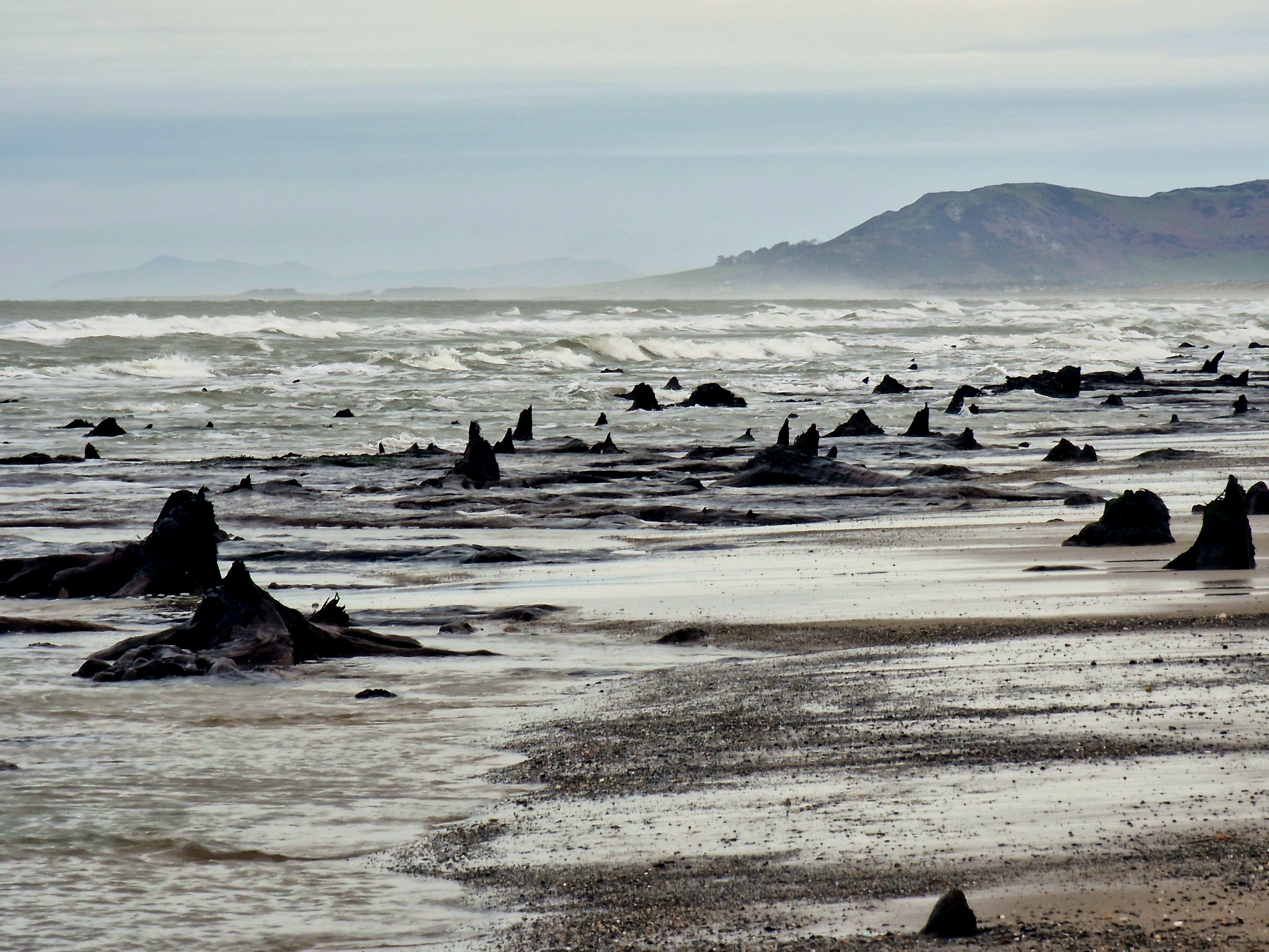 We had initially planned to visit The Mumbles, but in our quest for adventure, we decided to seek out Whiteford Lighthouse, the only wave-swept cast-iron lighthouse in Britain. Measuring 13 meters tall, this decommissioned lighthouse was constructed in 1865 and is situated at the northern tip of the beach. Whilst we knew reaching the lighthouse would be a challenge, we didn’t anticipate just how much of an effort it would require. We parked in Cwm Ivy and set off through the woods, alongside the salt marsh. This area was reclaimed from the sea in the 17th century for farmland and has been protected by a sea defense that has evolved in size and strength over the years. However, in 2014, the sea wall breached, allowing the waters to reclaim the land and transforming Cwm Ivy from a freshwater marsh into a salt marsh.